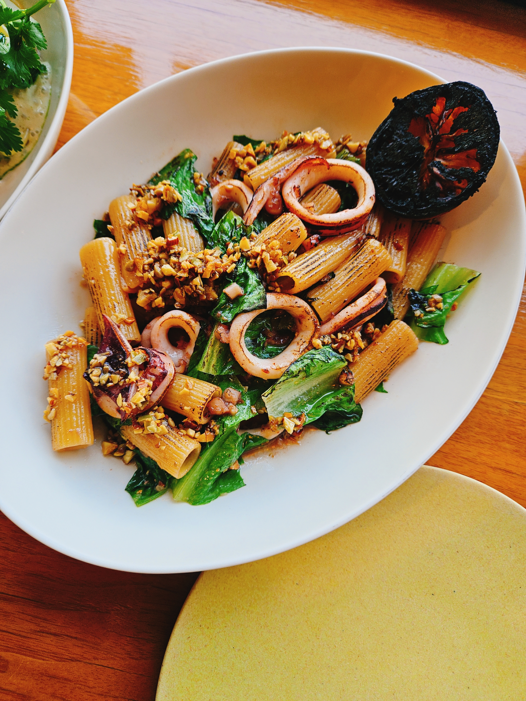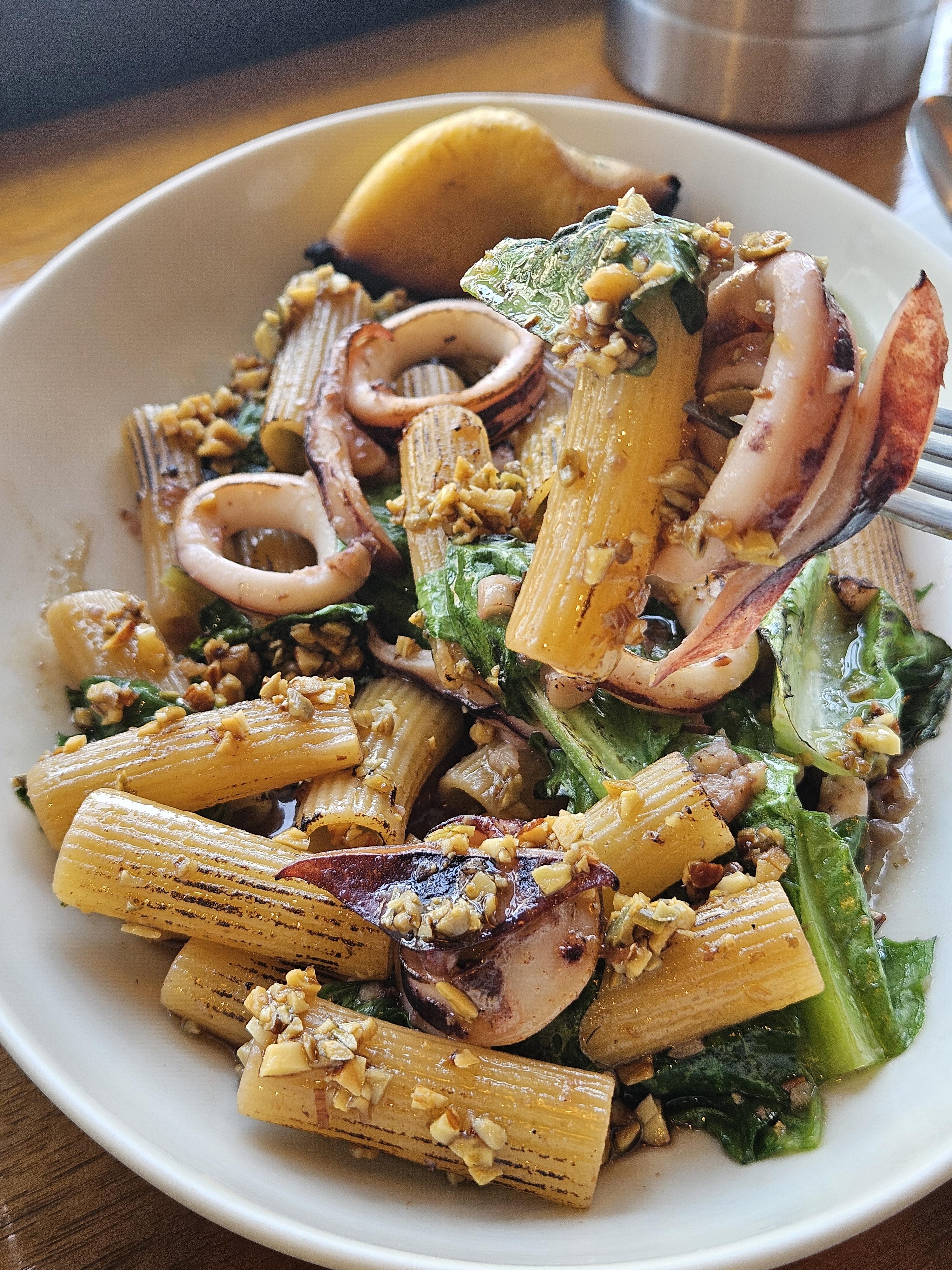 이어서 제공된 오징어 리가토니는 태운 레몬 즙을 쭉 짜서 상큼함을 더한 후 고루 섞어 먹으면 되는데