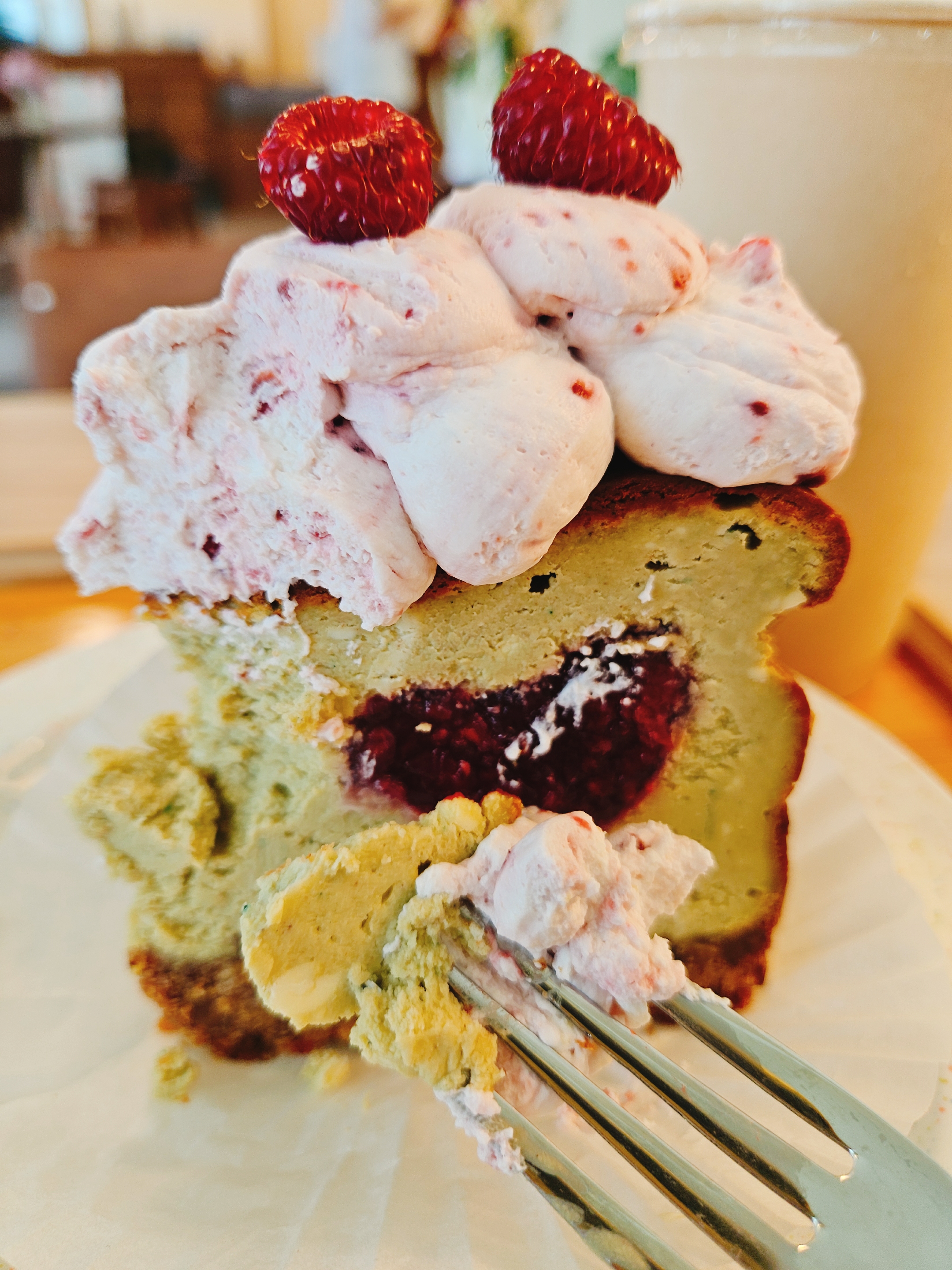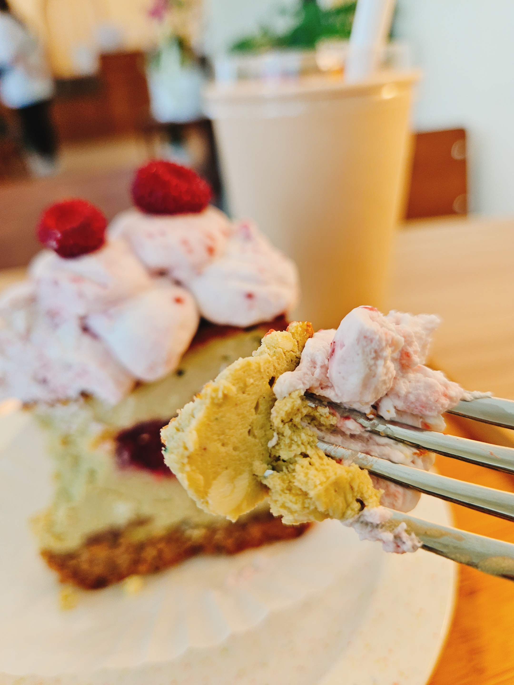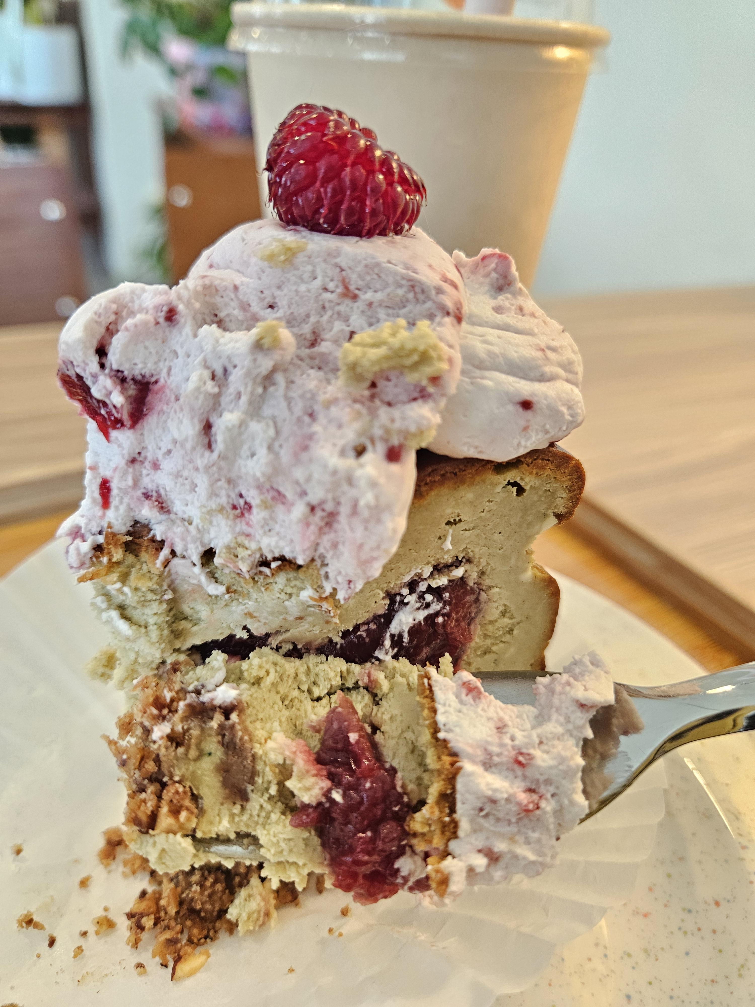 부드러운 치즈랑 잘 어울리고 여기에 몽글몽글 베리 크림과 산딸기 퓌레 같은 조합이 묘하게 잘 어울리는 케이크.
