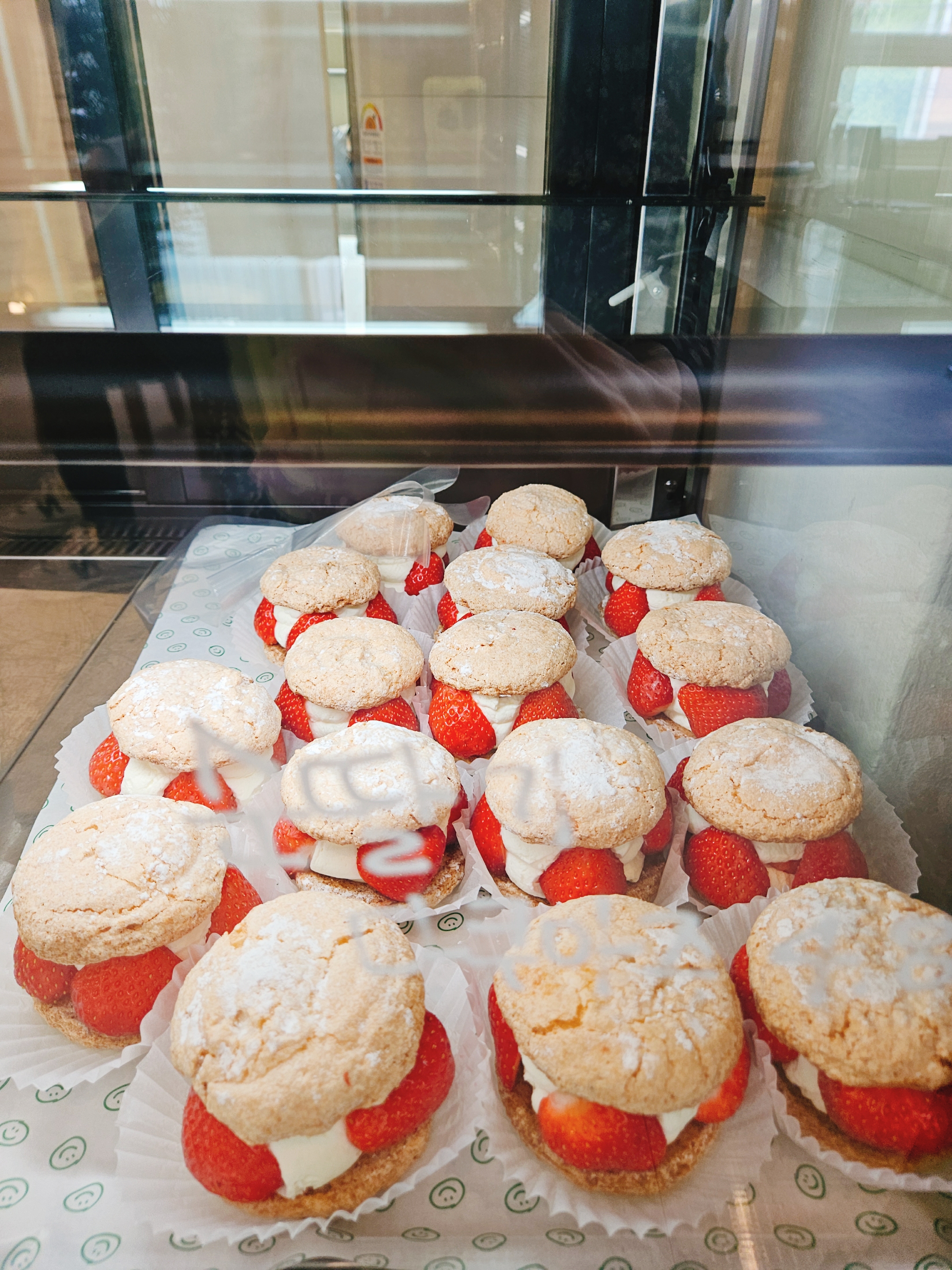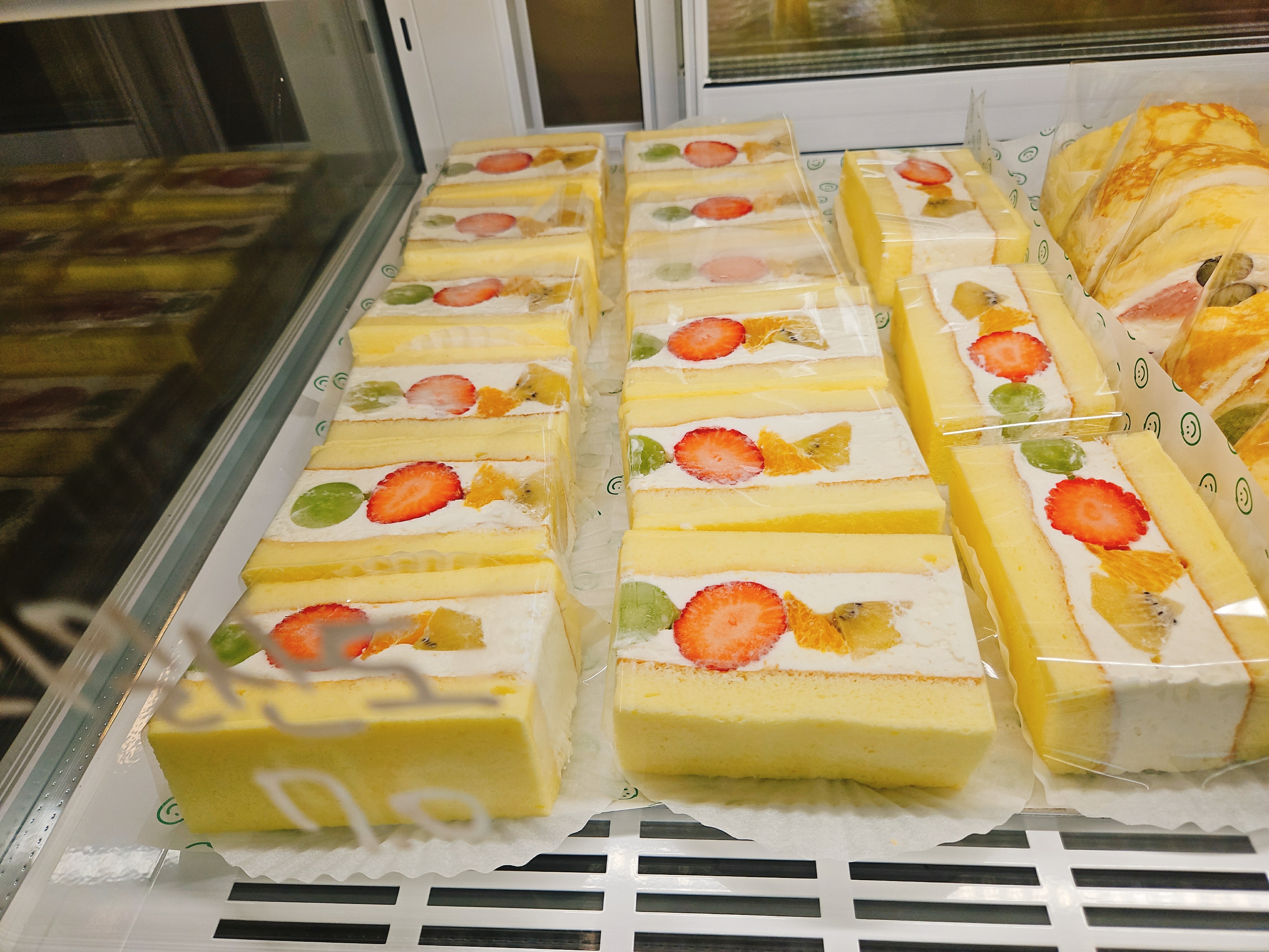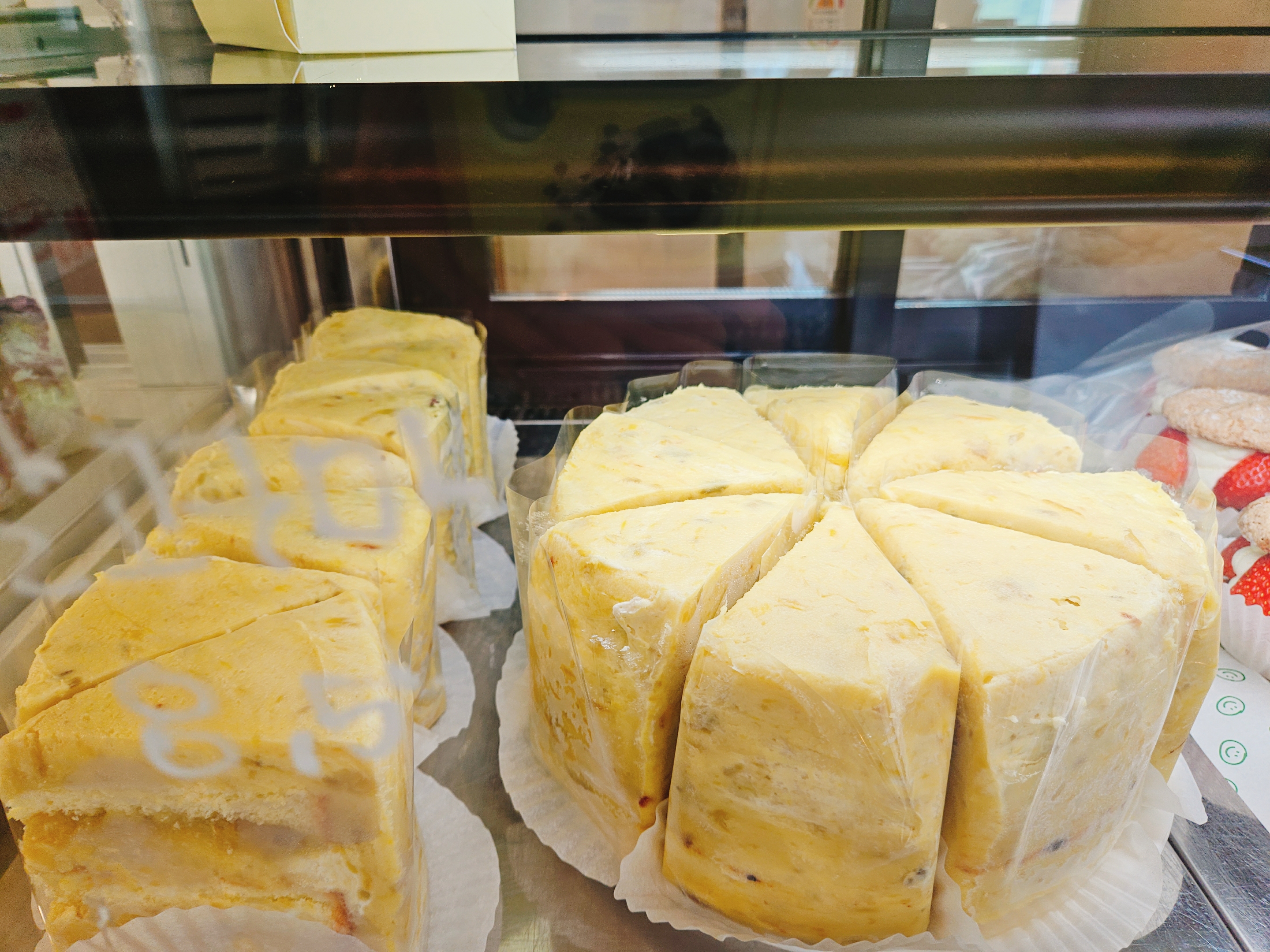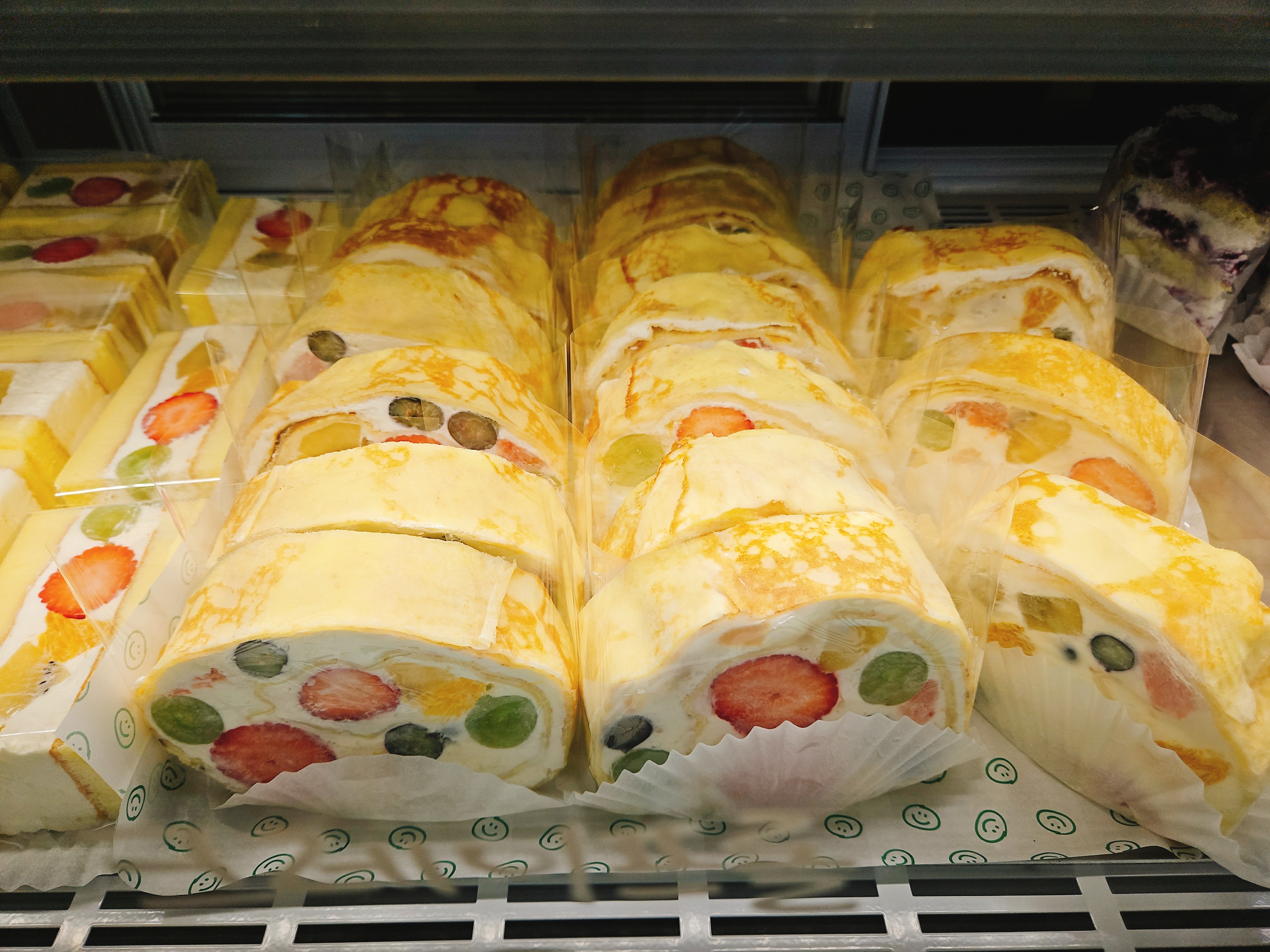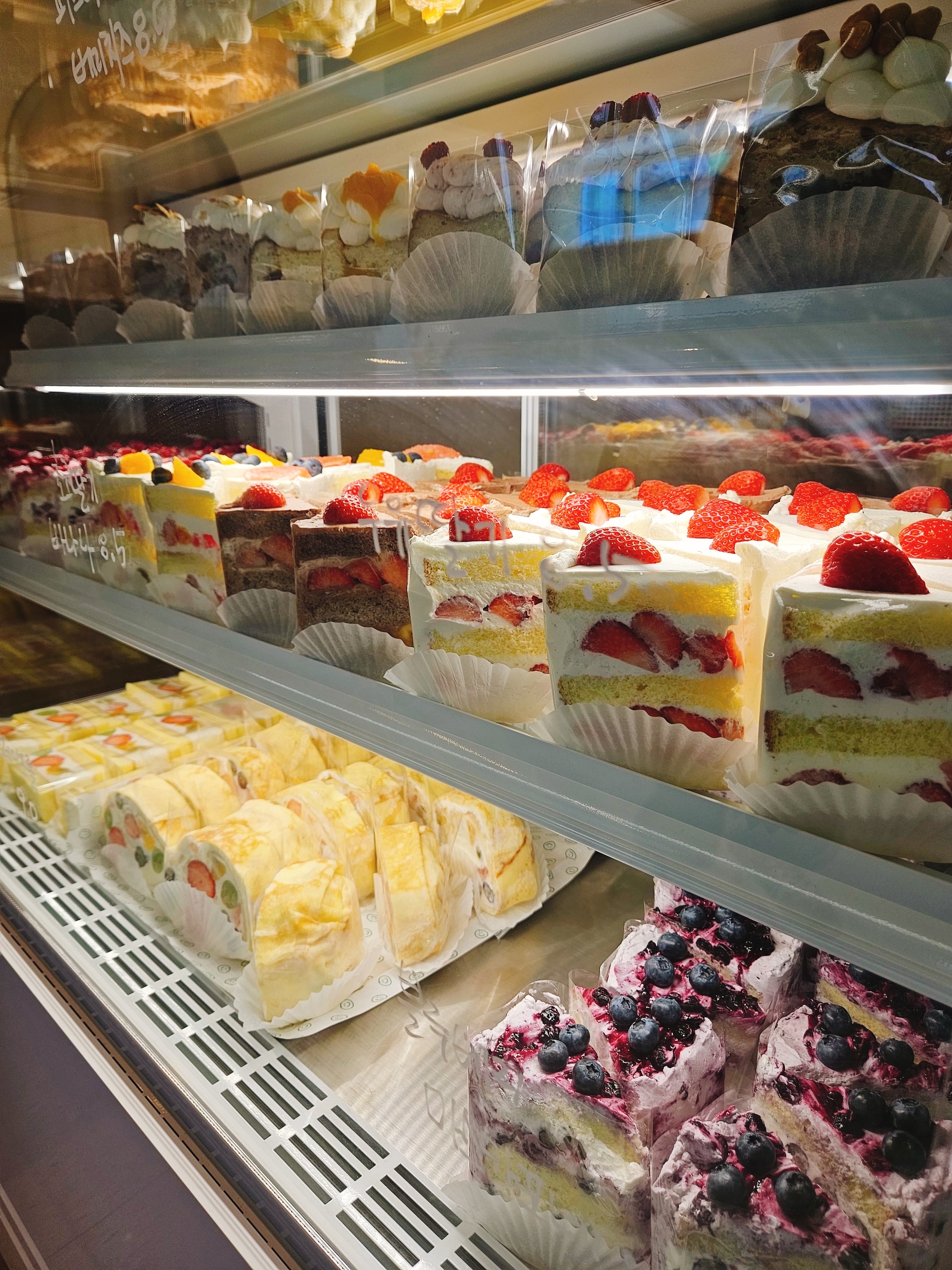 그래도 생크림 베이스 못지않게 치즈 케이크 비율이 1/3은 되고, 카페 오픈하고? 맛볼 수 있다는 여러 종류 생과일 가득 박힌 과일산도나 크레이프롤도 있고, 으깬 고구마로 둔갑한 🍠 옛날 고구마 케이크와 다쿠아즈는 딸기 하나, 과일즙 가득한 젤리를 판매하고 있었다.