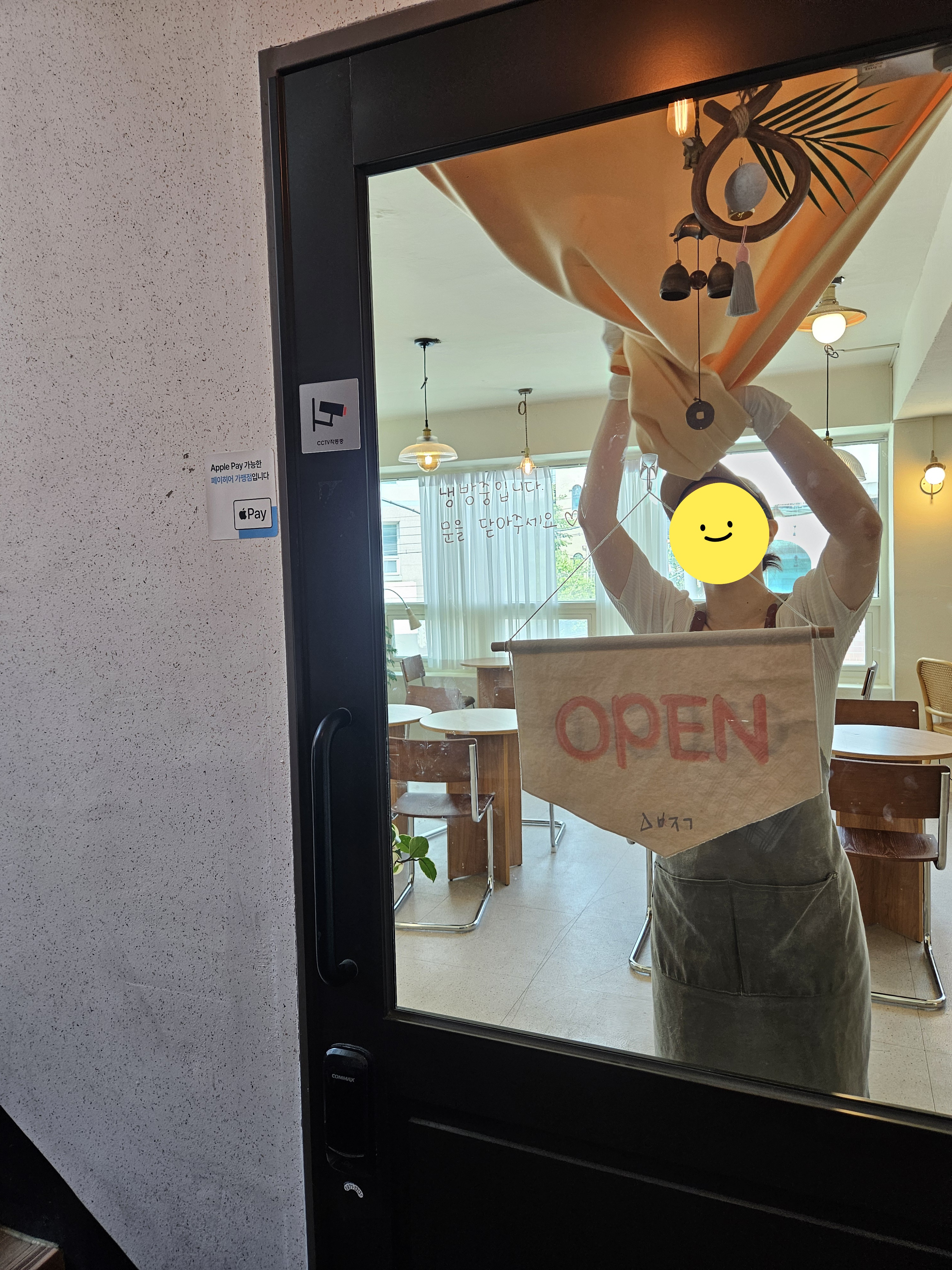 오픈런하는 사람 있다고 들었는데 그렇게 빨리는 안 오나 하고 혼자 입구 앞에 서있었는데 5분 뒤 한 팀 두 팀 늘어나기 시작해서 외롭지(?)ㅎㅎ 않더라. 카페 안에선 오픈을 앞두고 손님 맞을 준비가 한창이었던 것 같은데 사장님이 4분 전에 밖에 확인하더니 12시 전에 오픈해서 일등으로 입장했네.