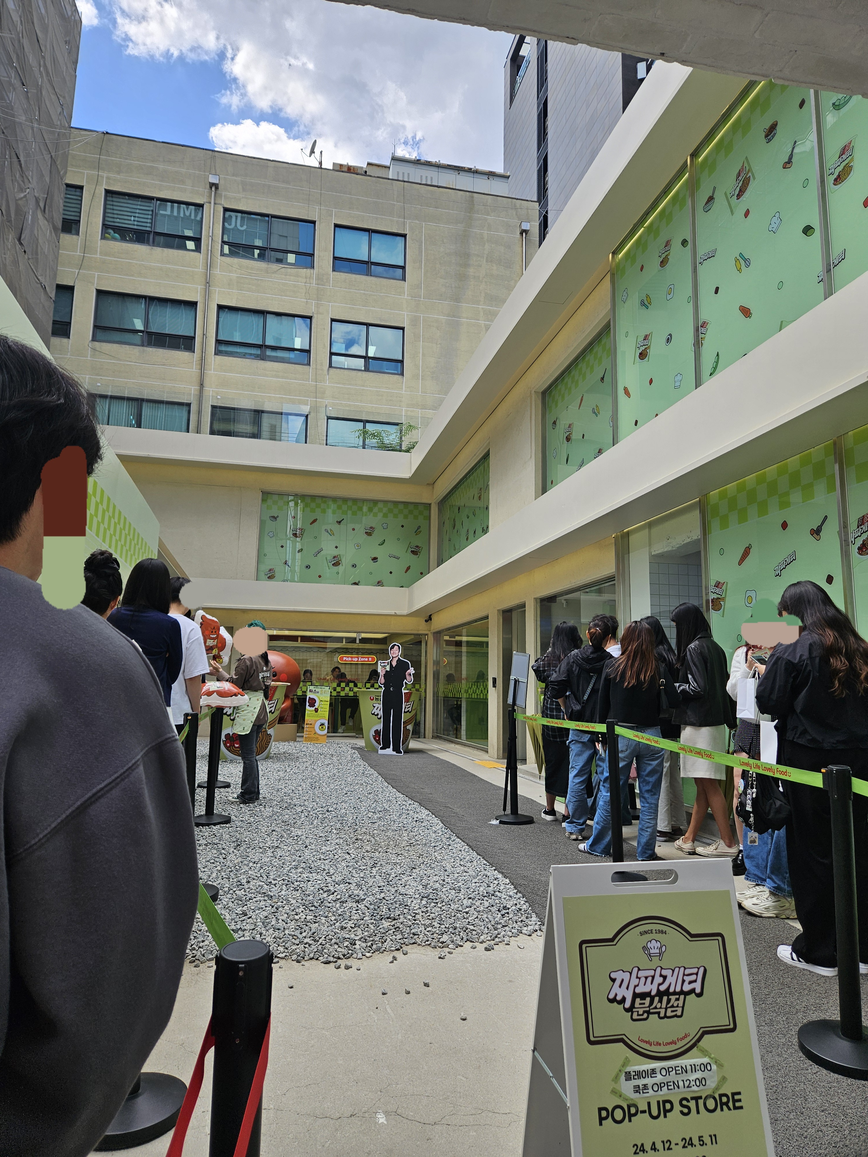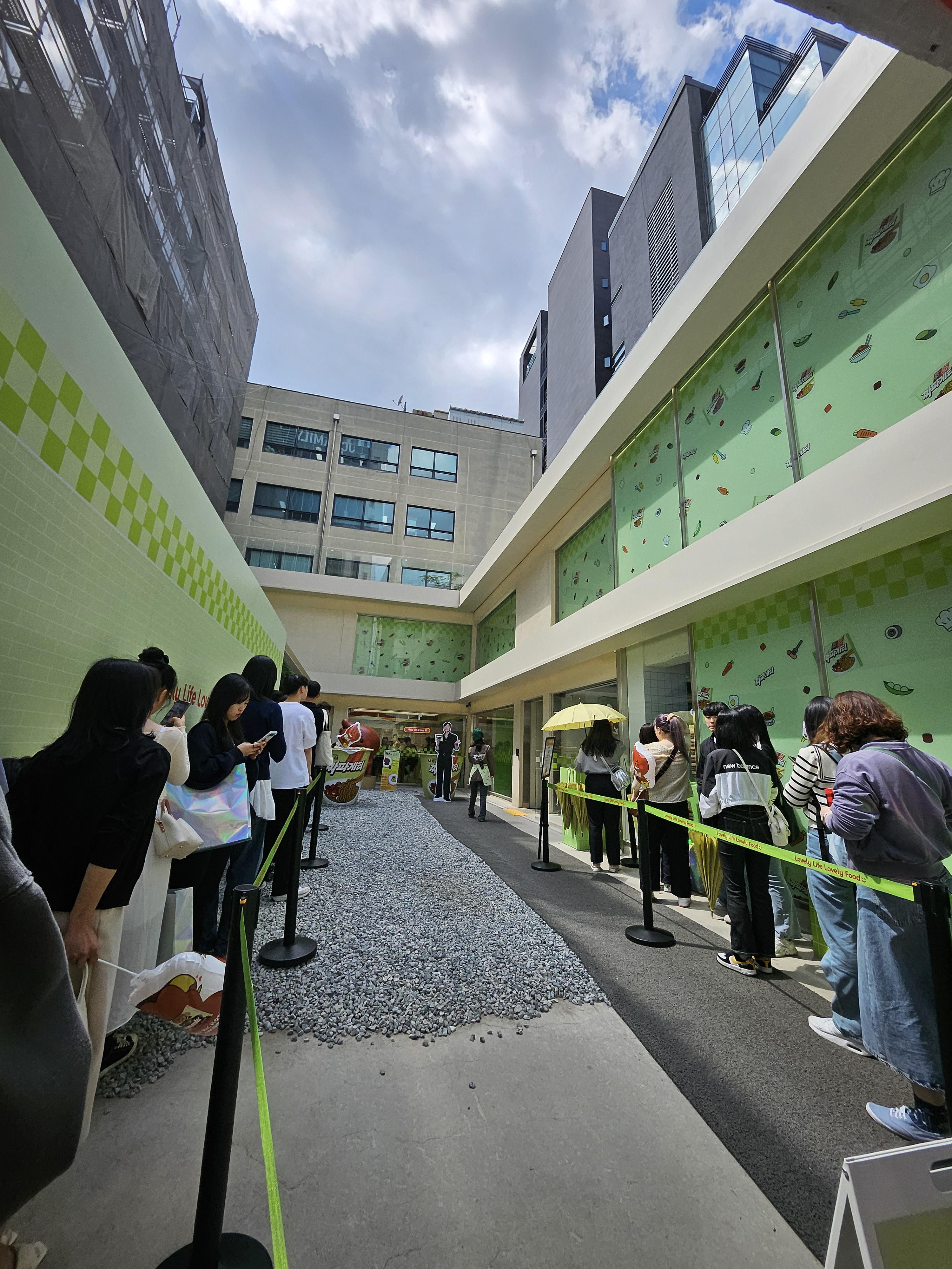 직장이 근처다 보니 성수동에 자주오게 되고 헬리녹스 팝업들렸다가 성수역으로 가는 길에 짜파게티 팝업스토어 방문했지 뭐람? 마침 점심도 안먹은 상태라 쿡존에 대기하면 직원들이 끓여주는 농심 제품을 맛볼 수 있고 셀프로 끓여서 먹을 수도 있다고 하니 대기라인에 섰다.