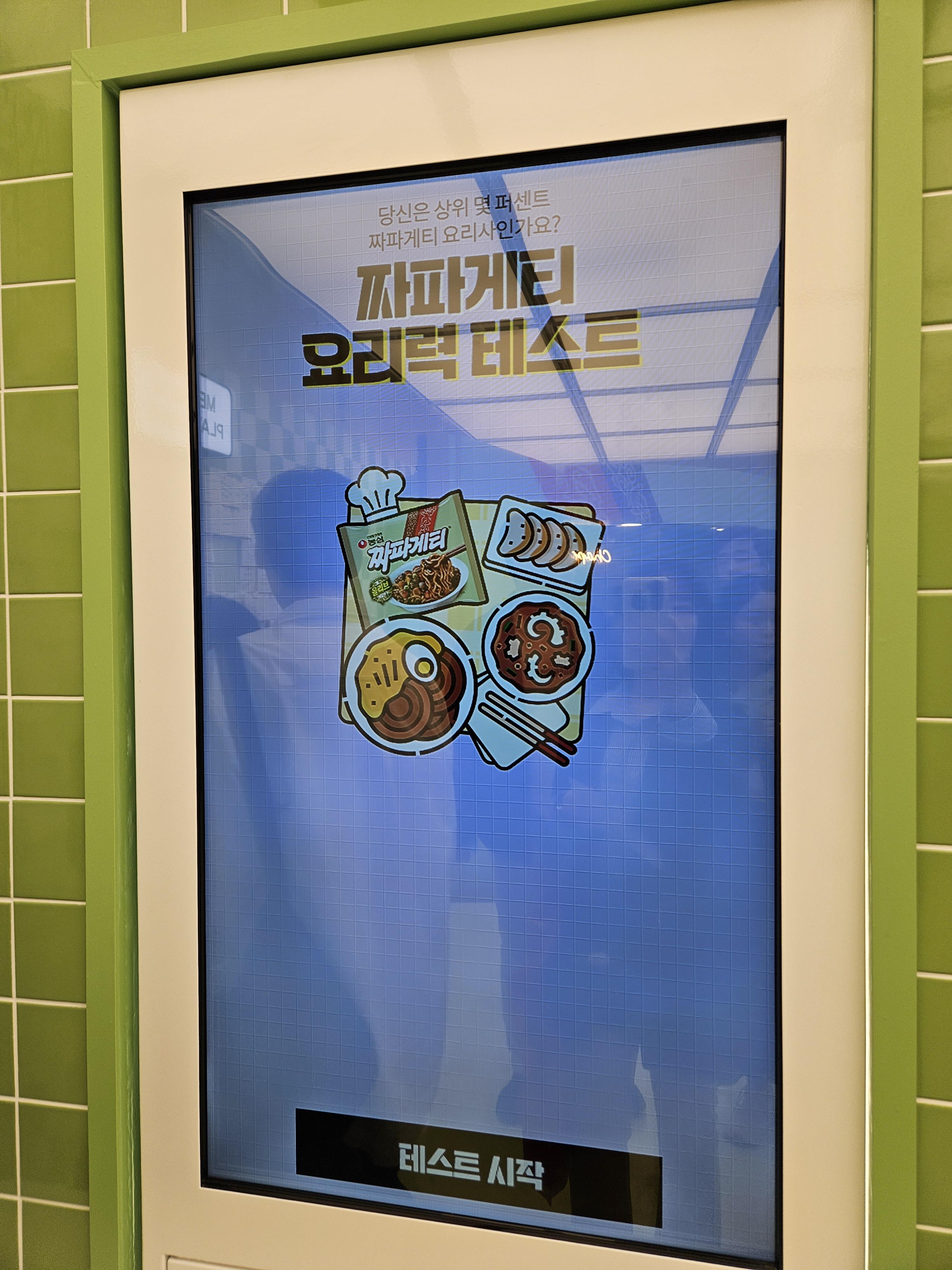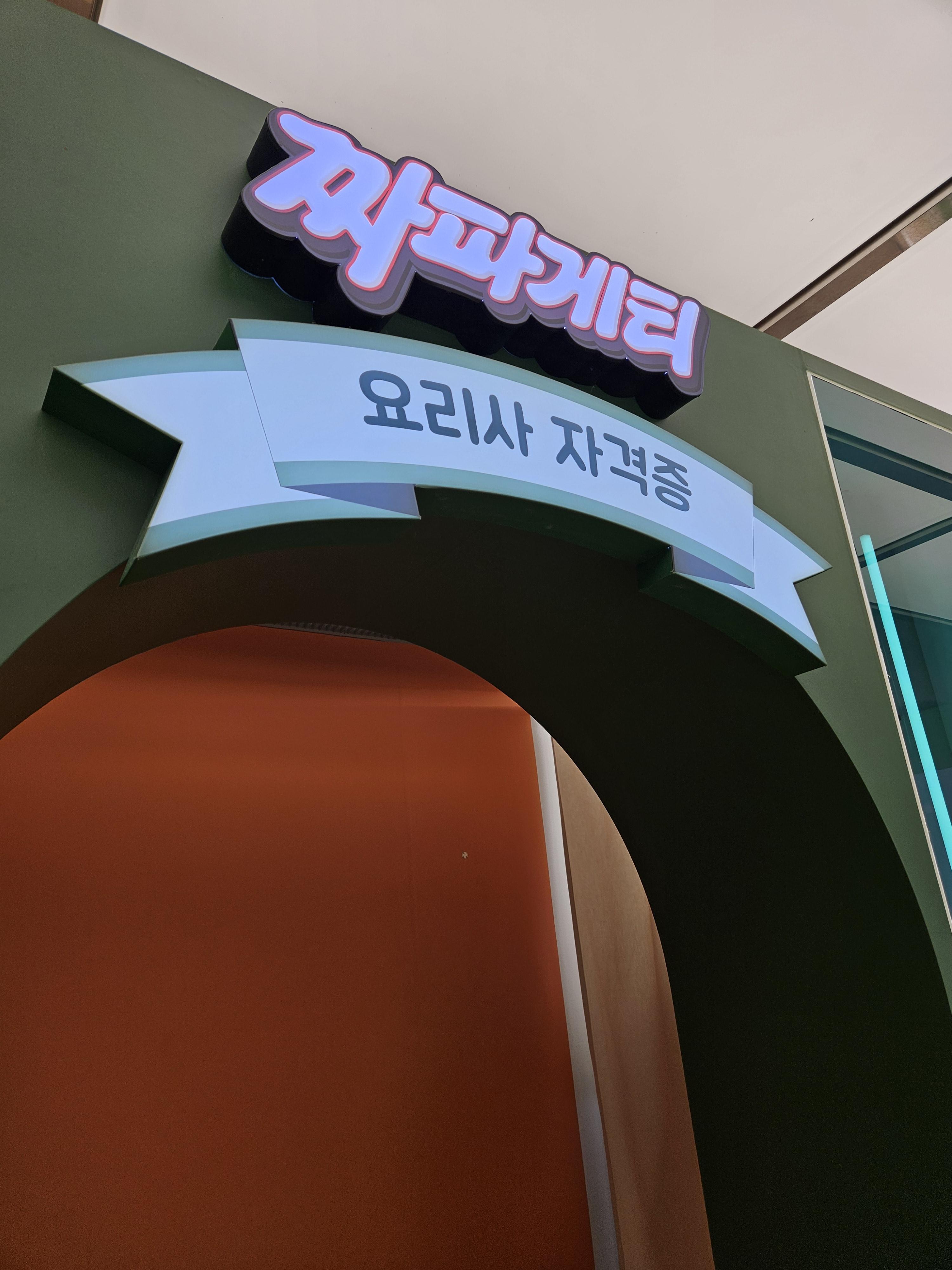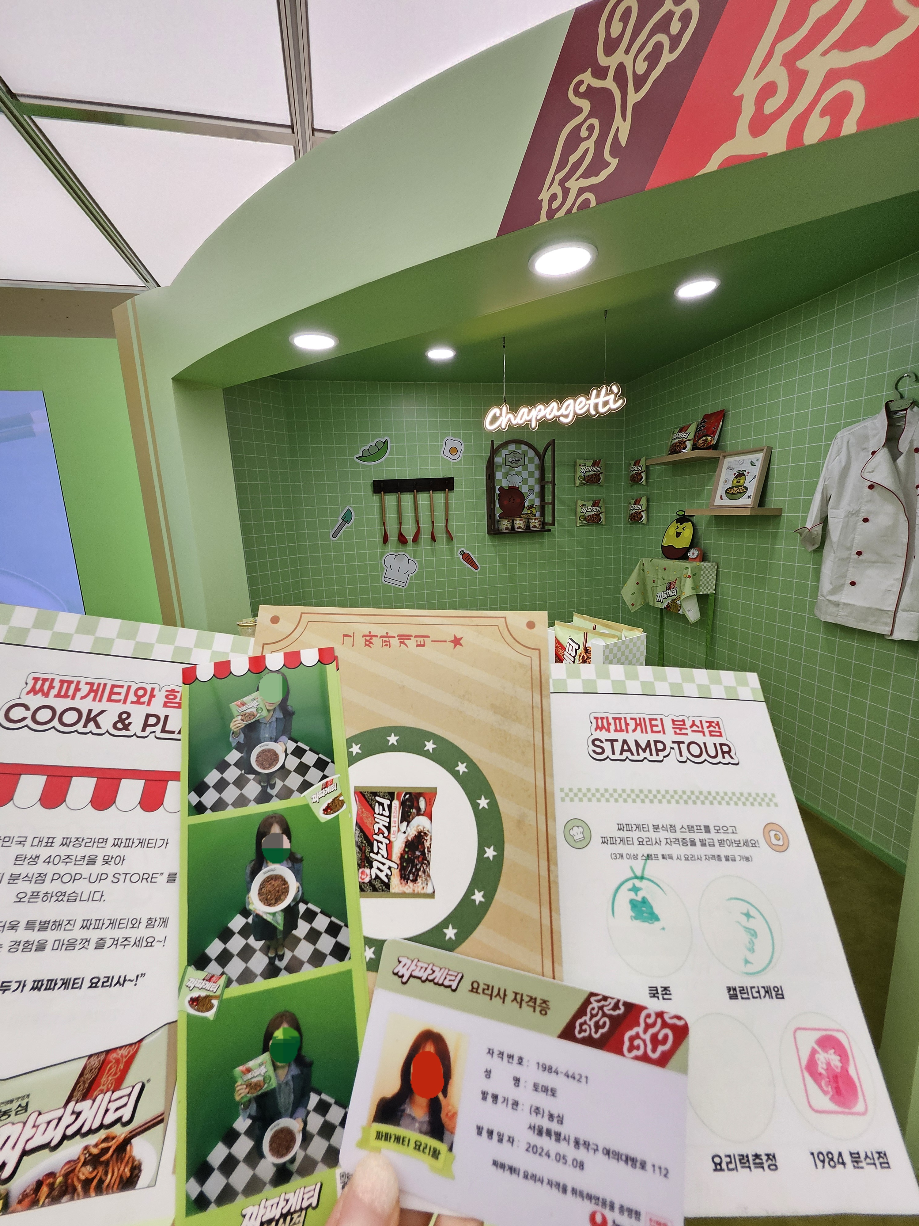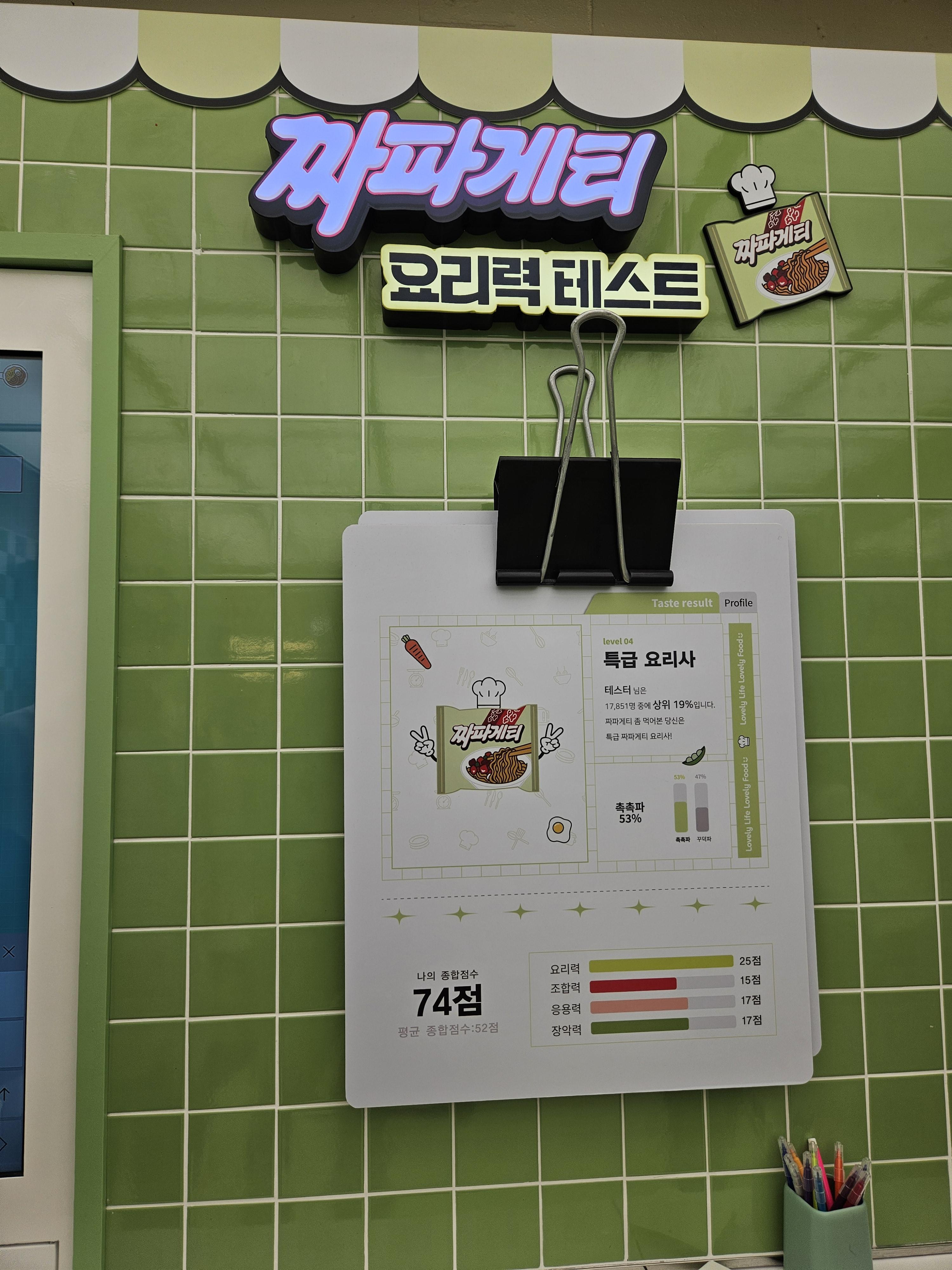 1984분식점은 추억의 소품들이 있어 구경하고 셀프로 스탬프 찍고 나와 오른쪽으로 건너가면 요리력 측정과 짜파게티 요리사 자격증 발급 기계가 있는데