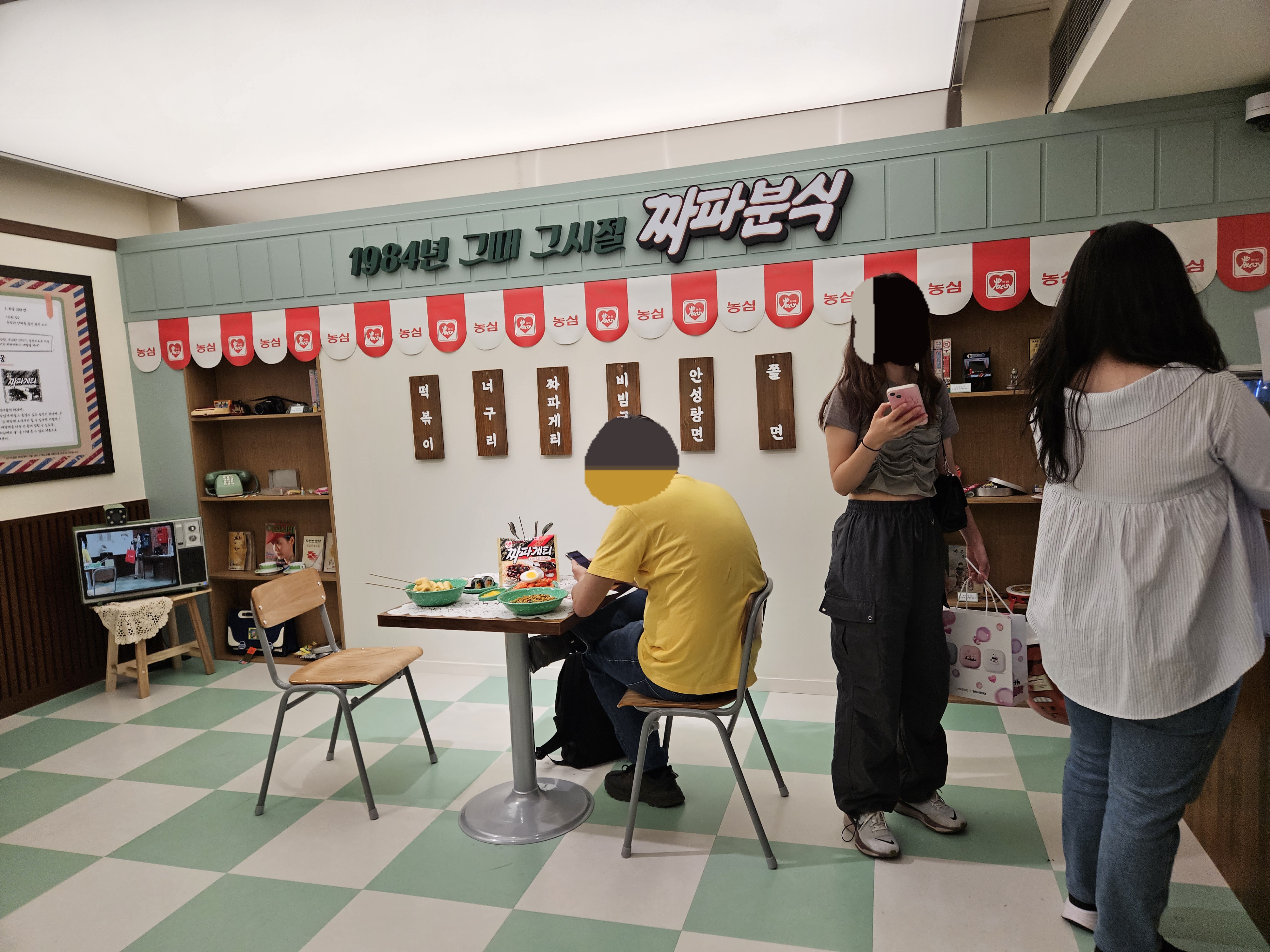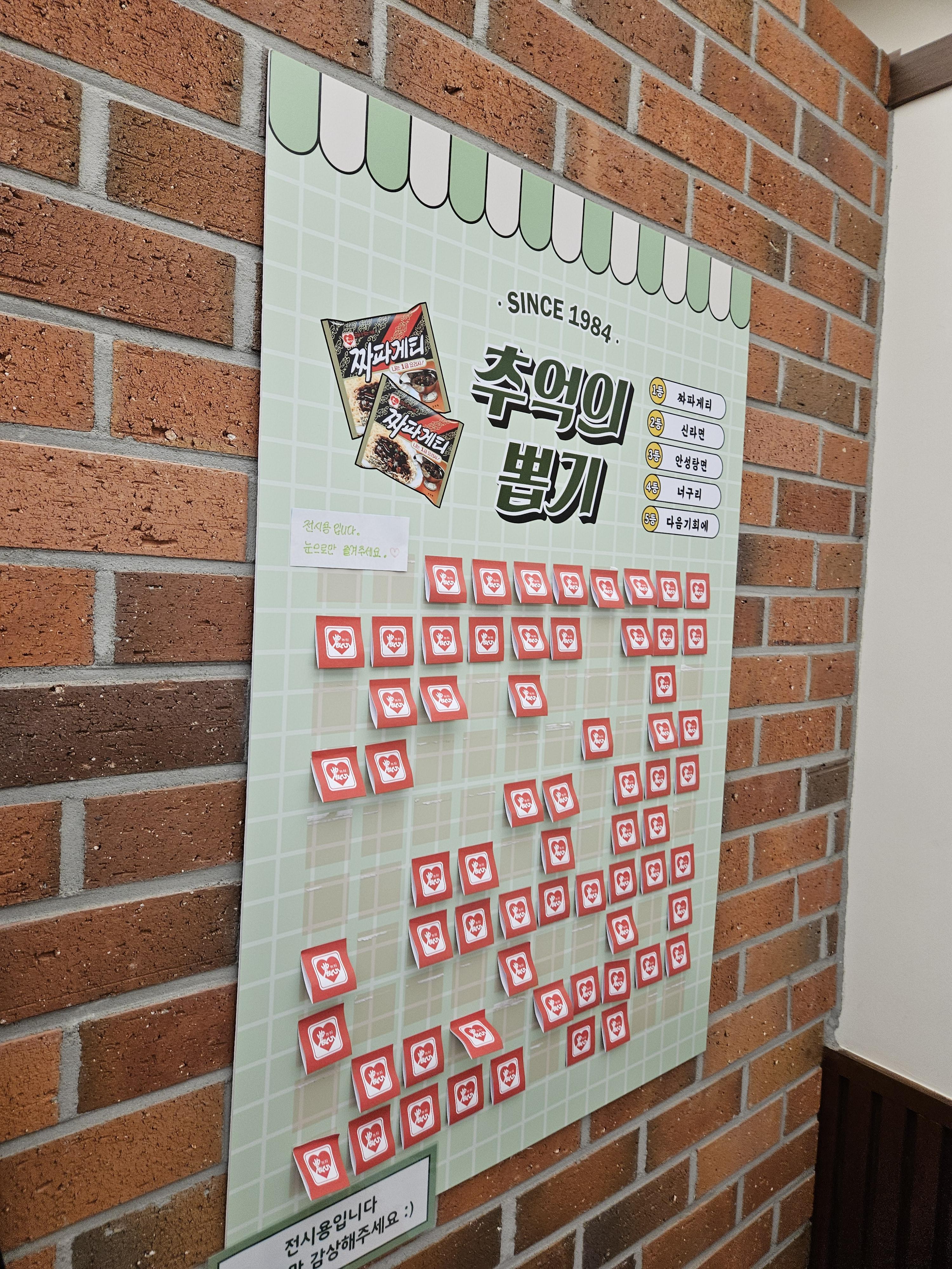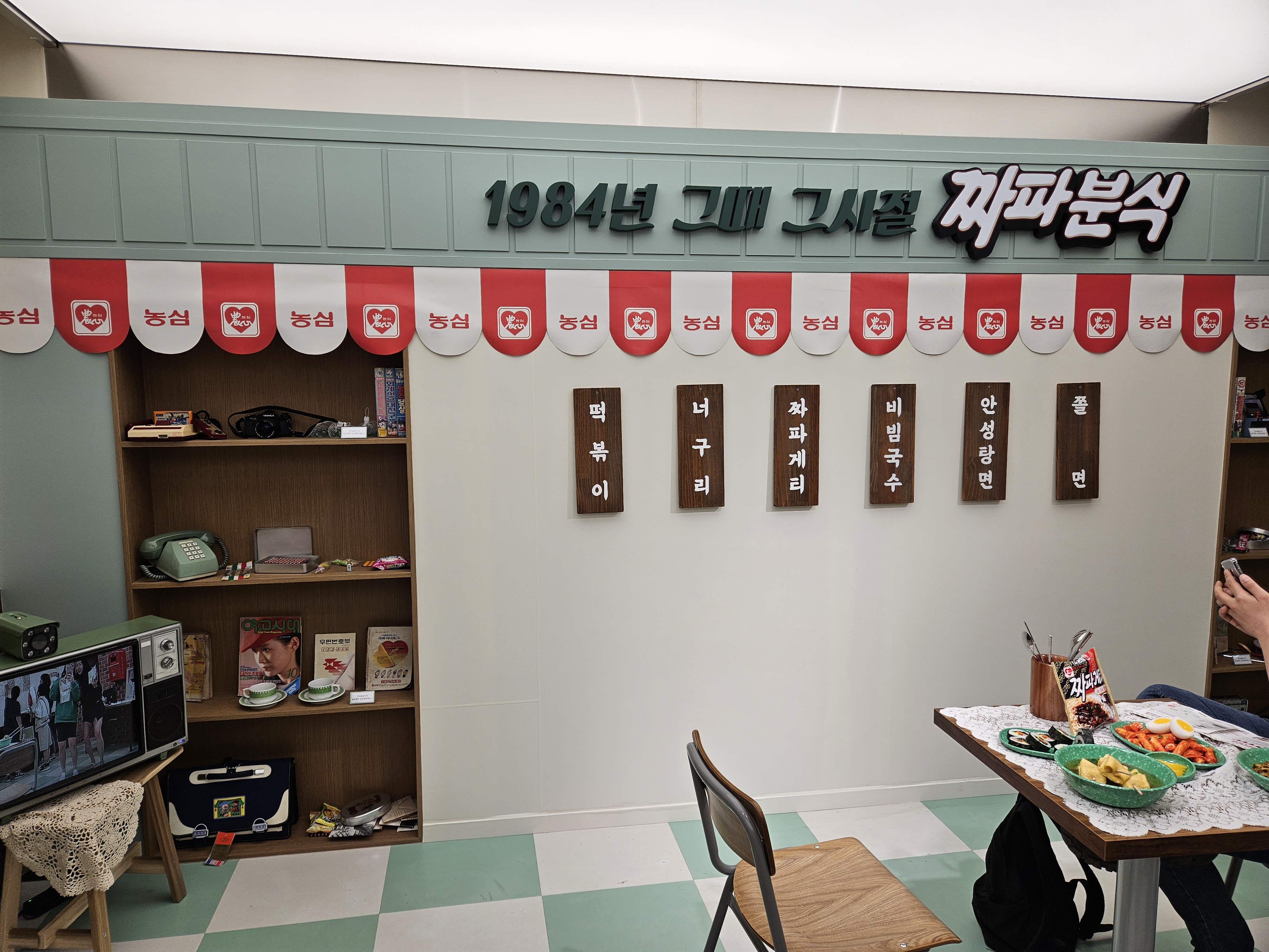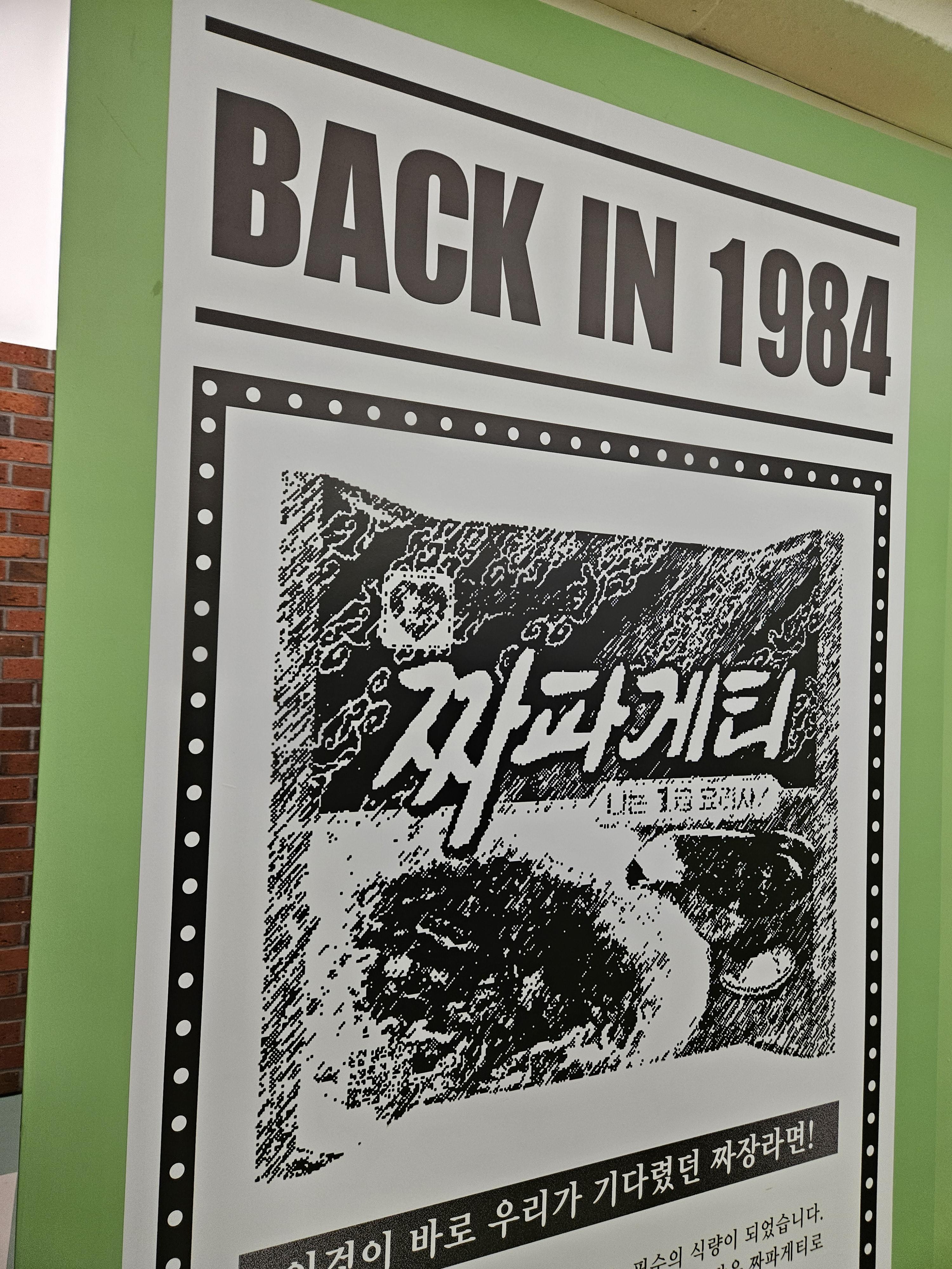 1984분식점은 추억의 소품들이 있어 구경하고 셀프로 스탬프 찍고 나와 오른쪽으로 건너가면 요리력 측정과 짜파게티 요리사 자격증 발급 기계가 있는데