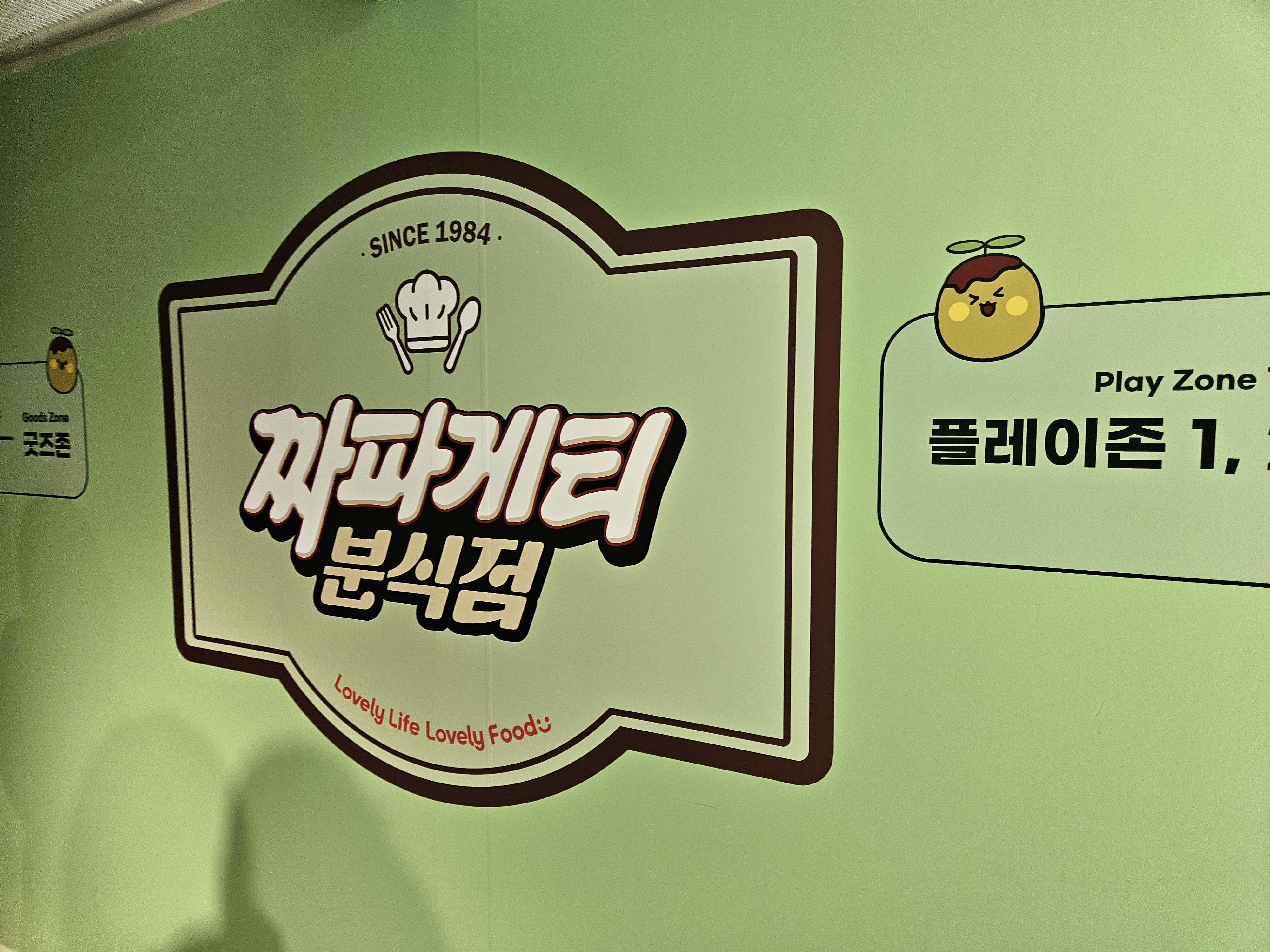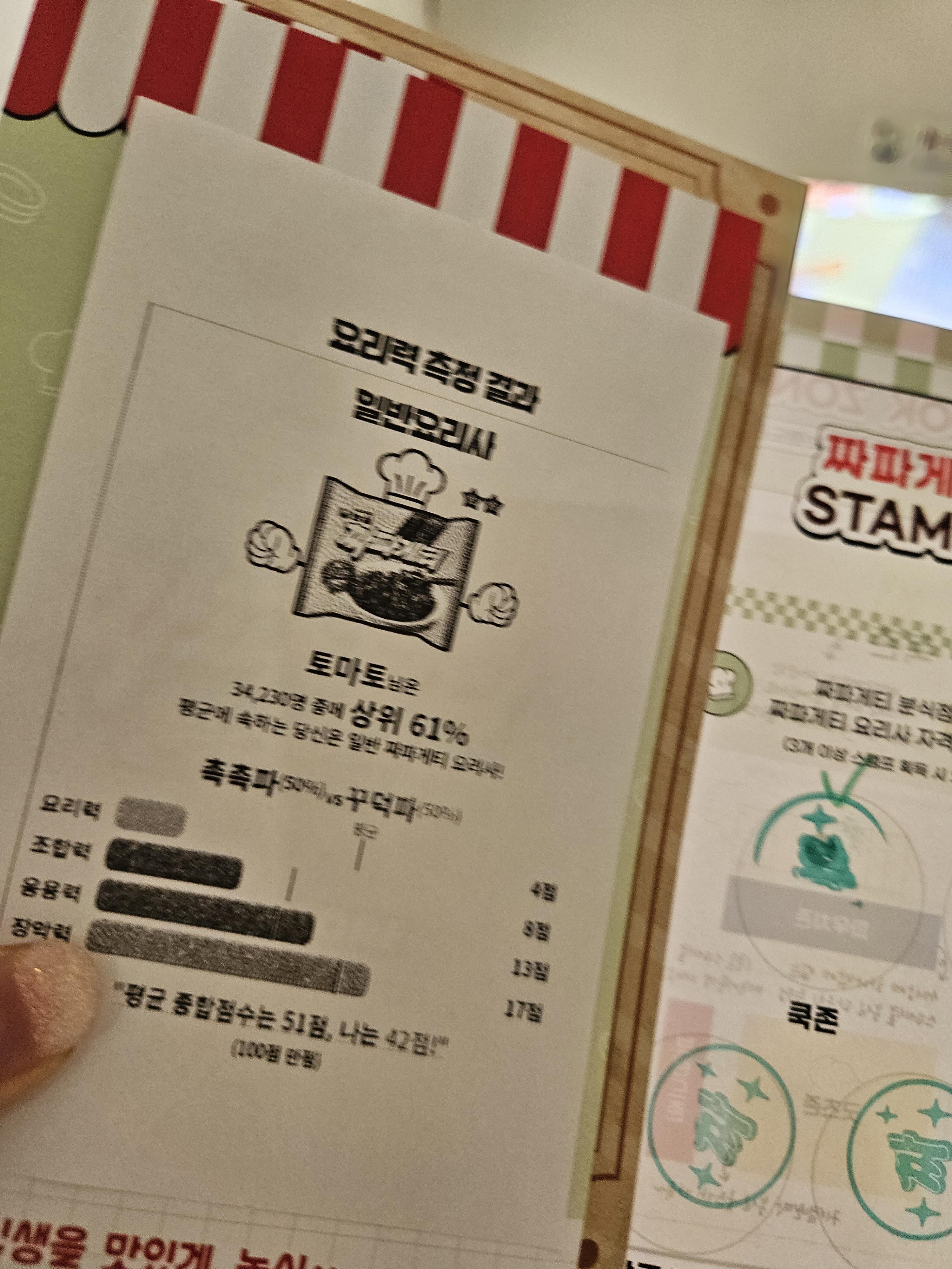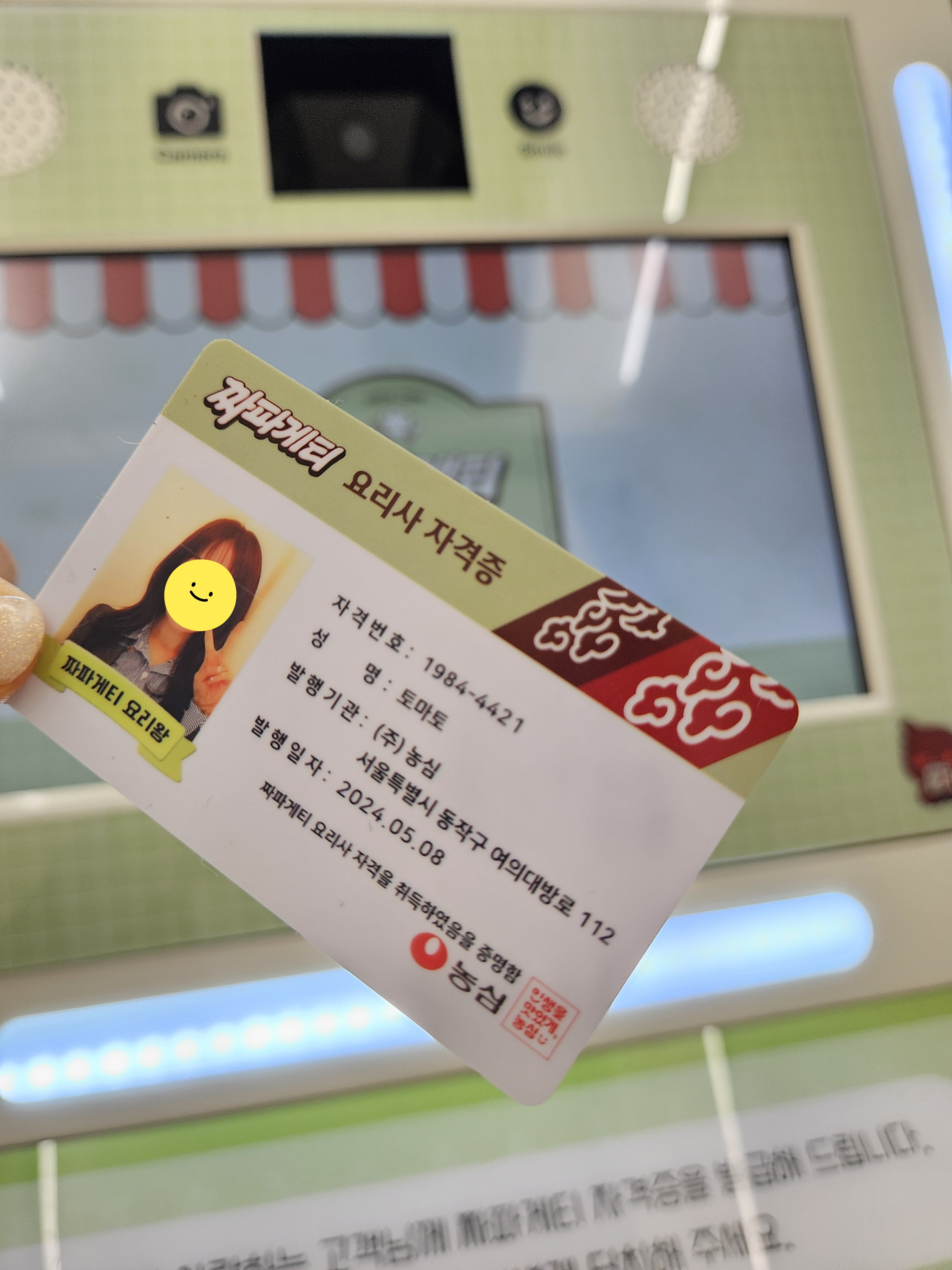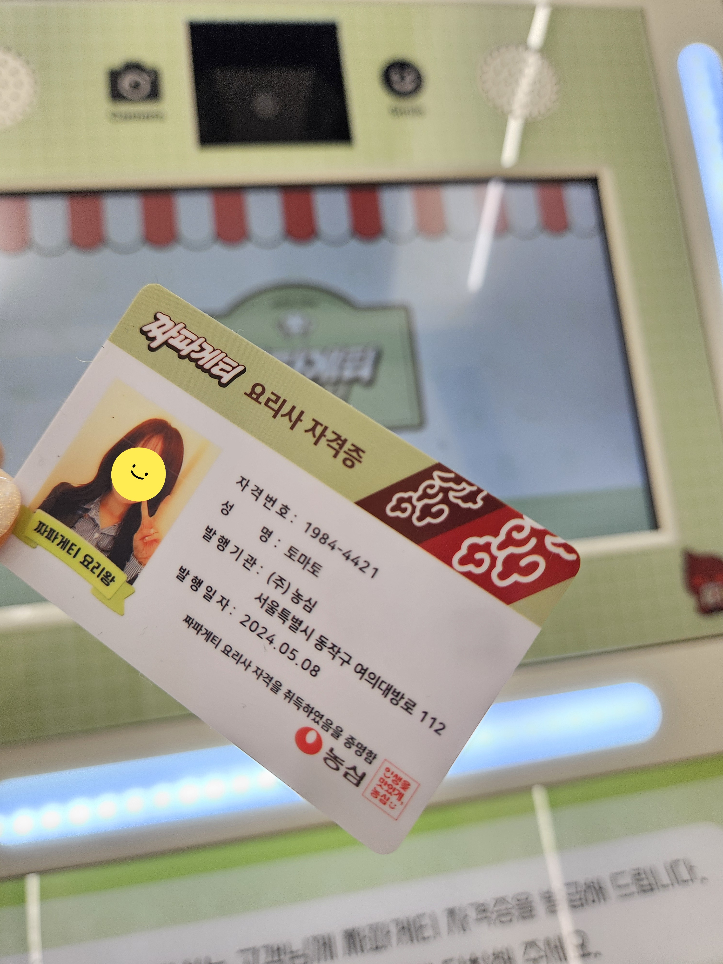 1984분식점은 추억의 소품들이 있어 구경하고 셀프로 스탬프 찍고 나와 오른쪽으로 건너가면 요리력 측정과 짜파게티 요리사 자격증 발급 기계가 있는데