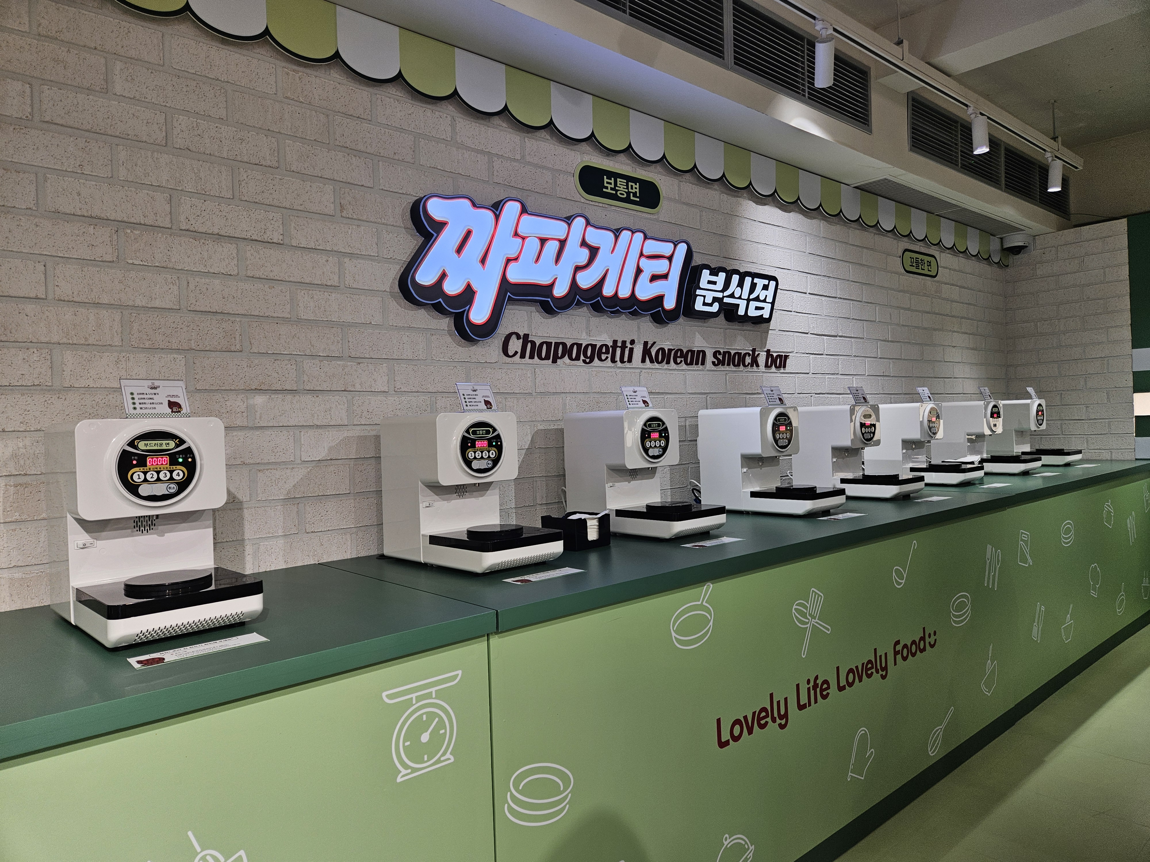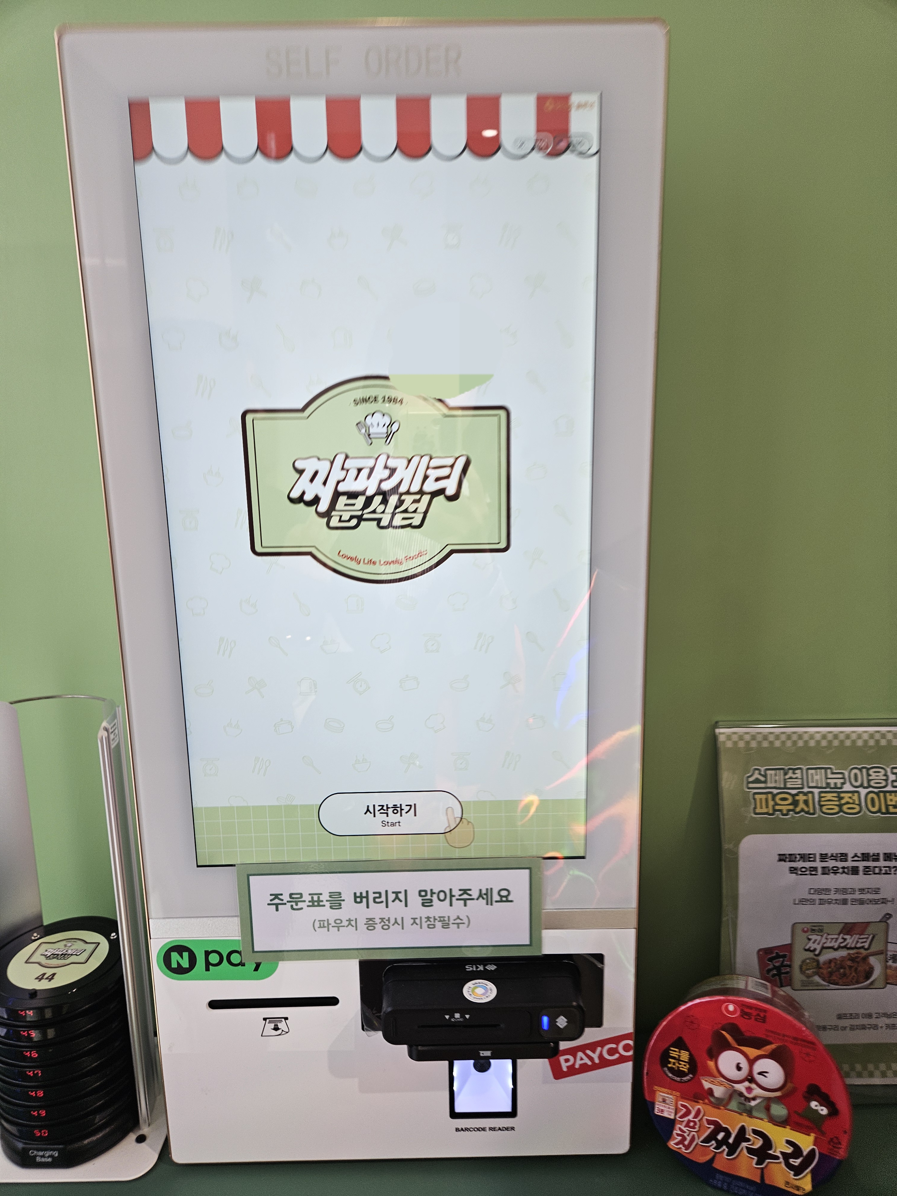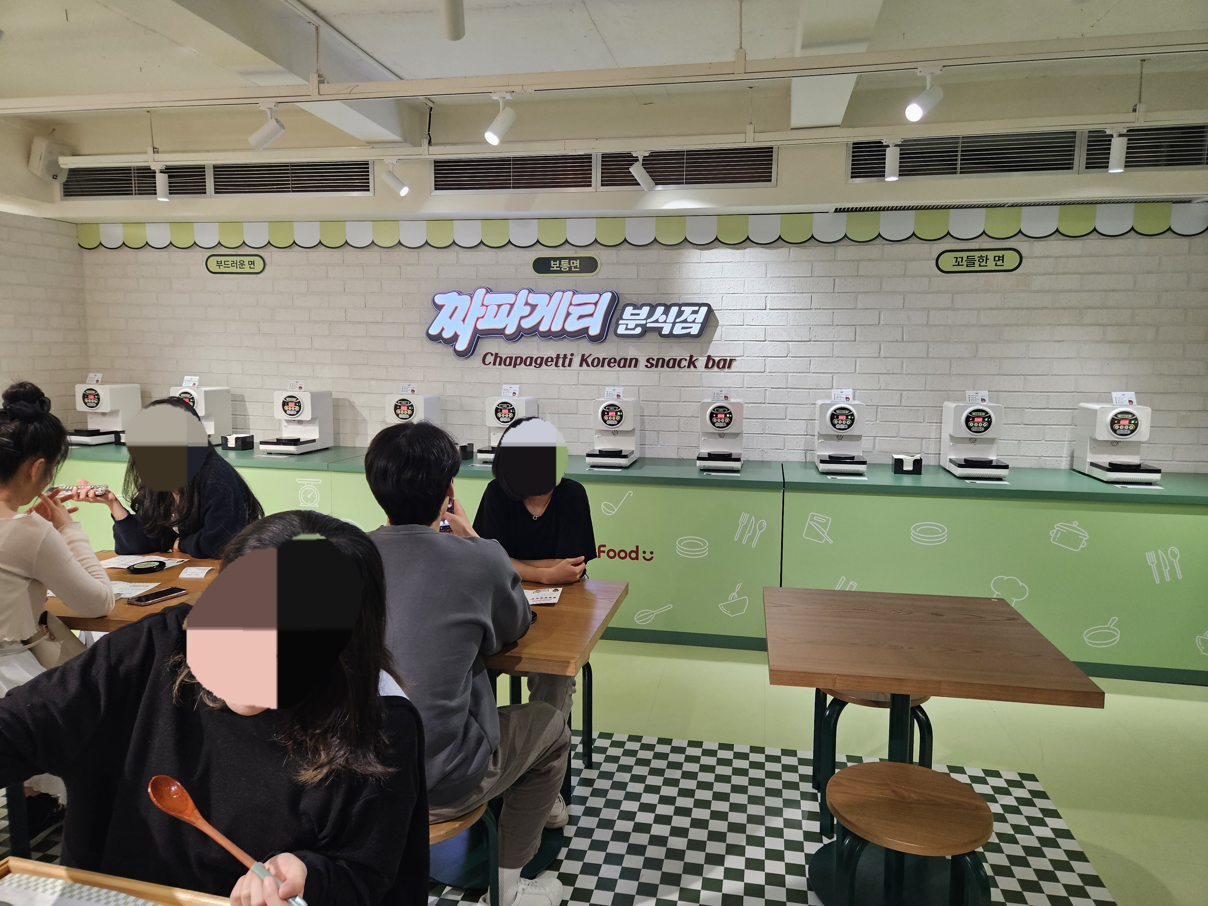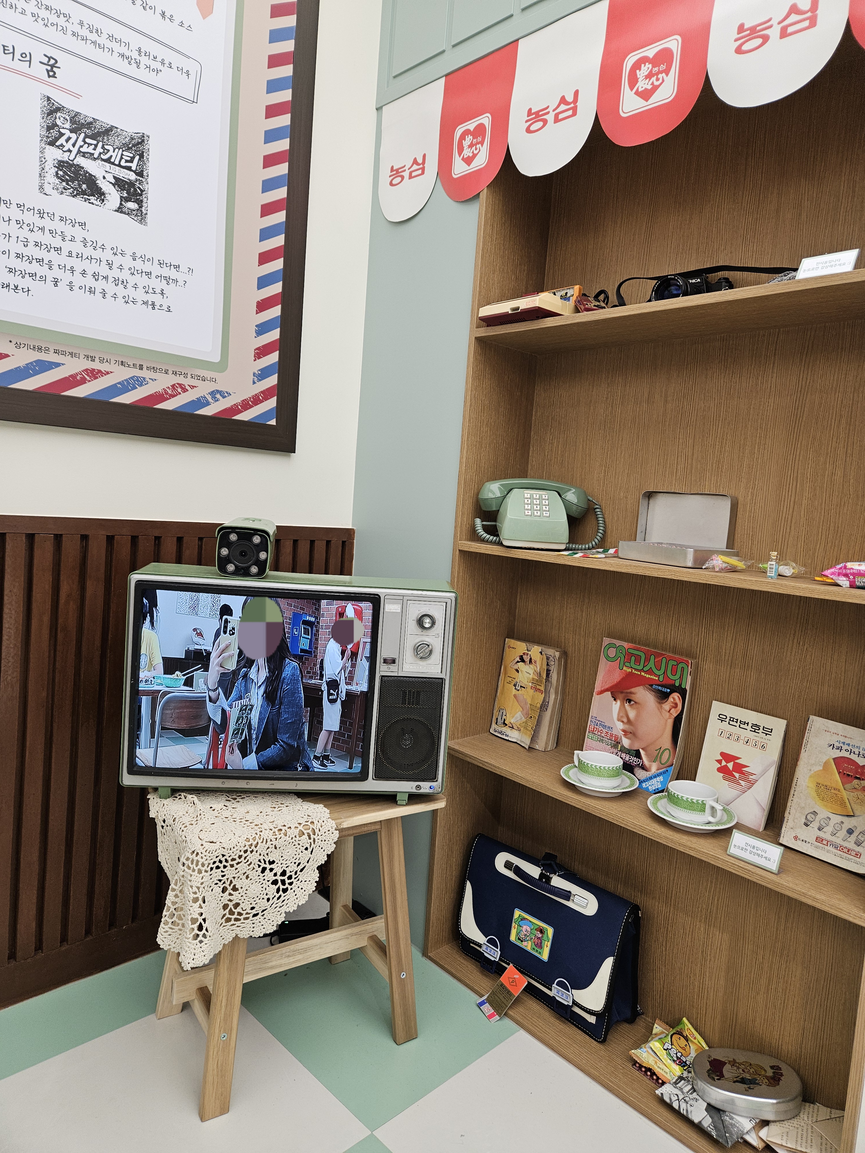 1984분식점은 추억의 소품들이 있어 구경하고 셀프로 스탬프 찍고 나와 오른쪽으로 건너가면 요리력 측정과 짜파게티 요리사 자격증 발급 기계가 있는데