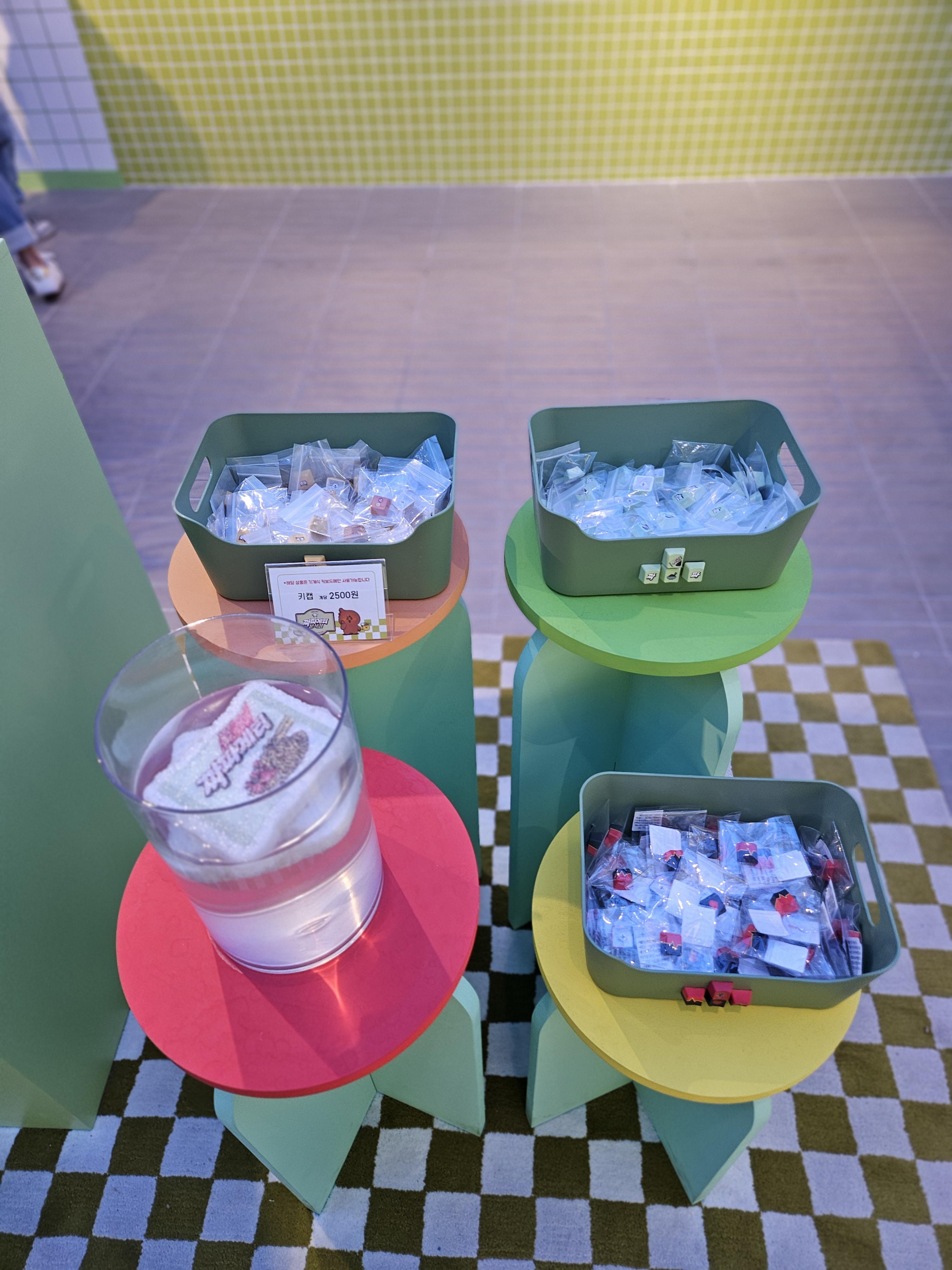 굿즈는 수세미, 냄비받침, 마그넷, 키캡, 테이블 매트 등 주방이나 사무용으로 사용할 상품위주 였는데