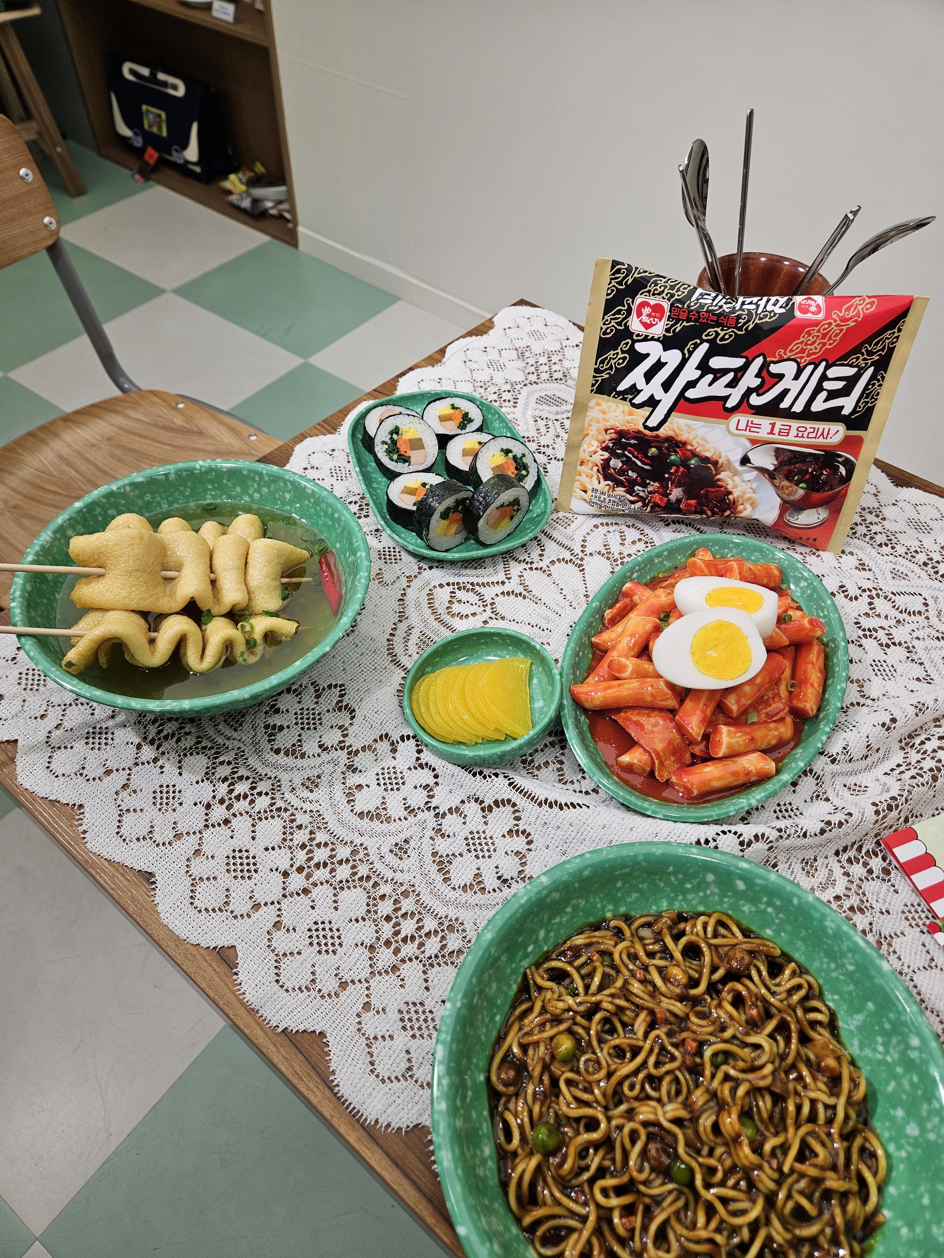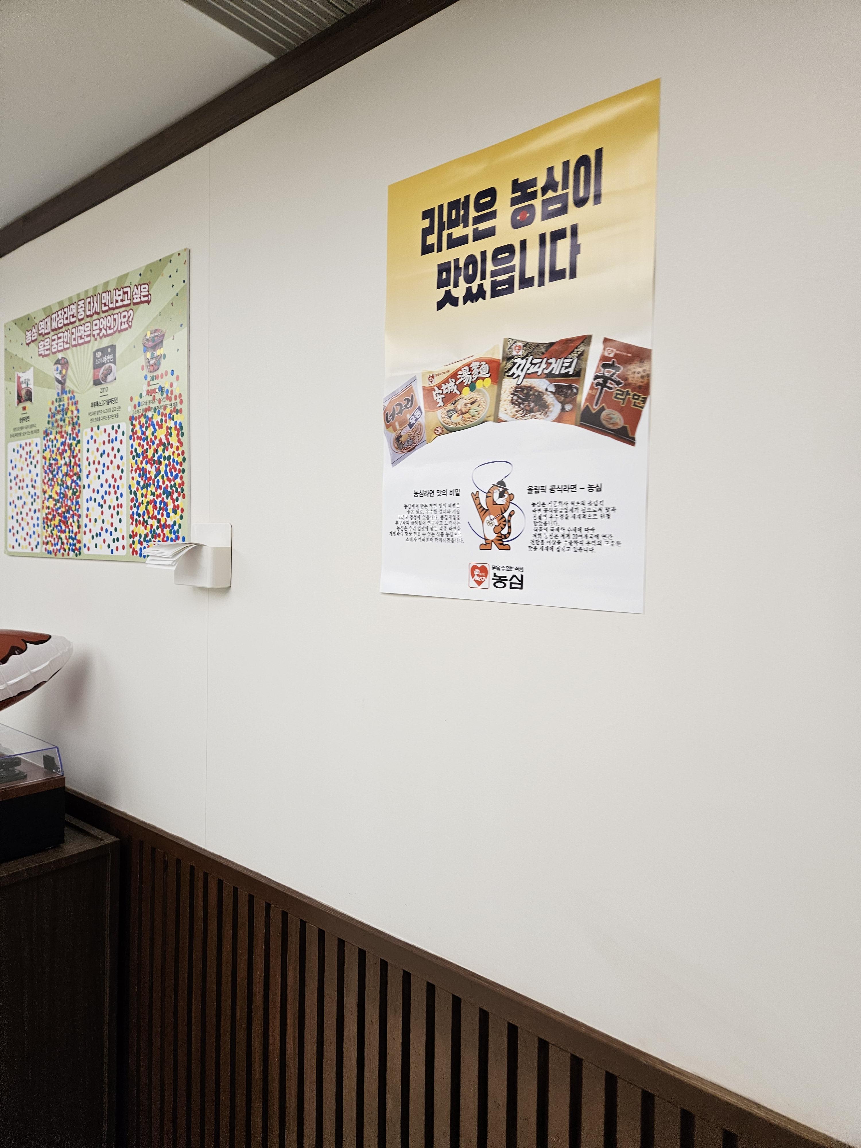 대형 짜파게티 큰 사발면 모형이나 농심 라면 히스토리 모형 분식집 곳곳 사진 찍어보면서 기다리니 15분 만에 음식이 나왔다.