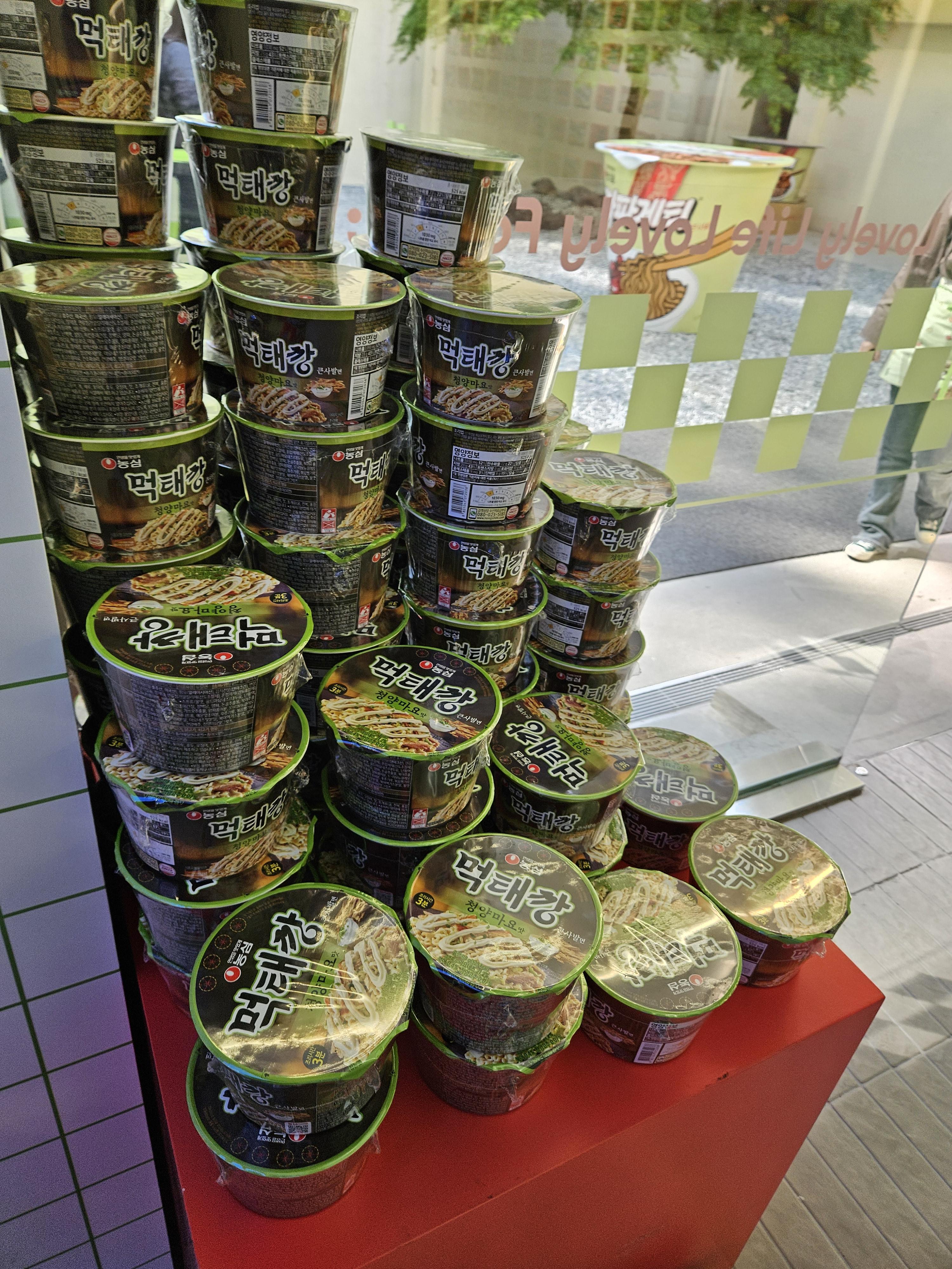 나갈 때 먹태깡 컵라면 하나씩 가져갈 수 있게 비치되어 있는데 혼자와서 굿즈까지 사서 그런가 직원이 2개 가져가도 된다고 해서 2개 가져옴 ㅋㅋ