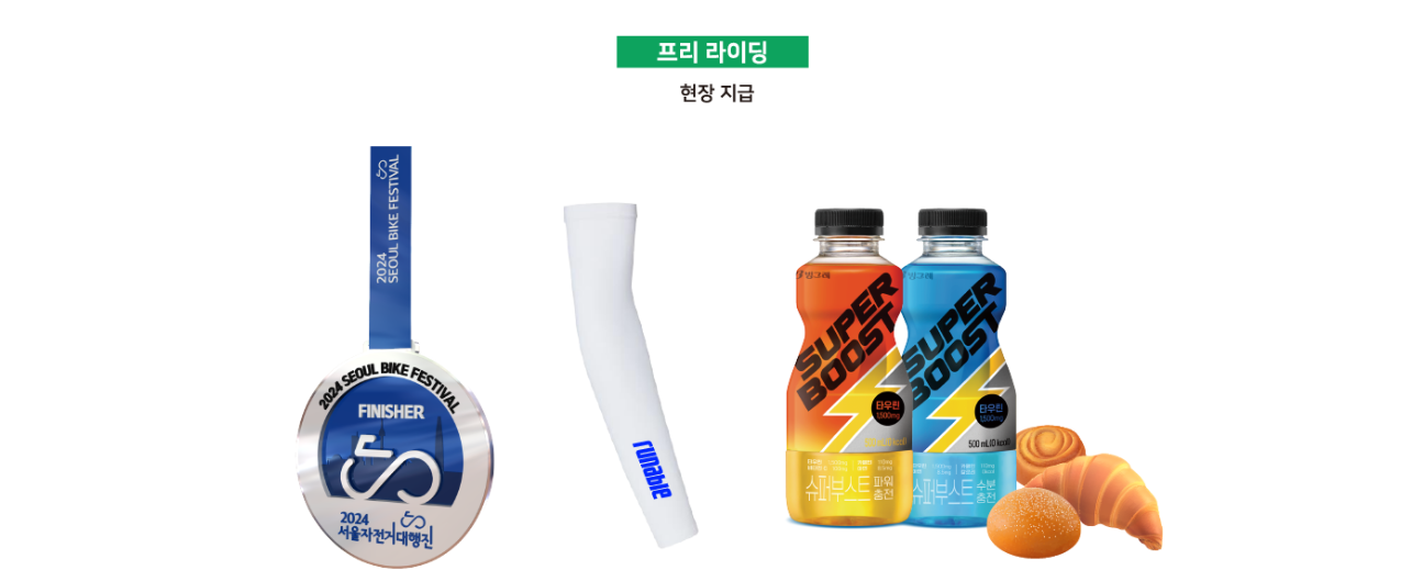 자전거 대행진 완주 시 메달과 팔토시, 음료와 빵 같은 먹거리 준다는데