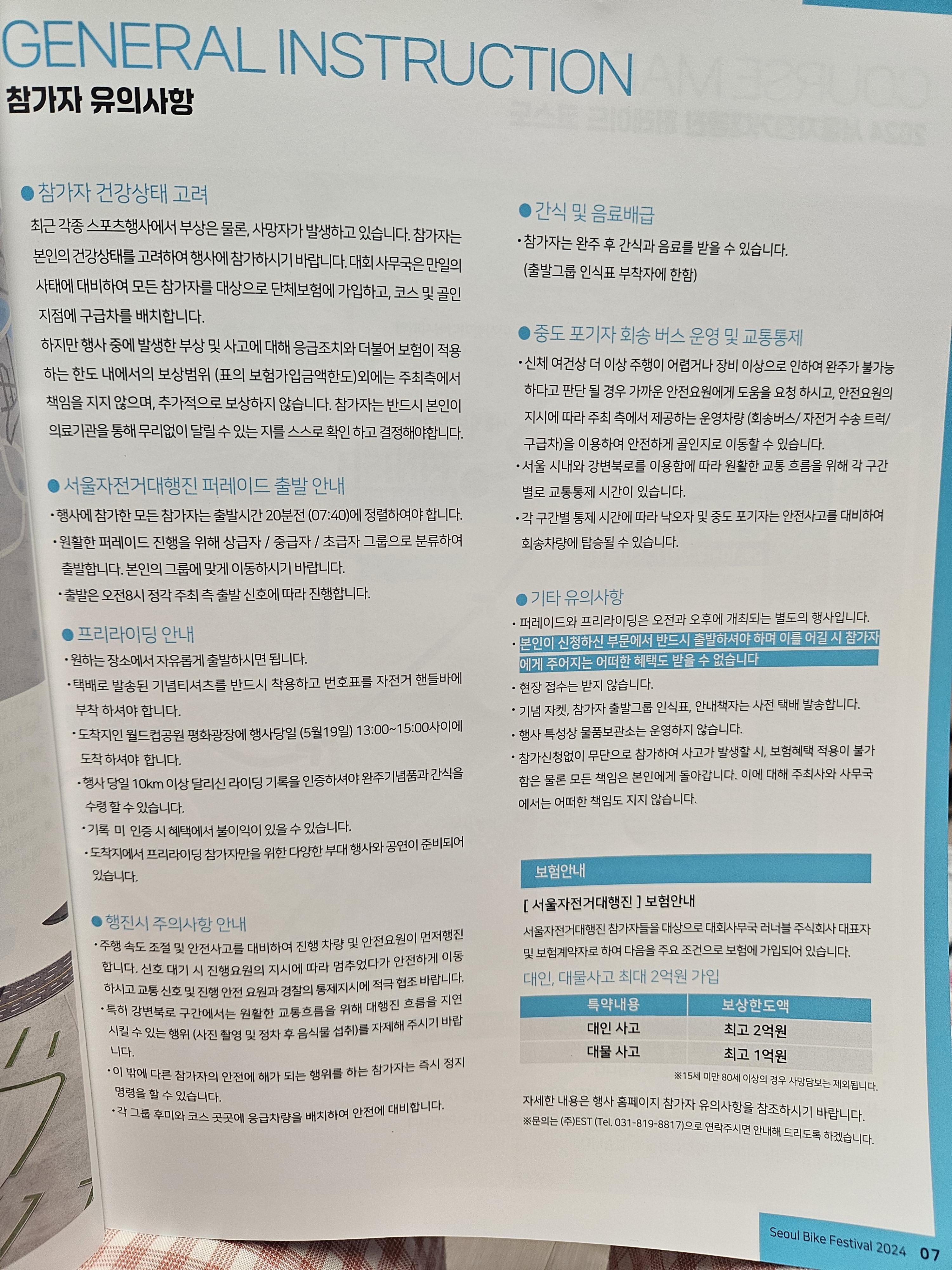 정해진 코스와 거리를 준수해야 하는 퍼레이드 대신 이런 대회는 처음이라 많은 제약 없는 프리라이딩으로 참가 신청했다는데 퍼레이드는 진작에 마감돼서 선택권이 없다고 했음 😅