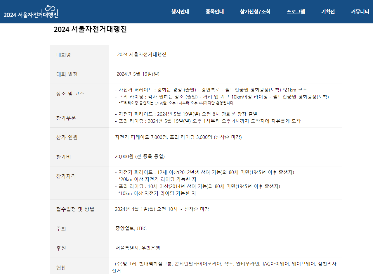 서울 자전거대회 2024 서울자전거대행진 참가신청 및 참가비 접수방법
