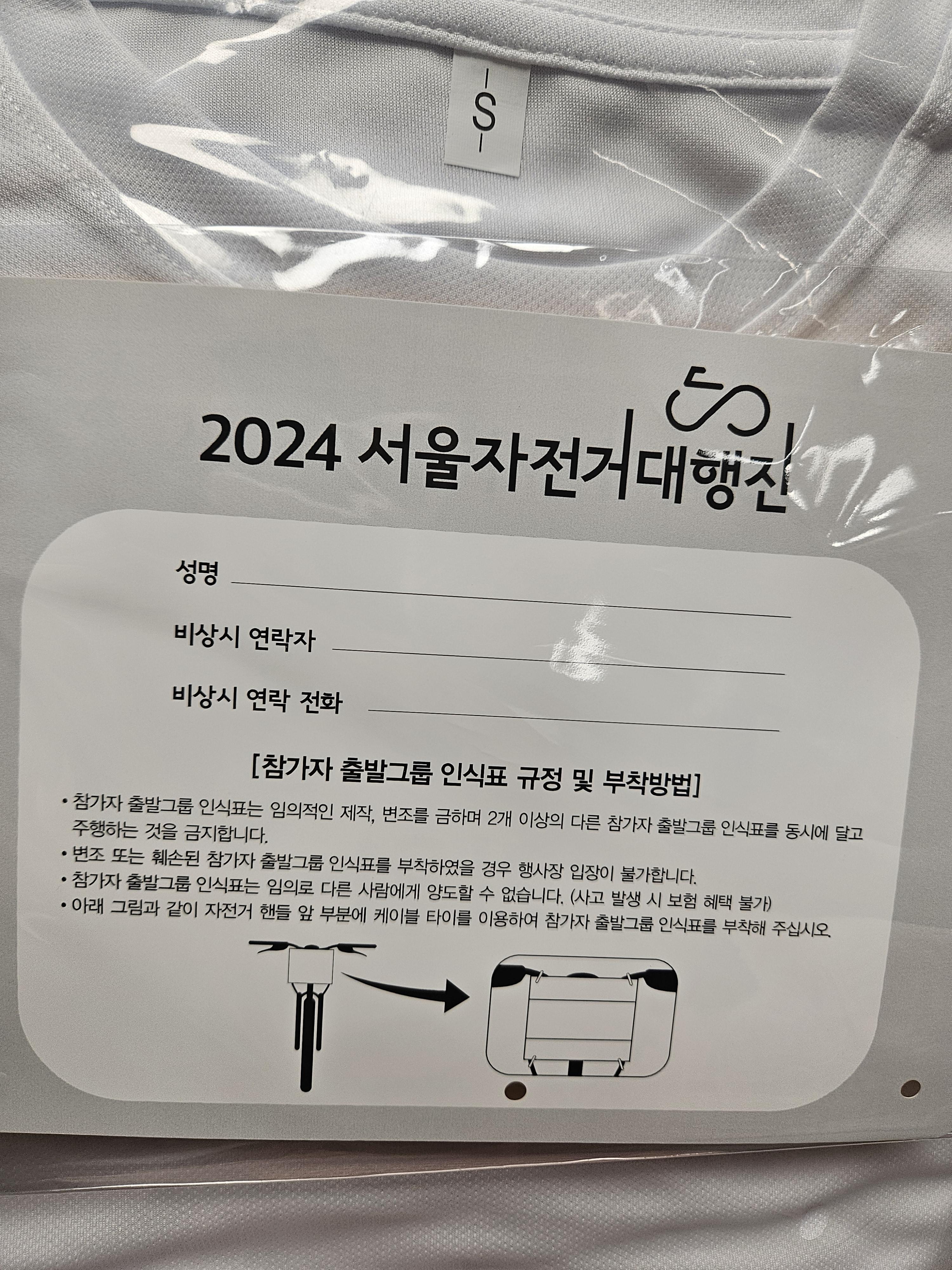 의상은 퍼레이드 참가자는 블루, 프리 라이딩은 화이트, 참가자 인식표는 홈페이지에 블루로 업로드되어 있는데 이건 퍼레이드 참가자에 해당되는 컬러 같고 우리는 노란색을 받았다.