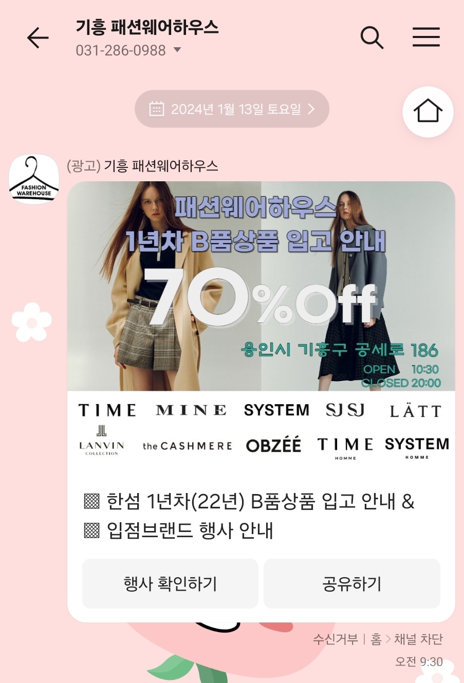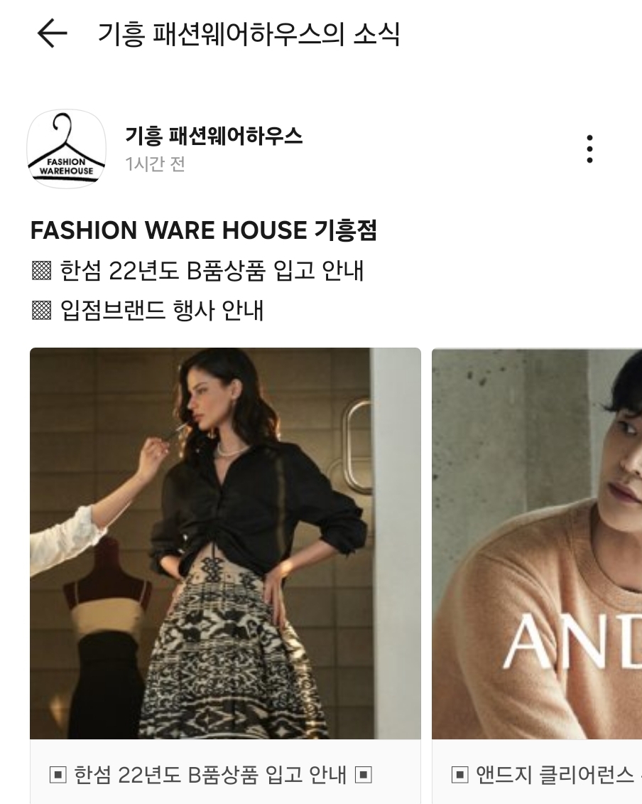출처(이미지 & 내용): 카카오톡 기흥 패션웨어하우스 채널