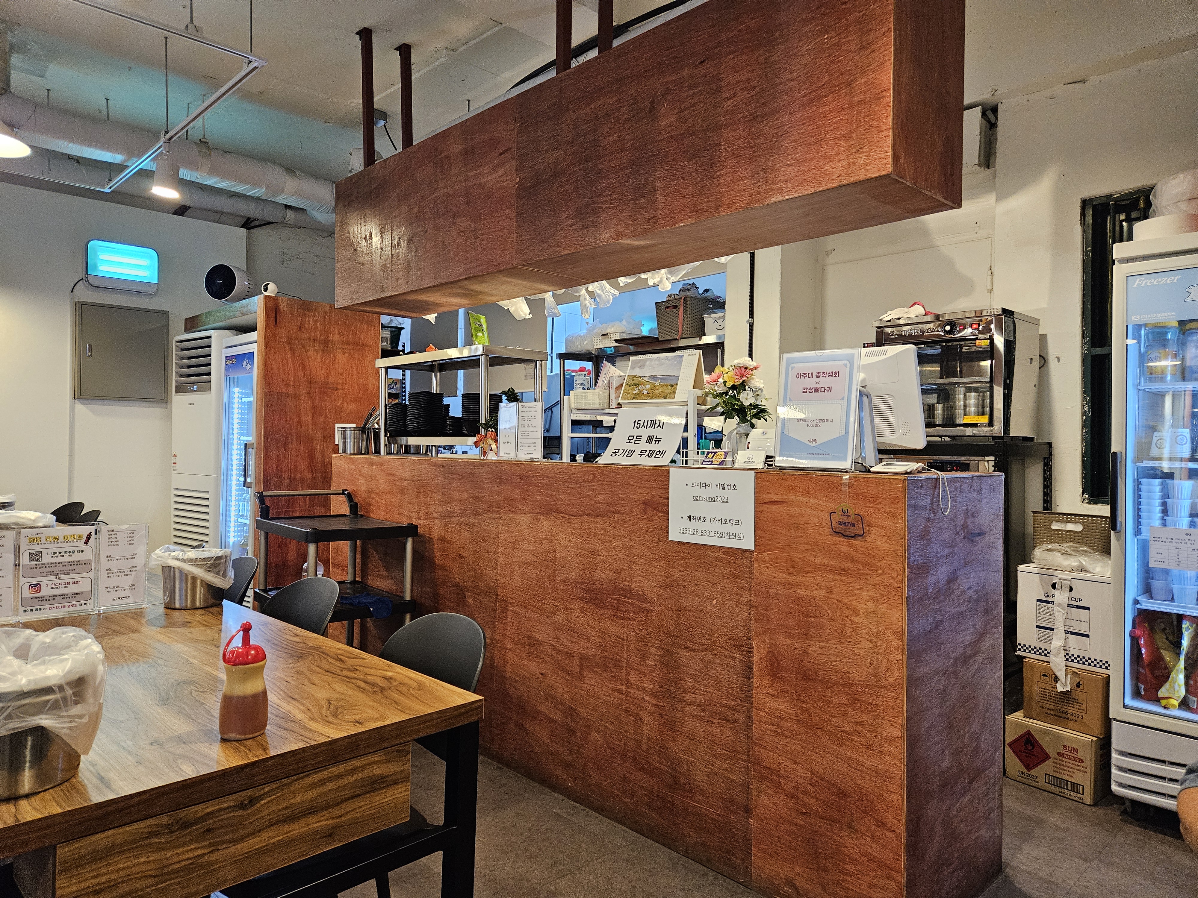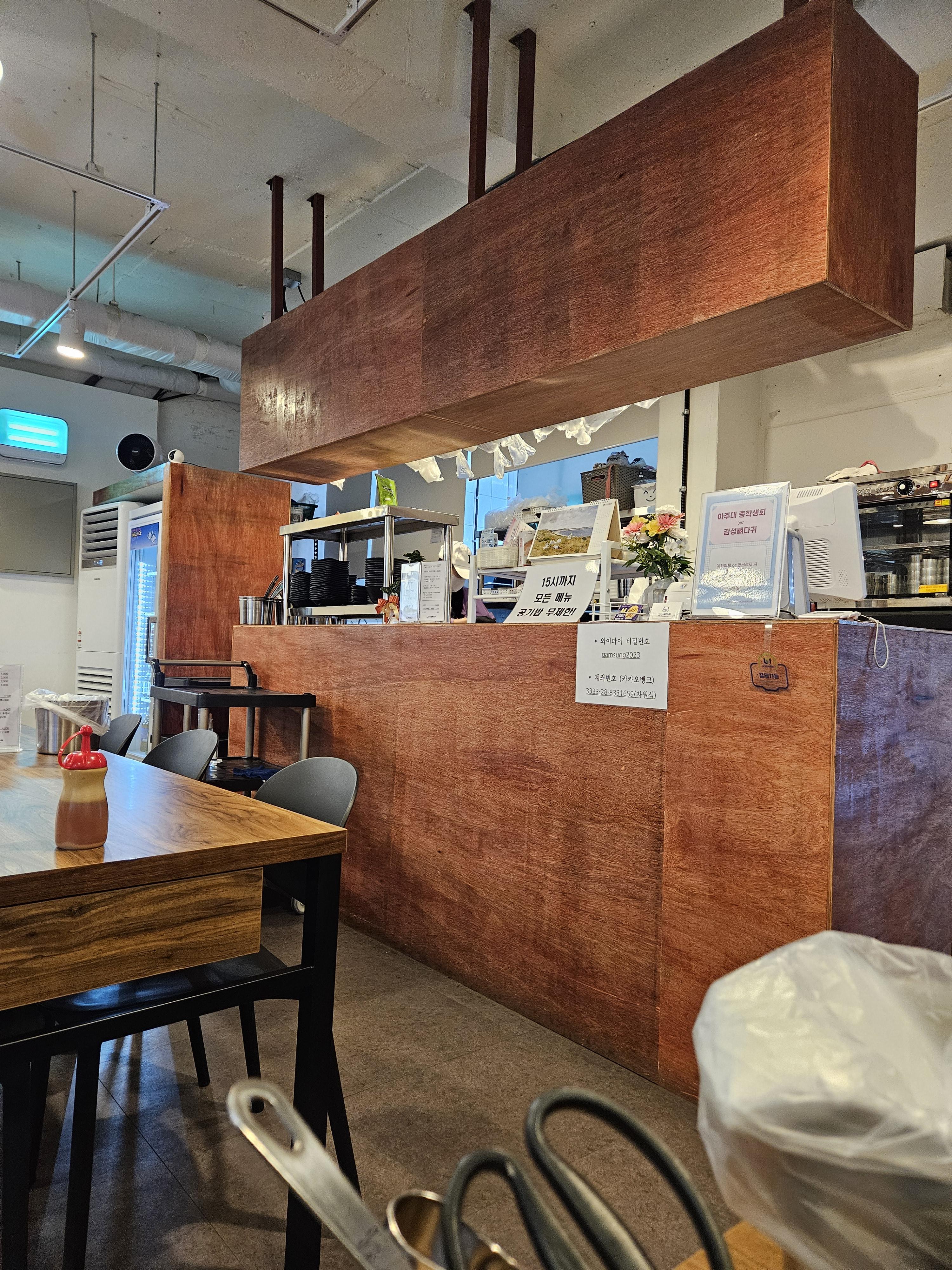 우리는 토요일 6시 반쯤에 방문했고 평일엔 아주대 학생들로 만석인 걸 많이 봤는데 토요일이라 그런지 포장이나 배달 손님, 가족단위로 오는 분들이 많아 보였다.