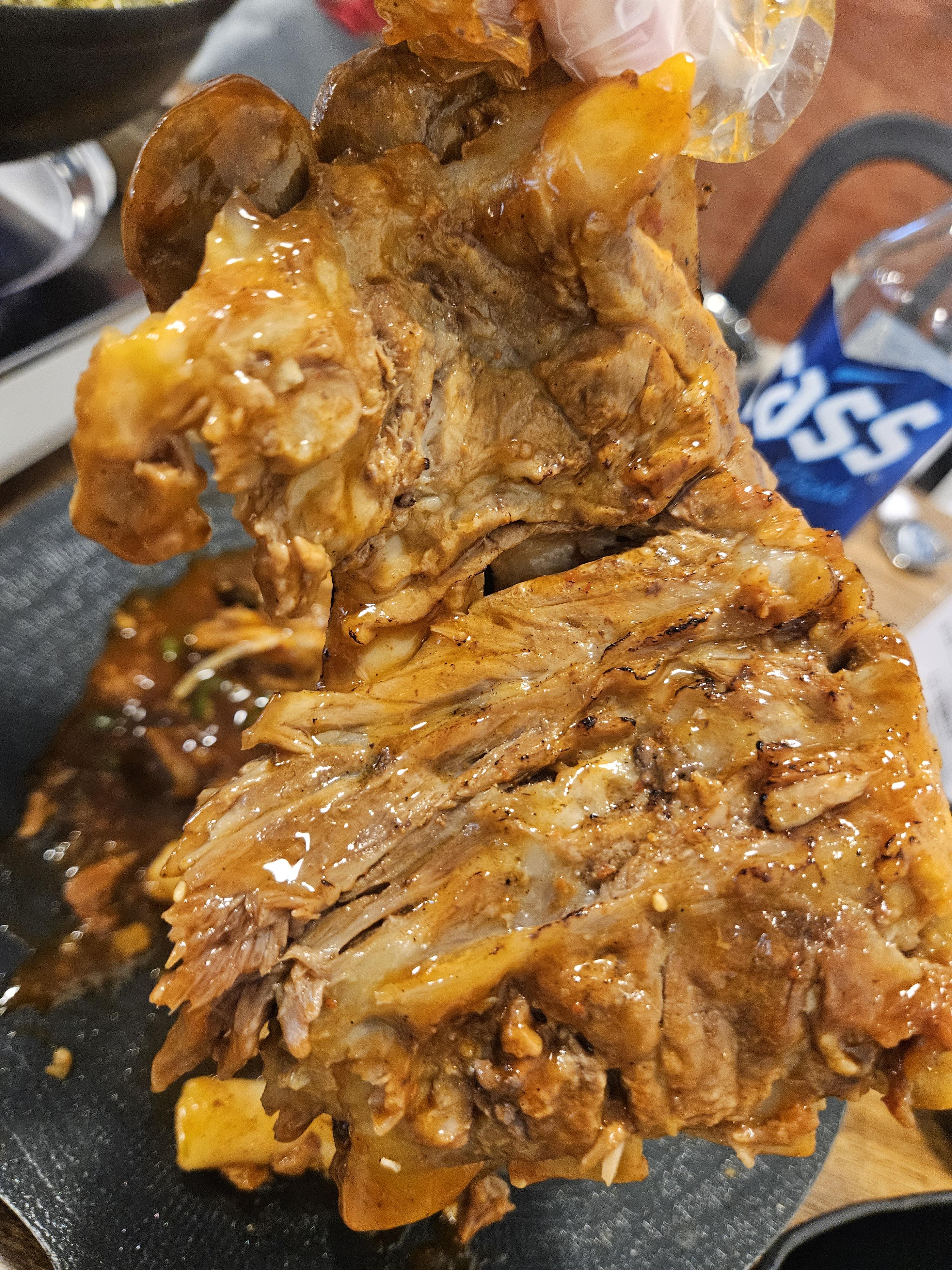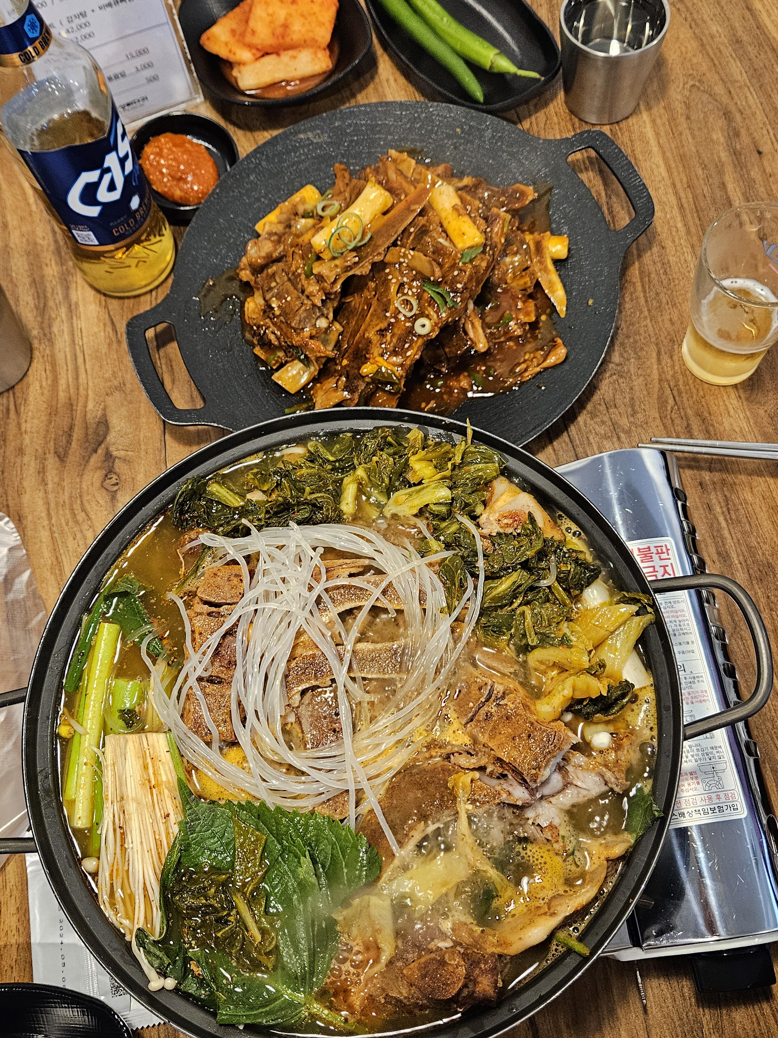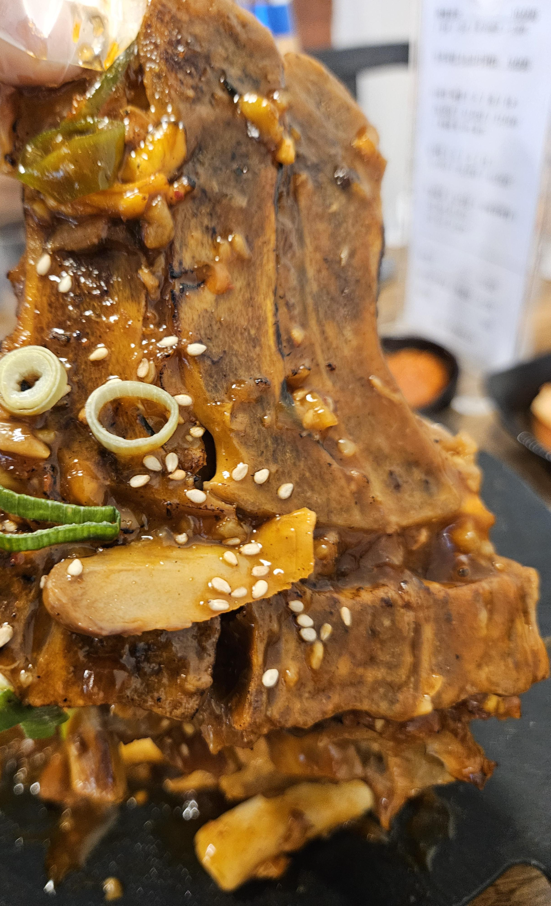 뼈해장국 나오고 바비큐 뼈찜도 바로 가져다 주심. 빨간 양념이 맛있어 보이는데 토치로 그을린 불맛 나는 뼈찜이면 더 맛있을 것 같지만