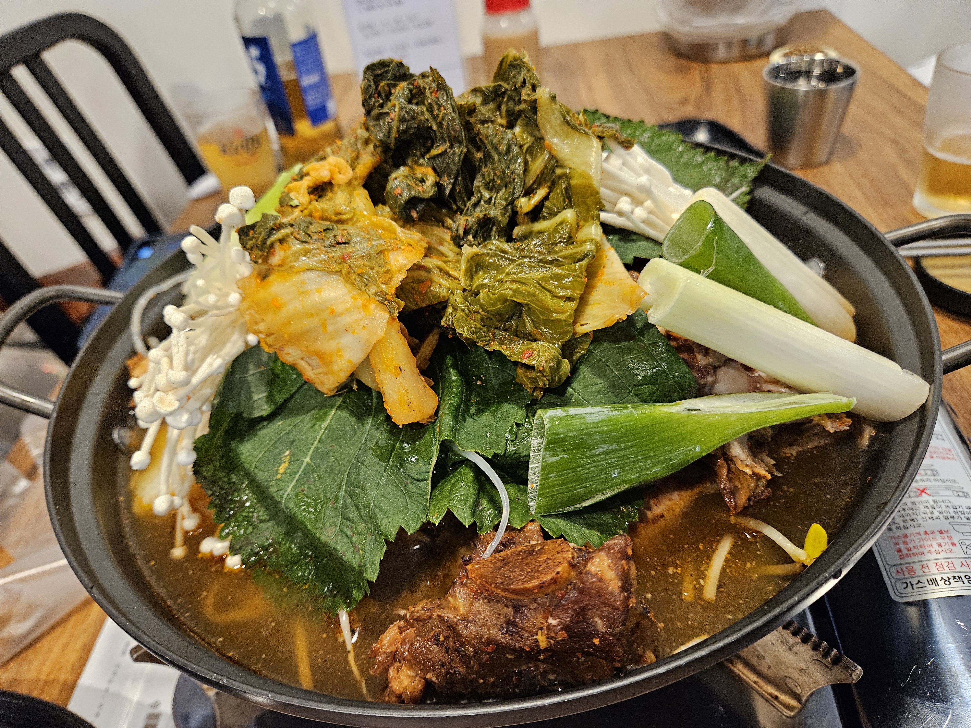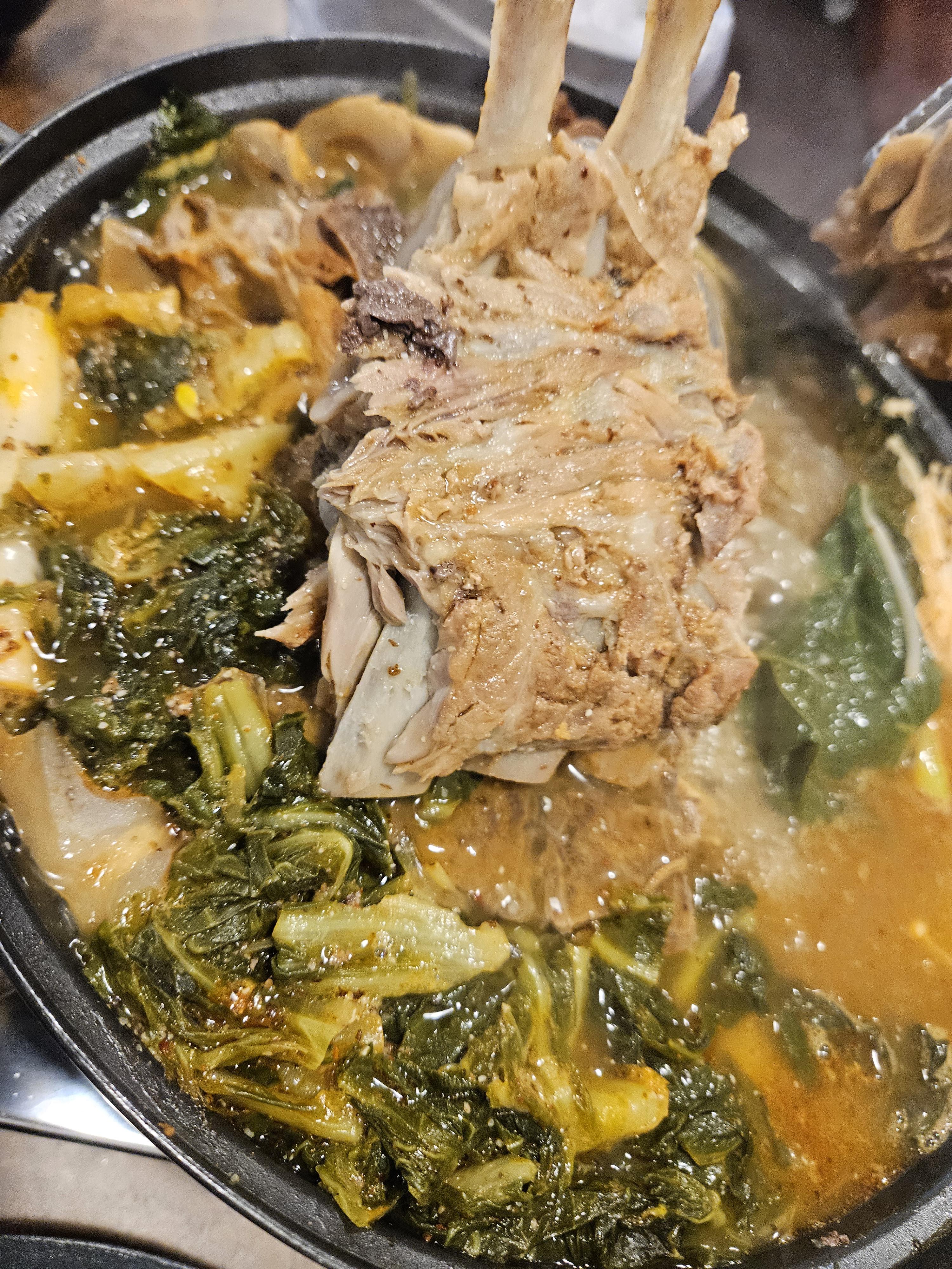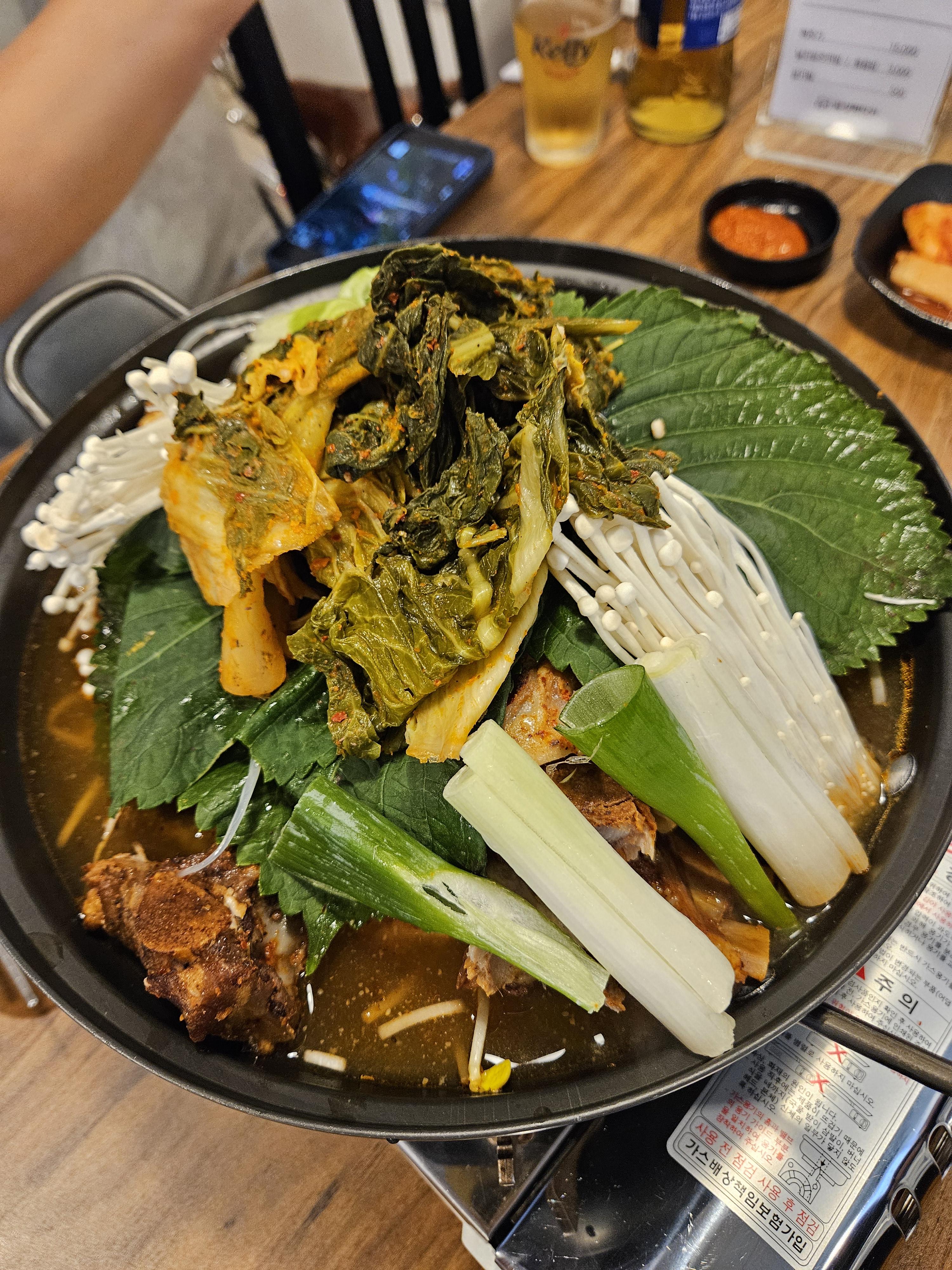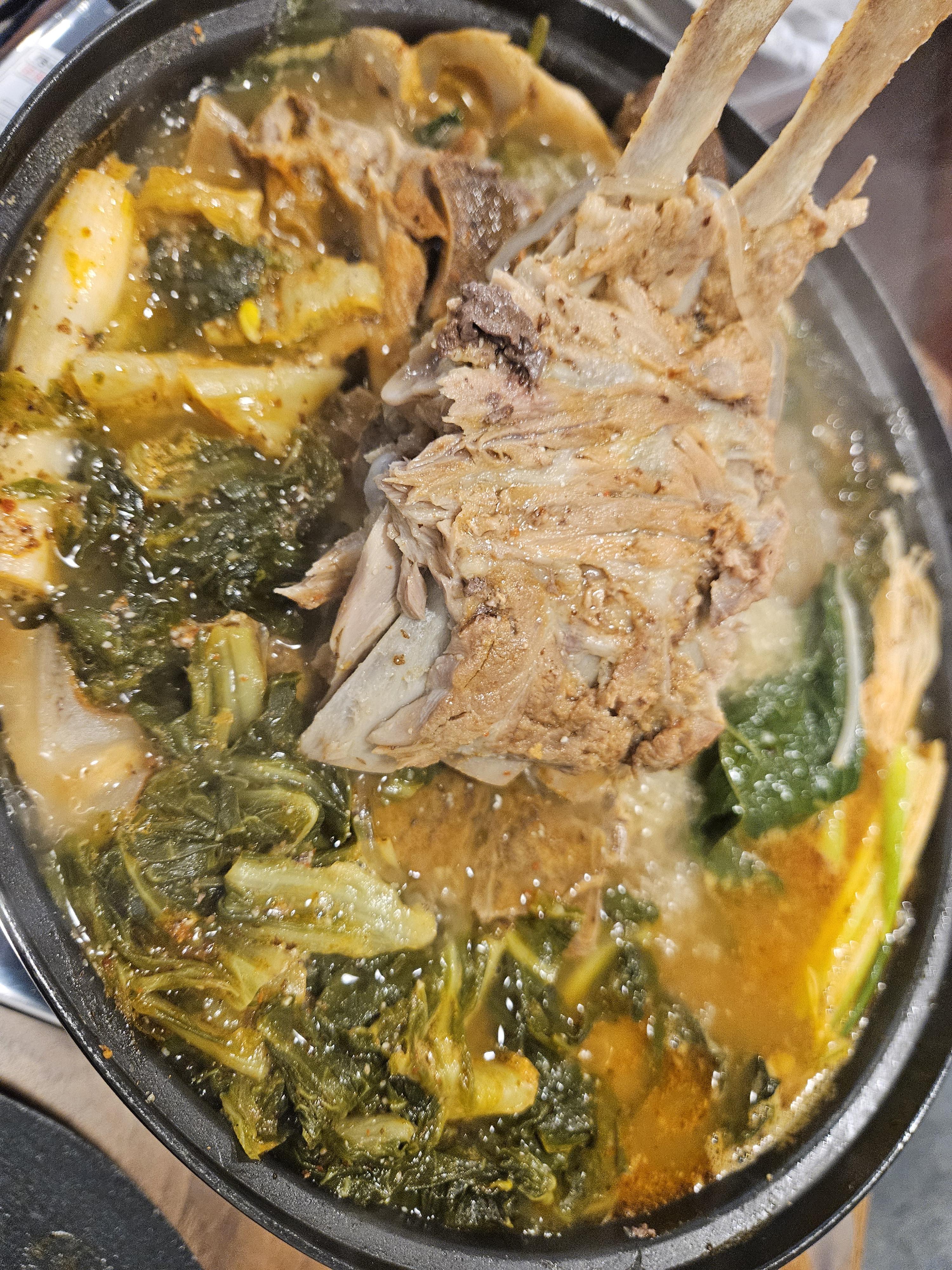 대파, 우거지, 콩나물, 팽이버섯에 감자 내가 좋아하는 채소에 등뼈 가득, 육수는 맑은 스타일인데 밍밍하지 않은 깊은 맛이 나서 계속 먹게 되는 중독성 있는 맛이다.
