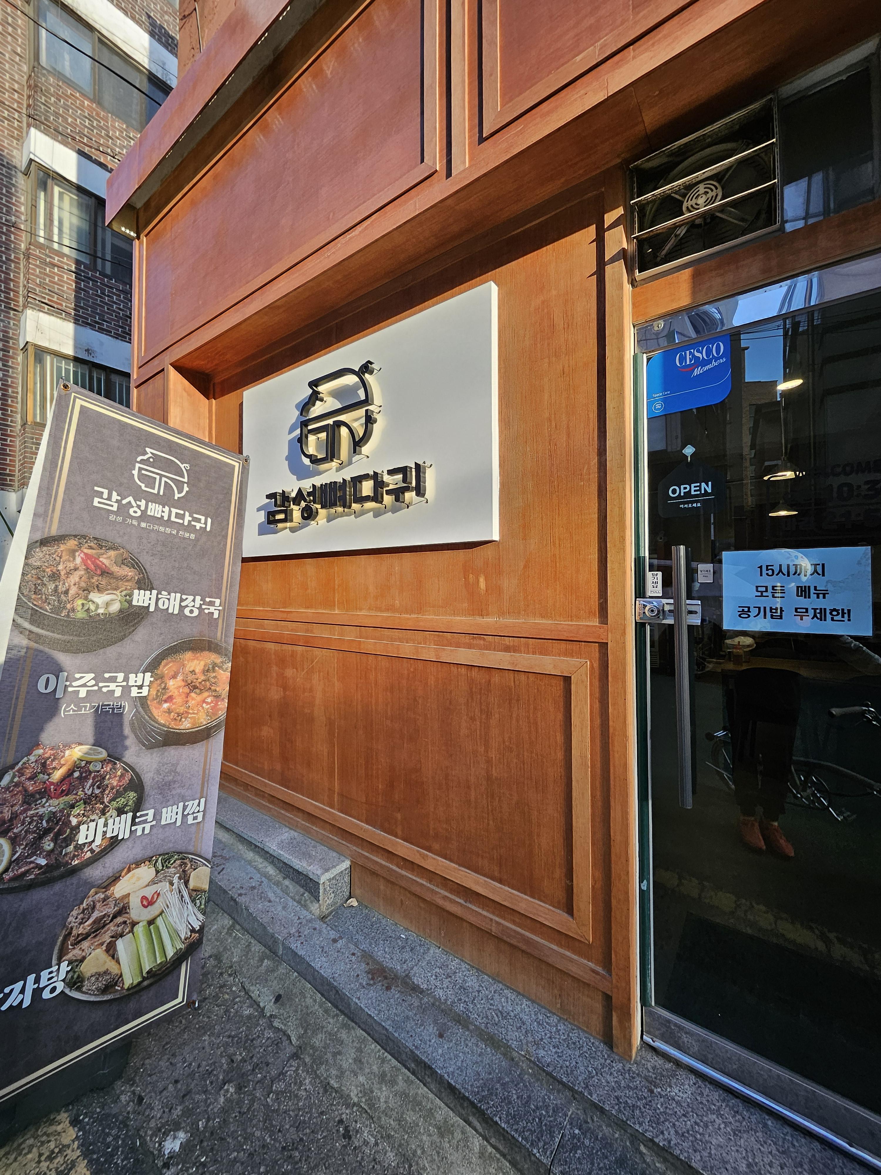 감성 상호답게 기존 노포 같은 스타일의 뼈다귀 집 아니고 좀 깔끔한 분위기로 요즘 사람들이 좋아하는 인테리어.