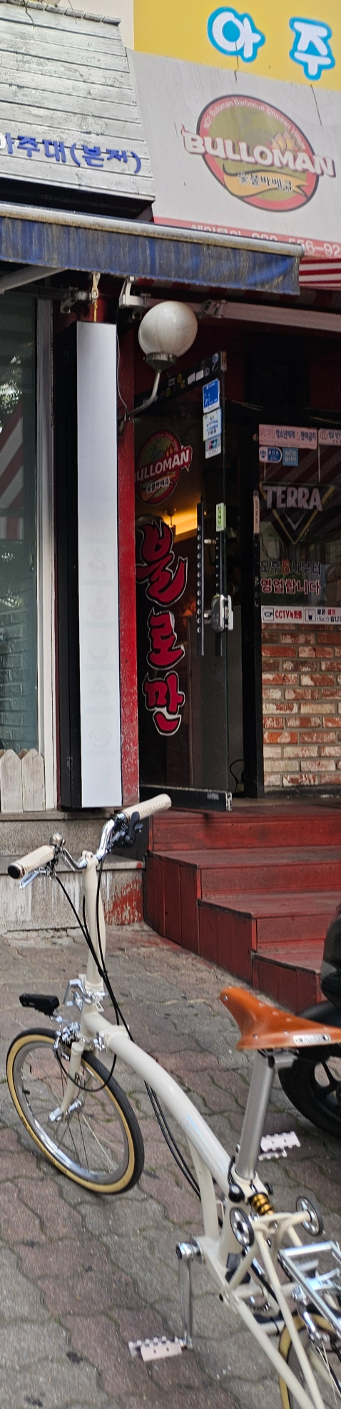 룸은 없지만 8인석 테이블도 있어서 여럿이 와도 괜찮을 것 같네. 접이식 자전거라 분실 위험 때문에 가지고 들어와야 해서 우측 구석에 자전거 놓을 만한 공간이 있는 4인석으로 자리하고 메뉴 봤는데 뼈해장국, 소고기국밥, 바비큐 뼈찜과 세트메뉴가 있었다.