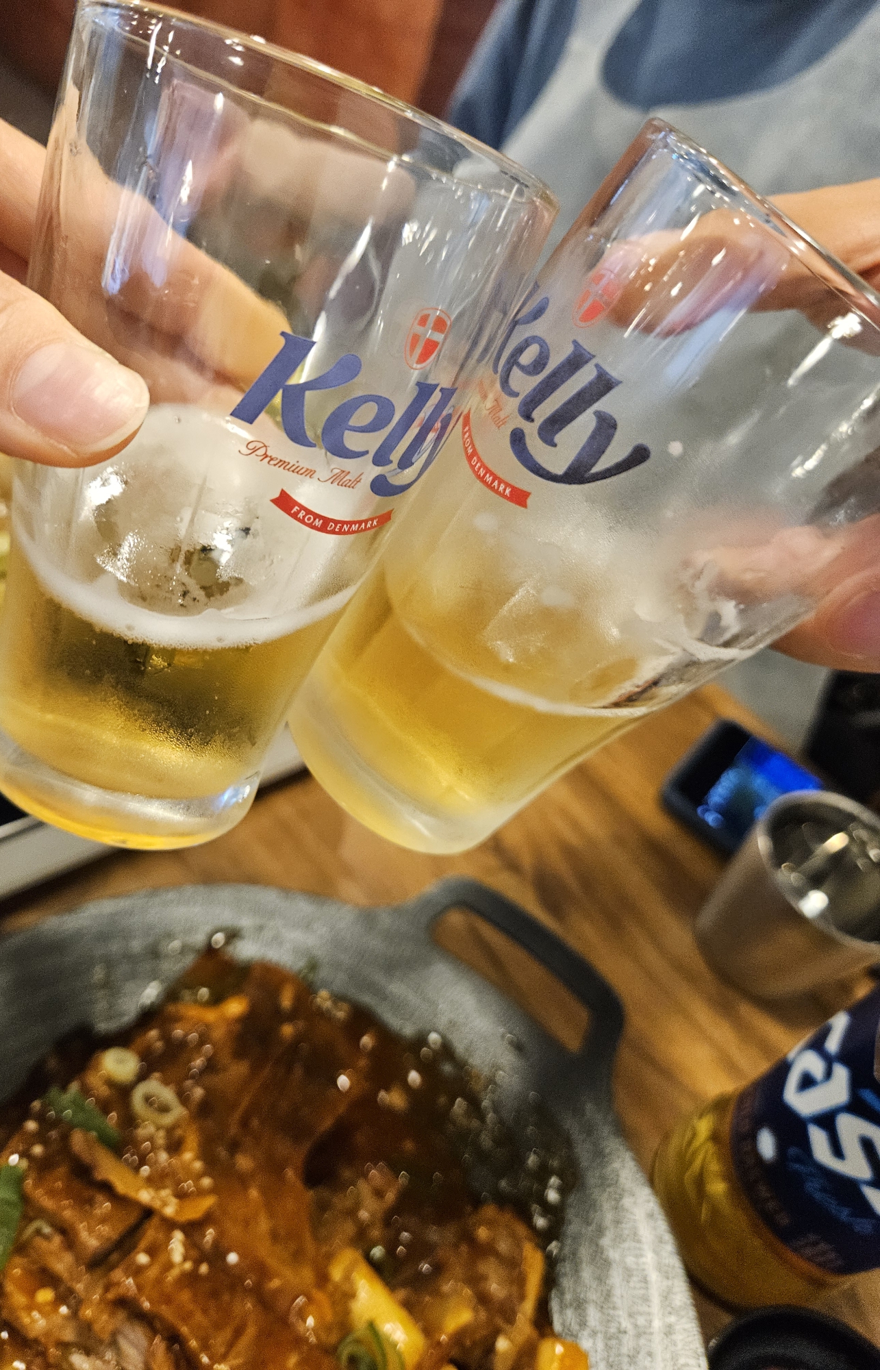 기본 찬은 섞박지 스타일의 큼지막한 깍두기, 고추랑 쌈장 주셨고, 카스 한 병 주문했다.