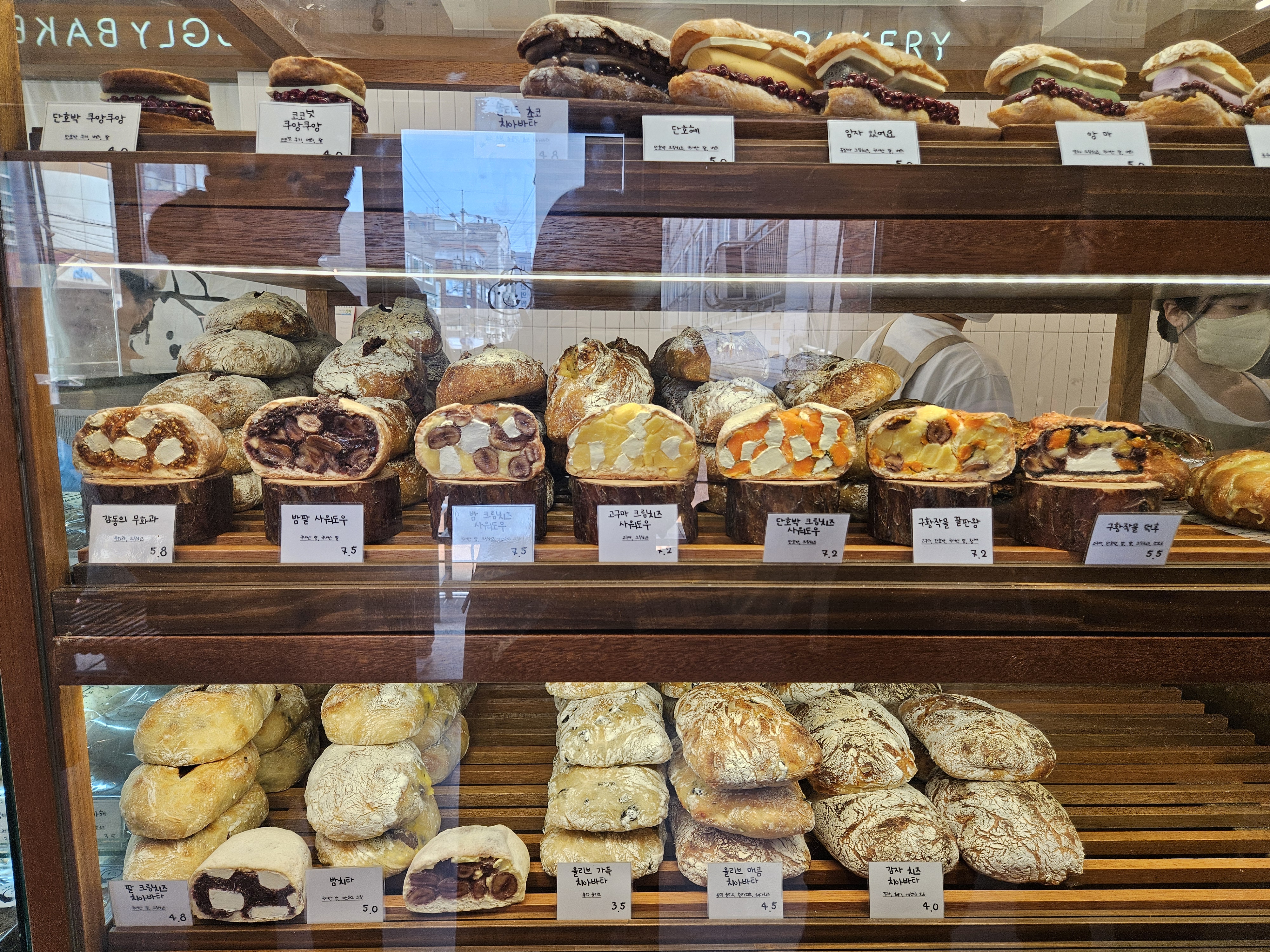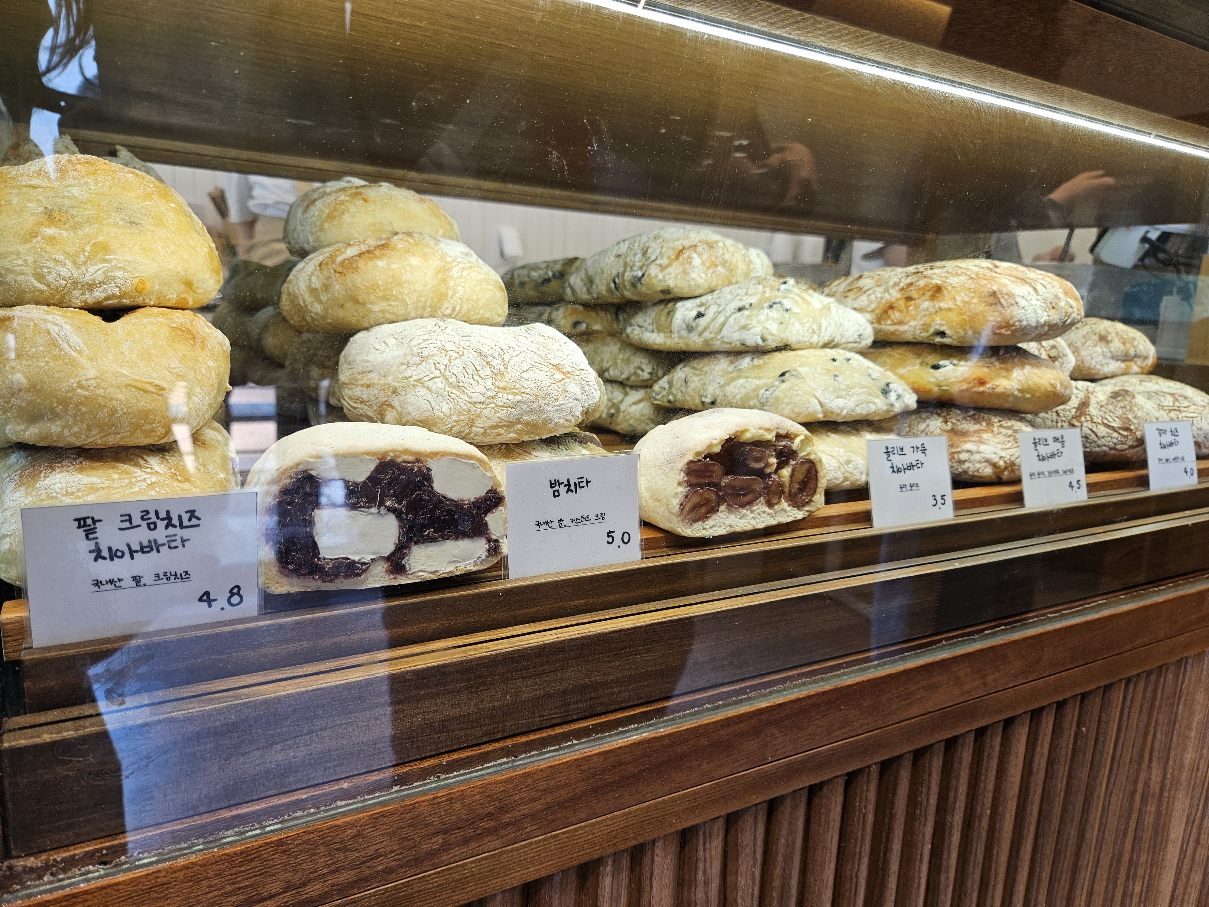 모든 빵이 빵보다 내용물이 실한 것으로 유명한데 크림빵, 맘모스, 사워도우, 치아바타, 앙버터 모두 내용물이 정말 가득 차있어서 빵 몇 개만 담아도 무게가 상당하다.