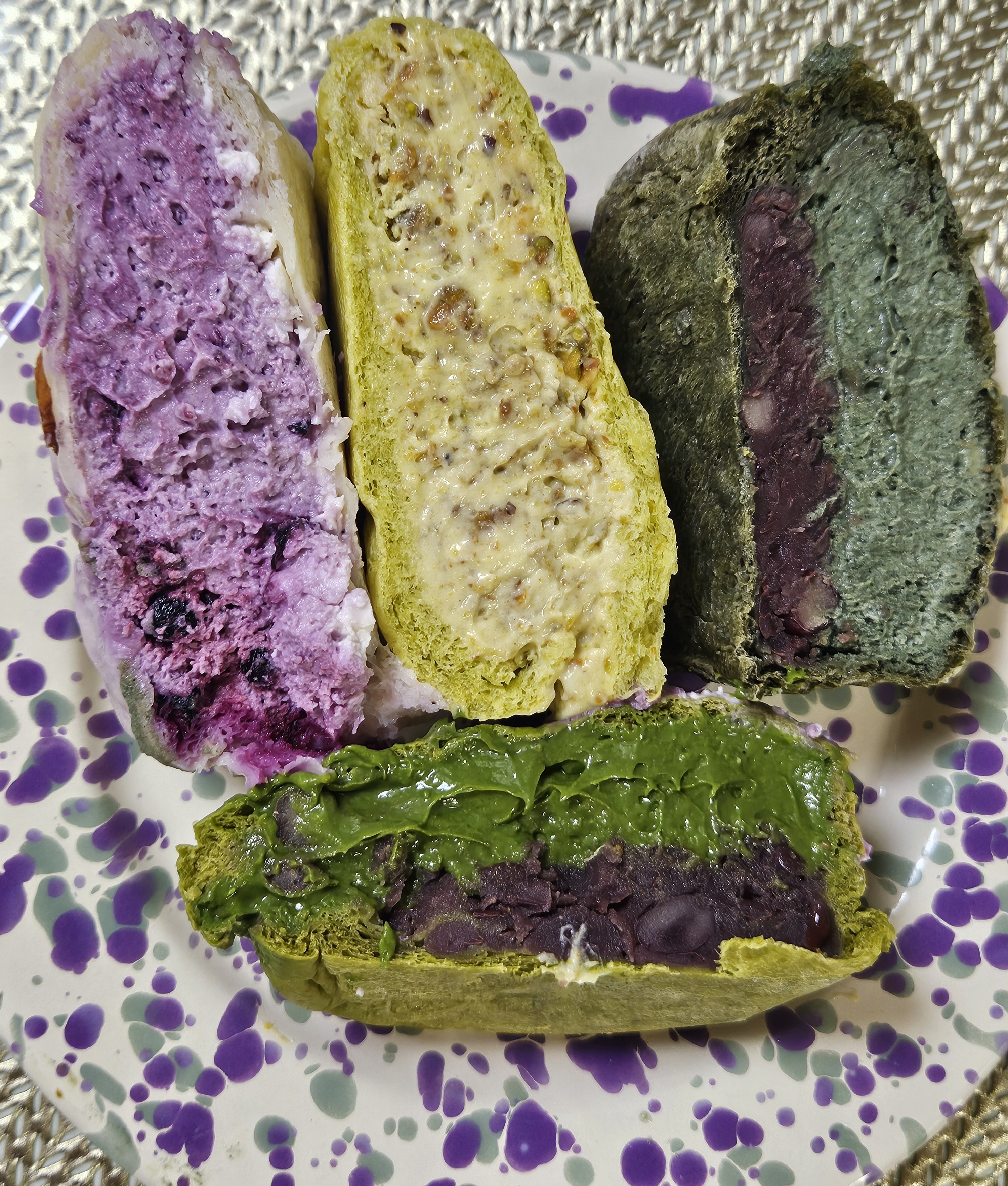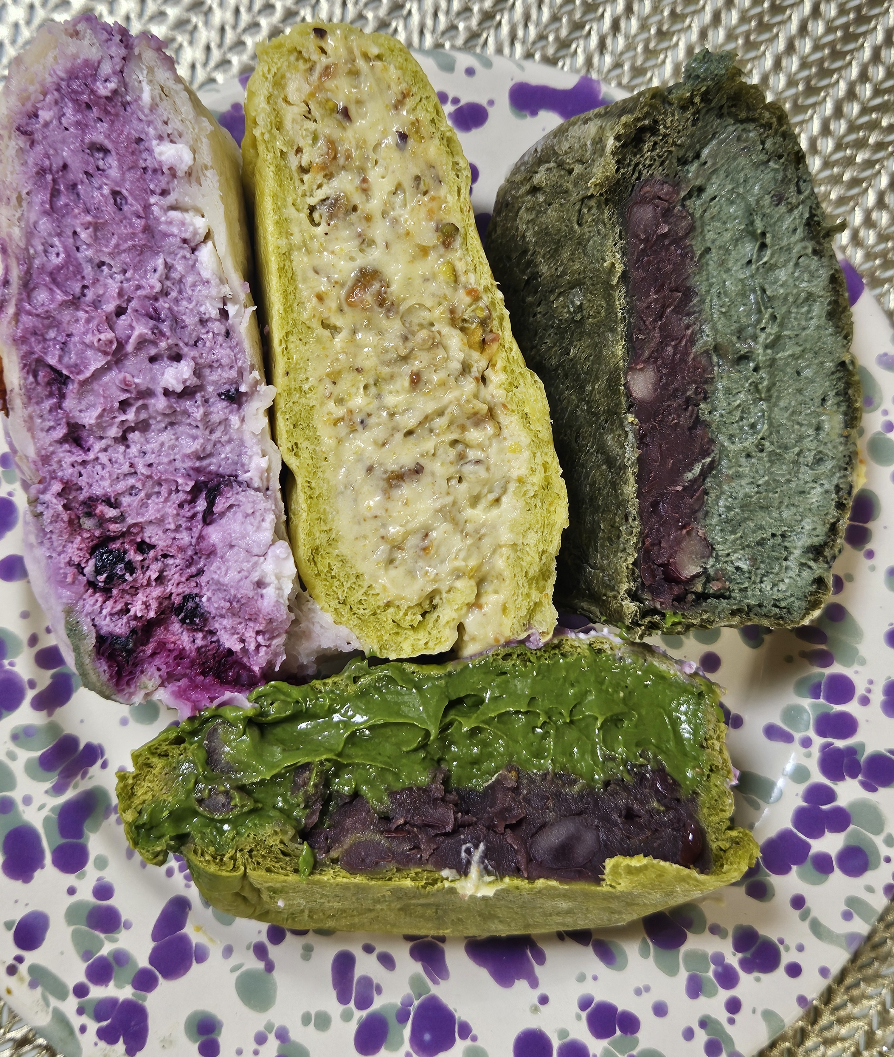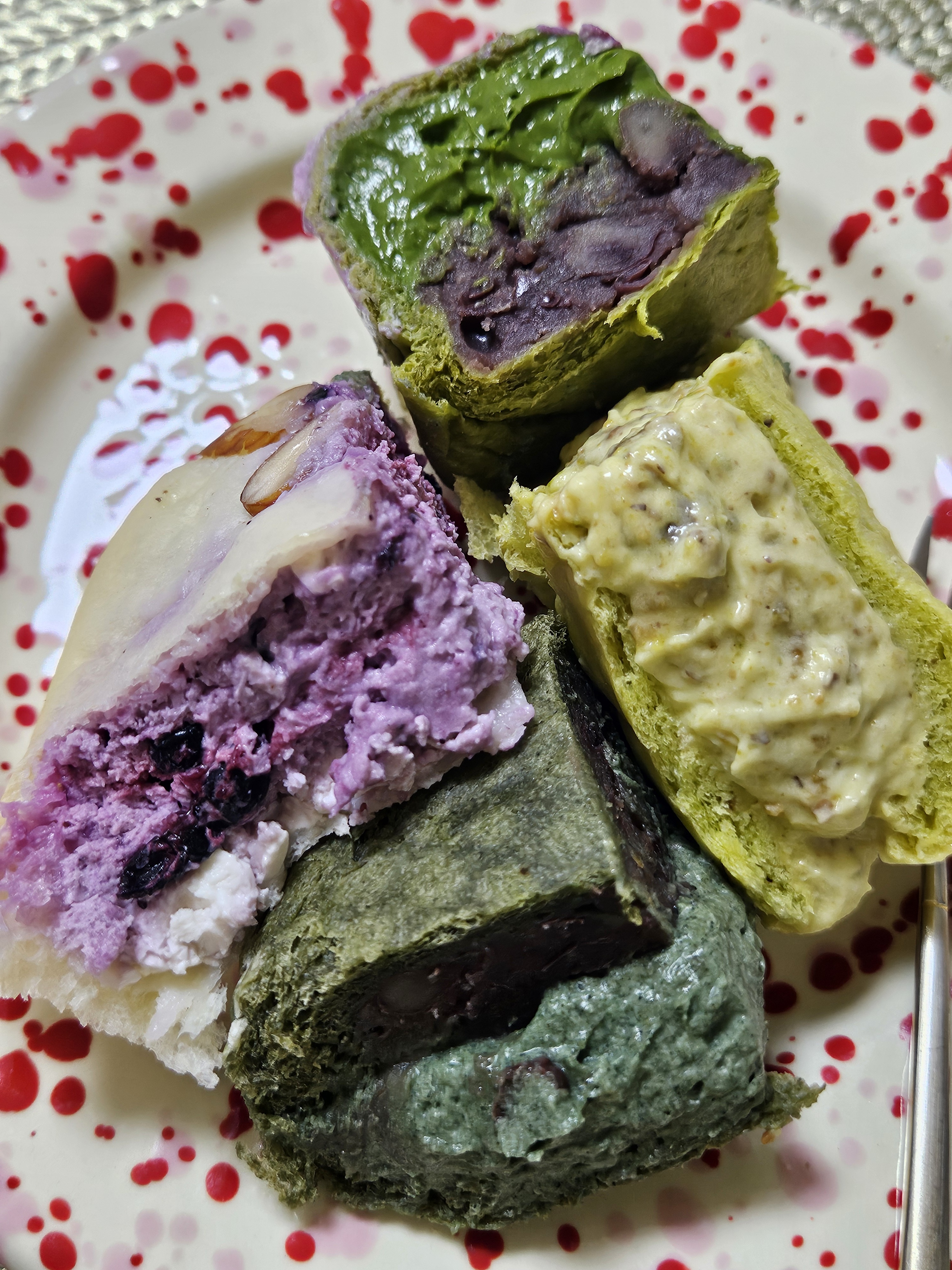 집에 가져와서 엄마랑 크림빵 4가지 종류(말차 커스터드 팥빵, 블루베리 덕후 크림빵, 피스타치오 크림빵, 쑥쑥 좋아해) 먼저 맛보려고 개봉!