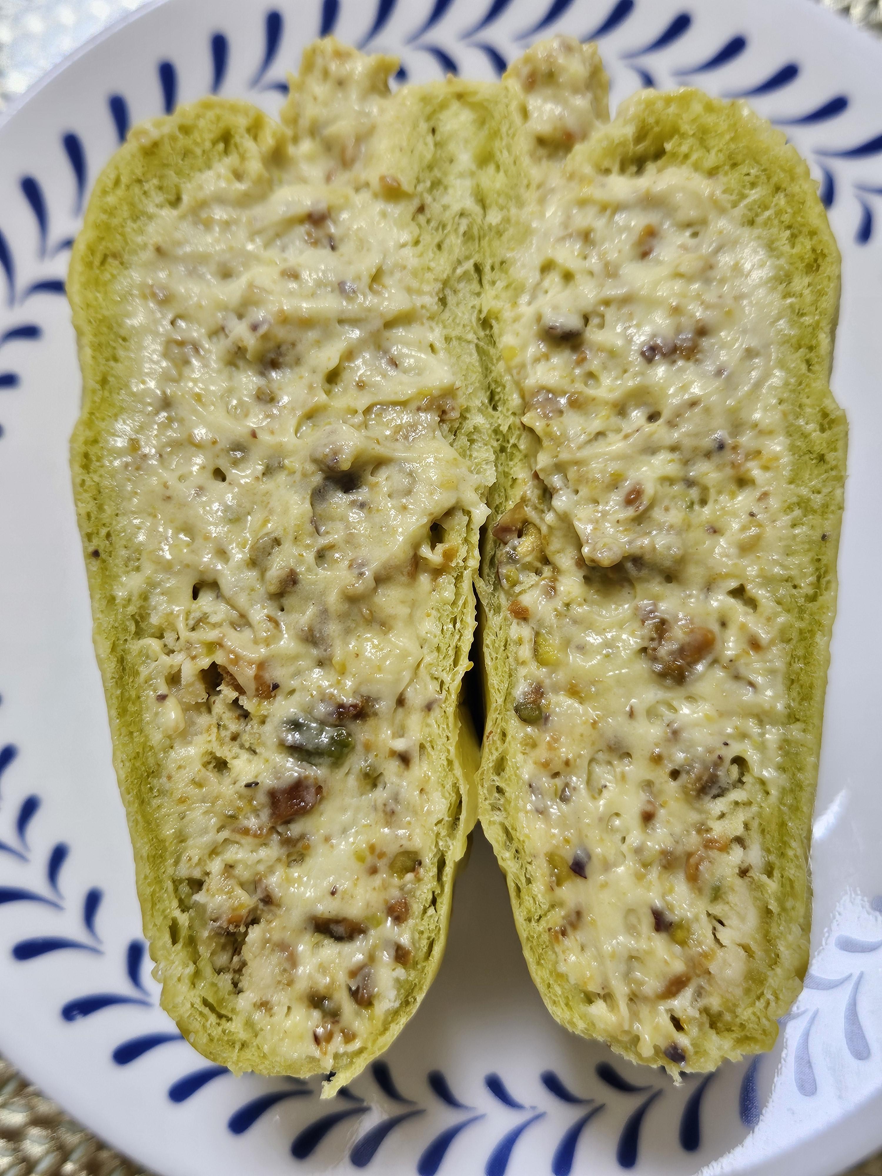 피스타치오는 피스타치오를 잔뜩 으깨서 크림하고 섞으니 피스타치오 향이 쫙 퍼지는 맛~ 크림빵은 무조건 차갑게 해 먹어야 맛있음.