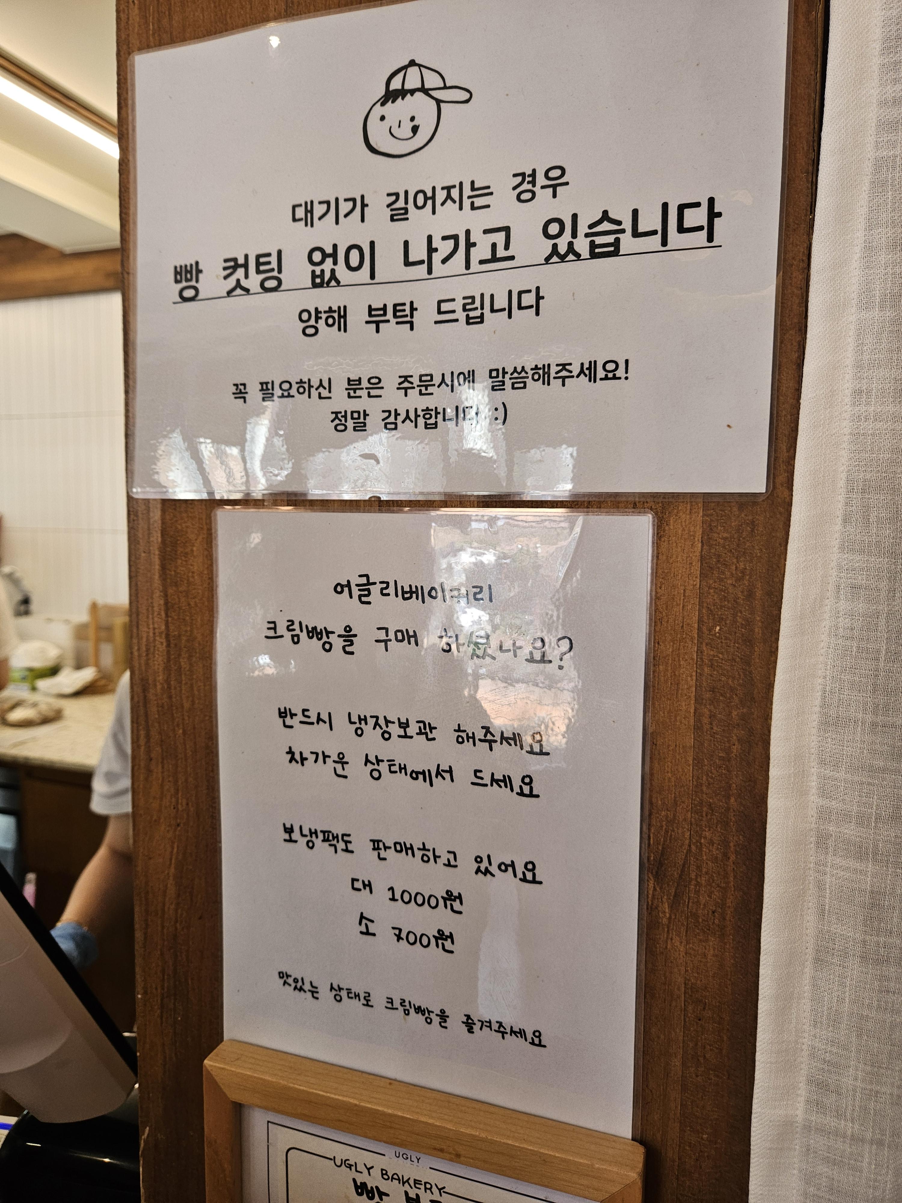 어글리베이커리 가는 분들은 보냉백과 아이스팩 지참은 필수! 판매하긴 하지만 일회용이라 환경도 생각하고 포장비 save 하는 차원에서 가져가는 게 좋음 ㅎㅎ