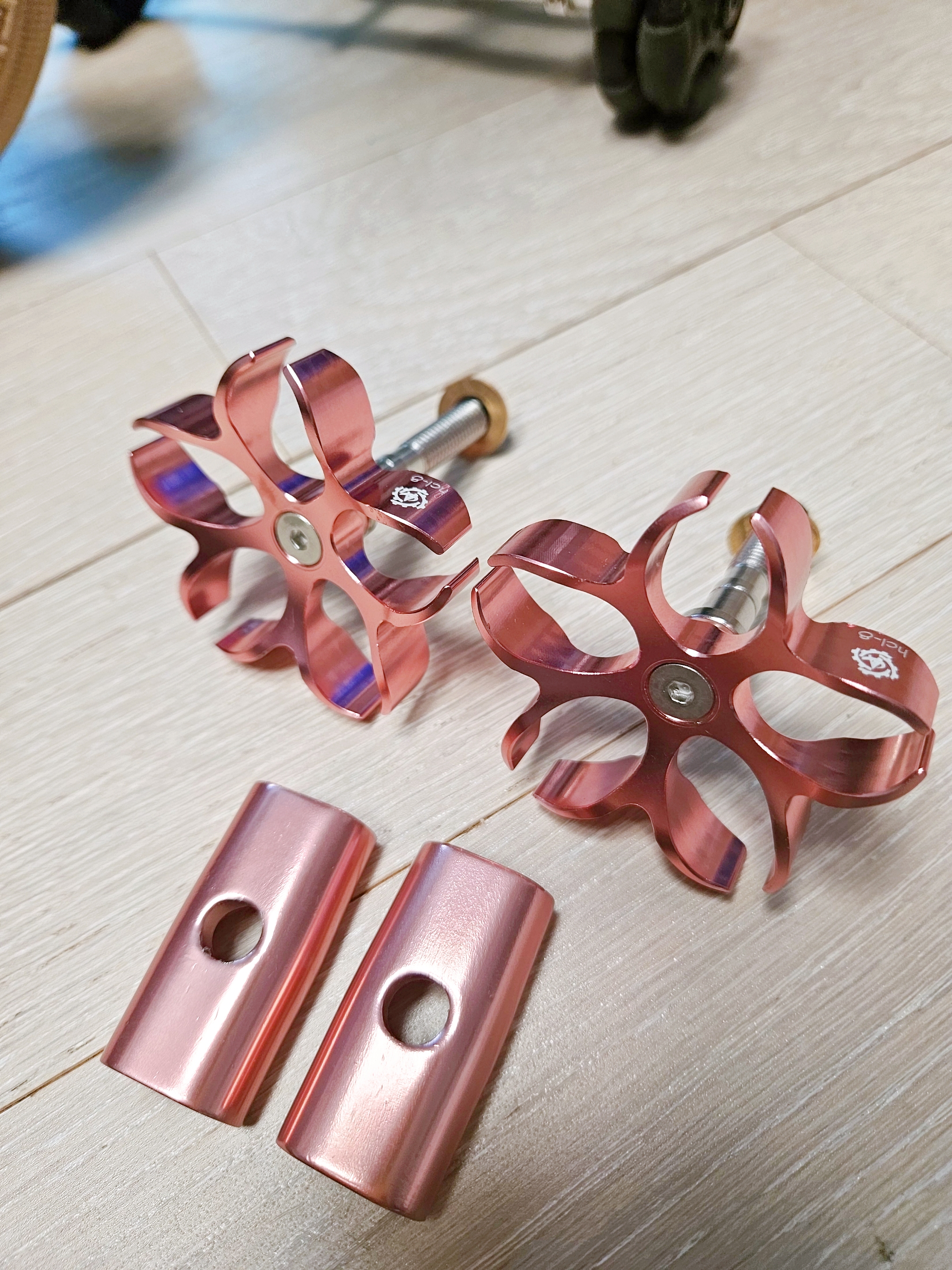 프레임 바디가 아이보리 컬러라 힌지 클렘프 레버는 벚꽃 모양의 연한 핑크로 샀는데 🌸 여기엔 또 전용 고무 같은 게 안 끼어져 있으니 헐거워서 소리가 나더라.