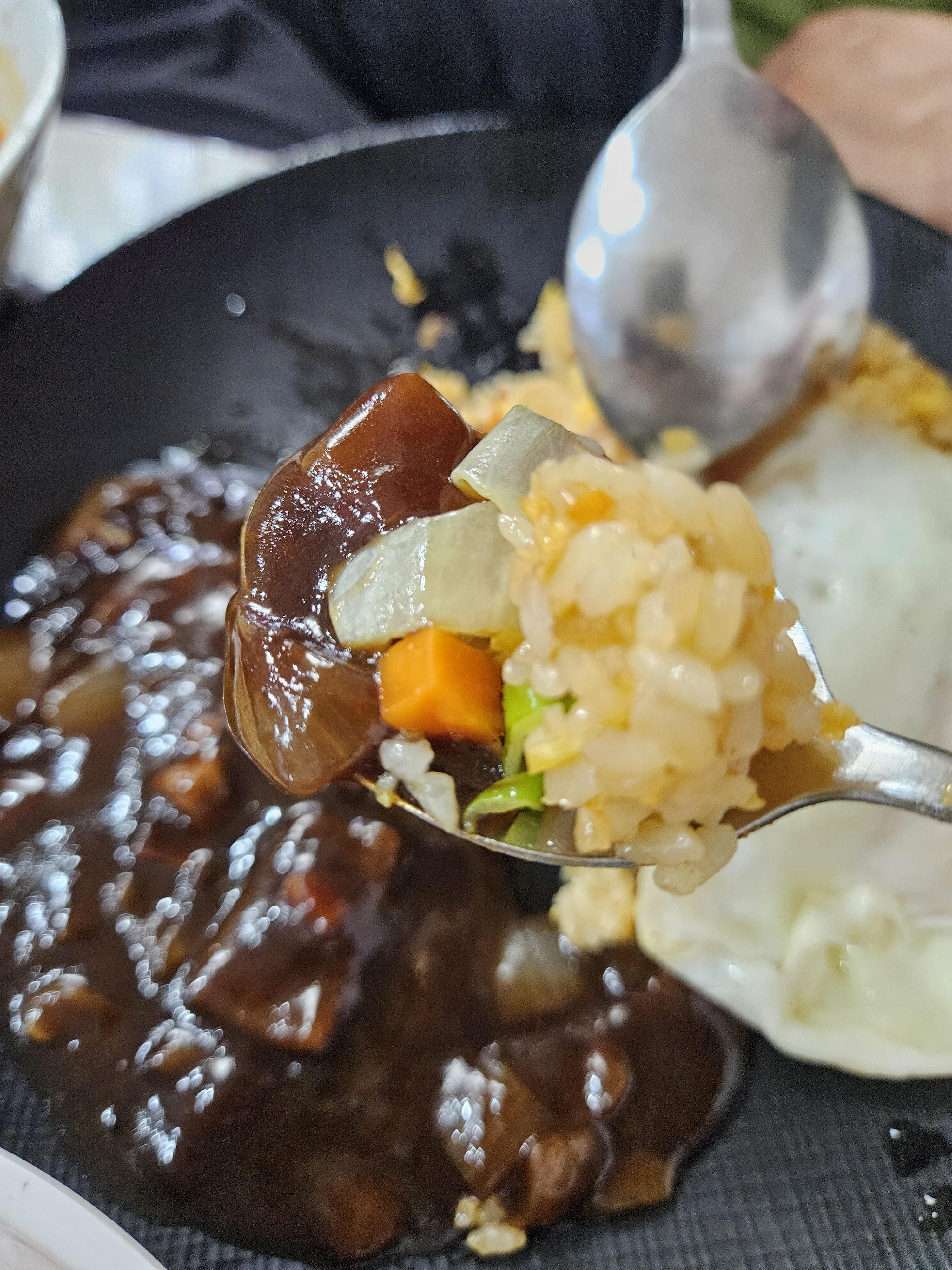볶음밥은 기름에 볶아 밥알 하나하나 고슬고슬함이 살아있는 스타일인데 어떤 느낌인진 알겠지만 난 좀 느끼해서 한 그릇 다 못 먹겠다 싶었는데 다 먹어서 정말 좋아하나 보다 싶었다.