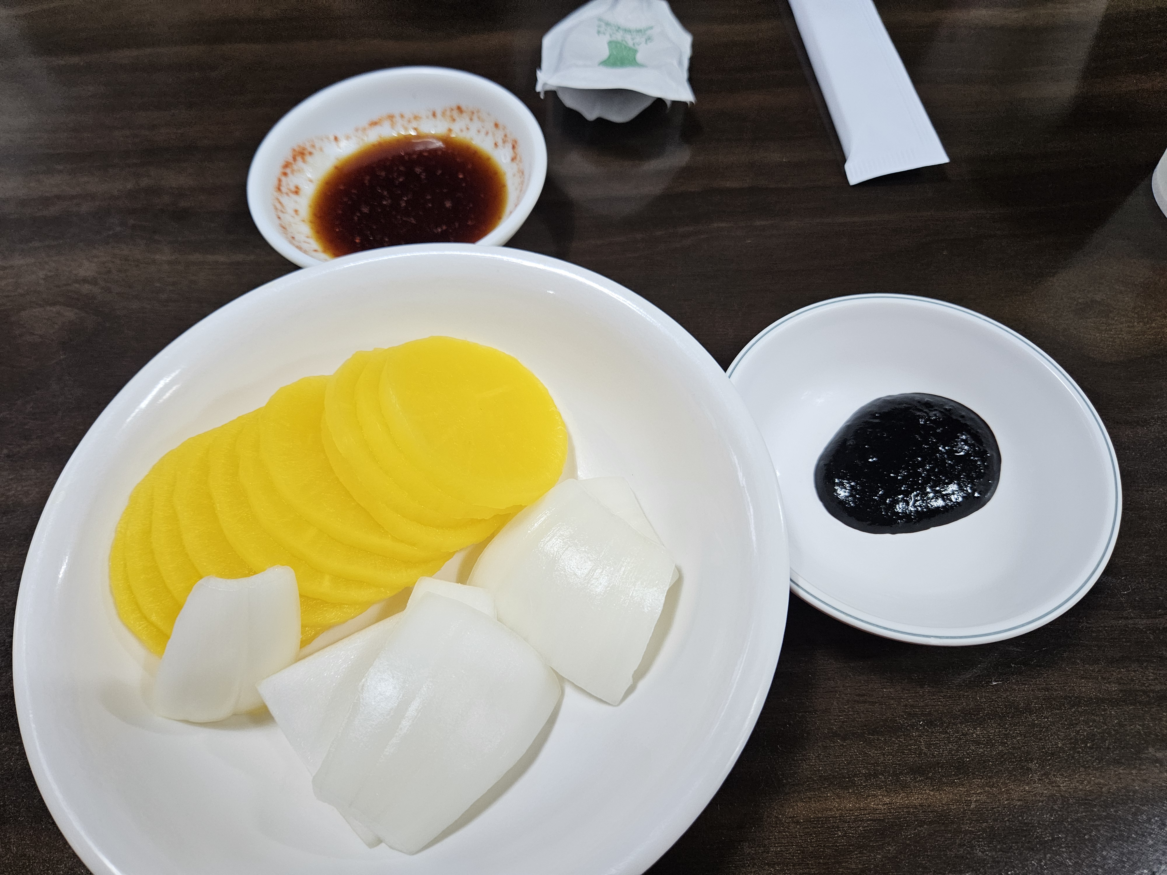 동그란 단무지에 양파, 춘장, 초간장은 만든 거 같은데 오래돼서 기억이 좀 가물가물하네 😅