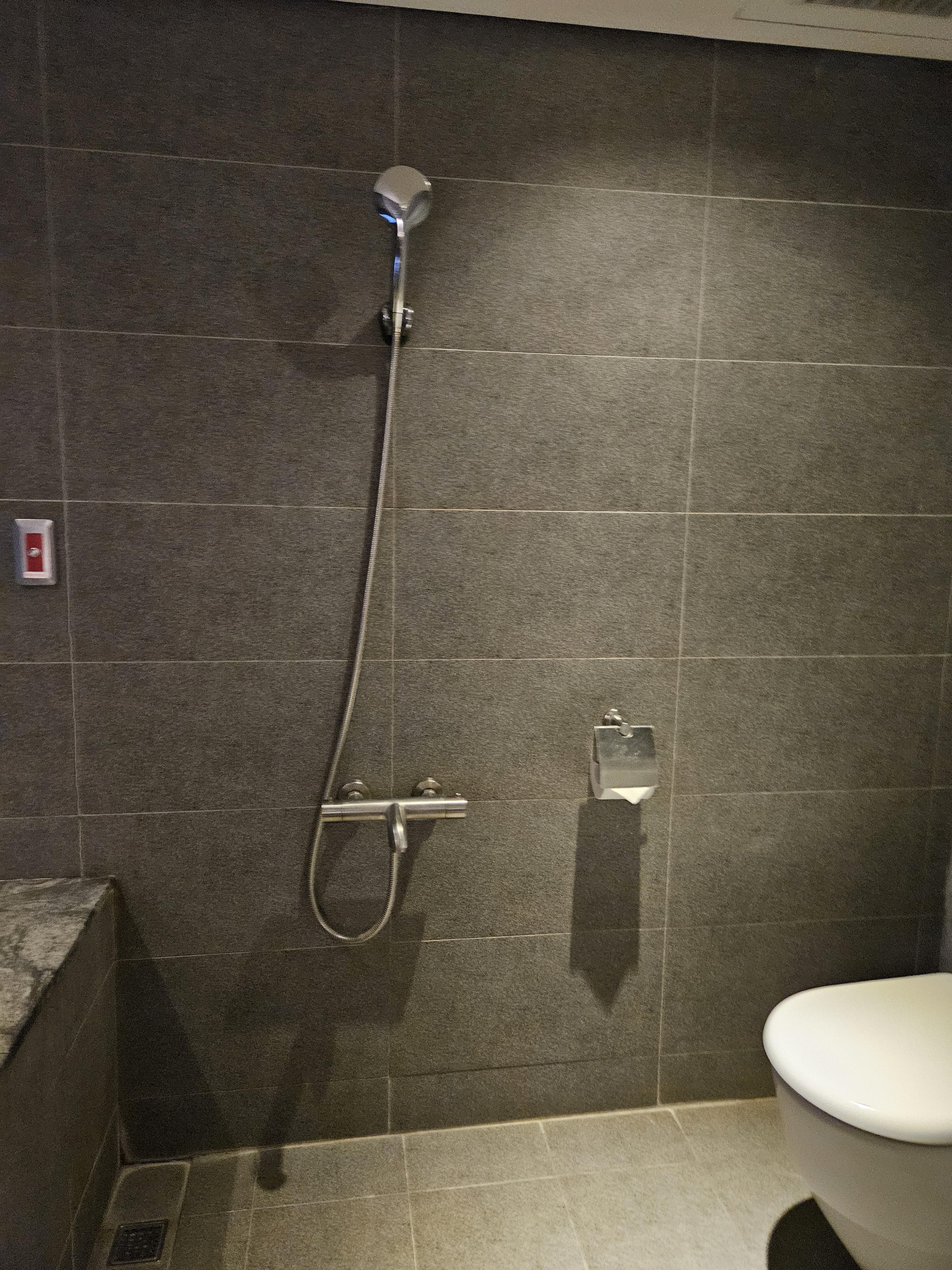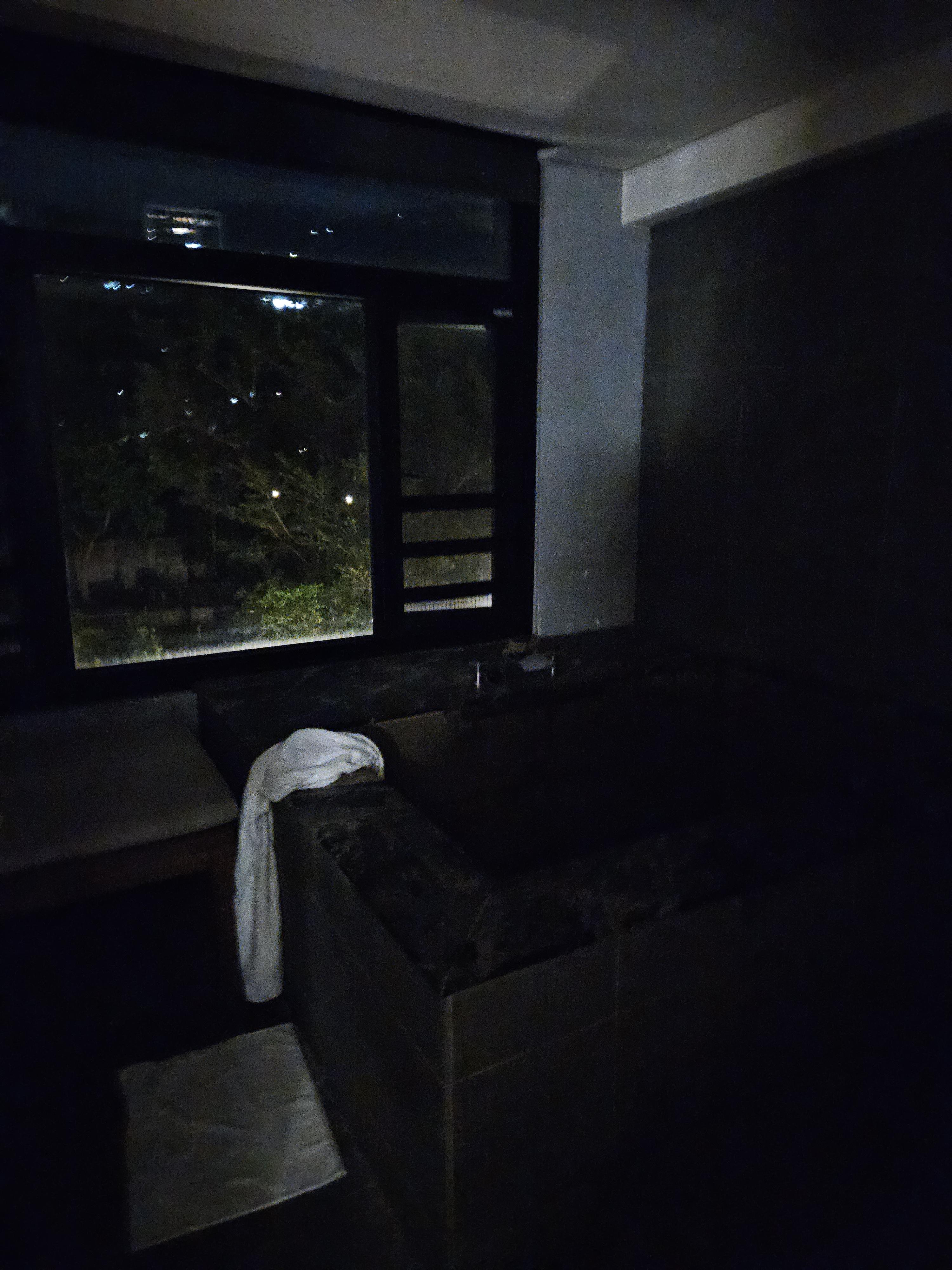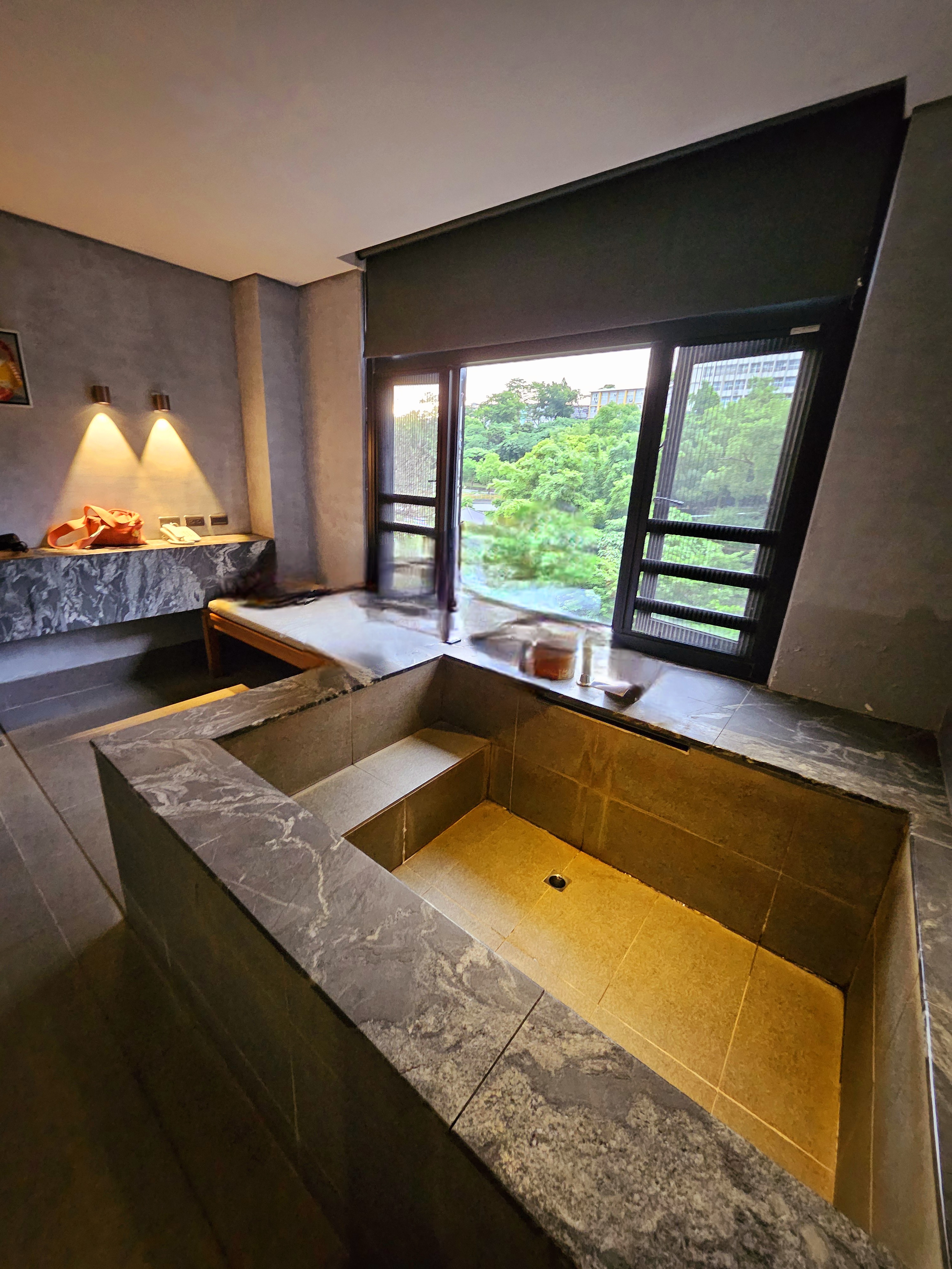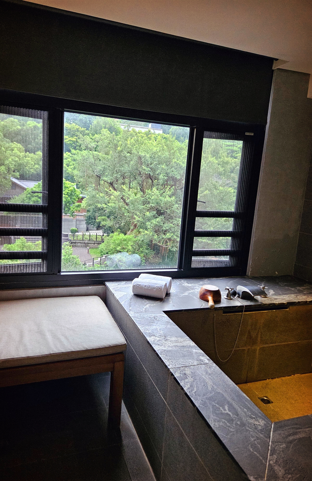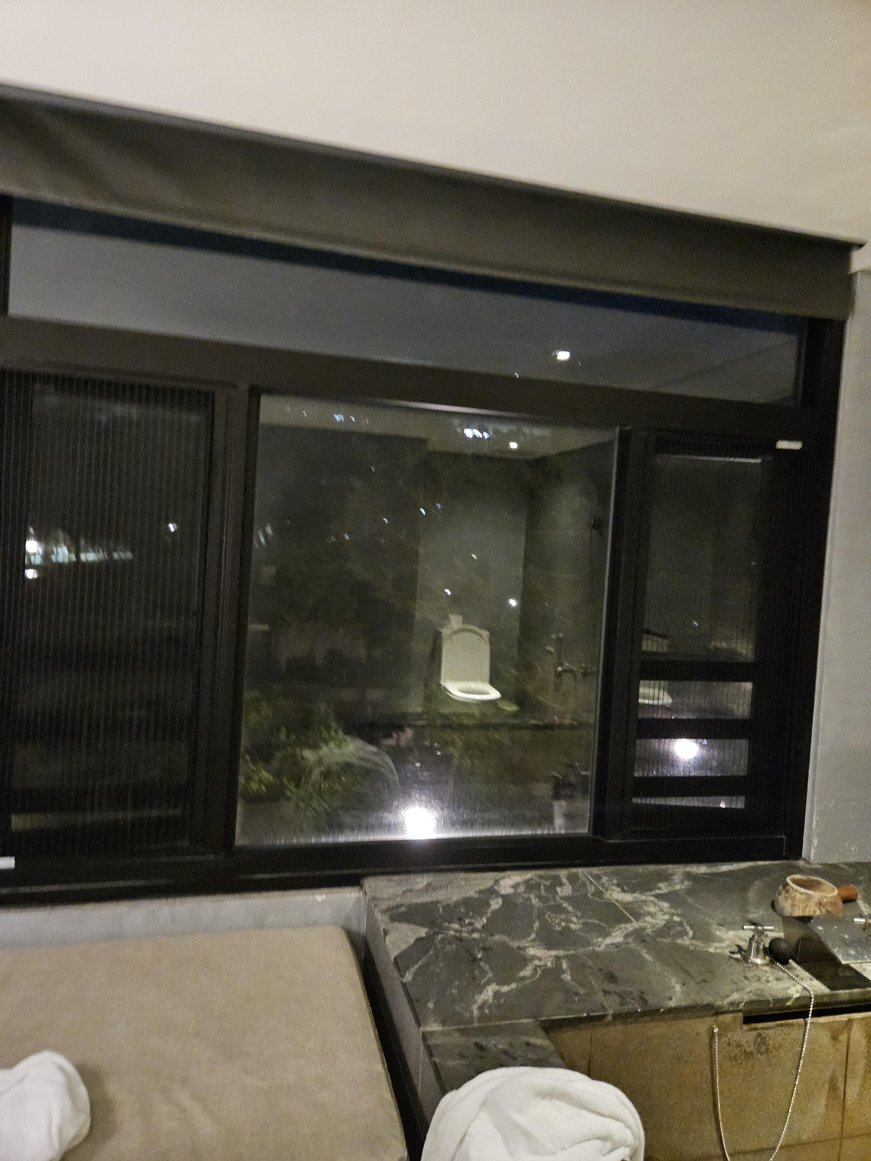 들어가자마자 물부터 받고 샤워하고 반신욕 준비하는데 창문이 큰데 밖에서 안이 보이니 탕에 들어가기 전에 수건으로 가린 후 블라인드 걷고 입수해서 창 밖 풍경과 해 질 녘 노을까지 감상할 수 있었음.