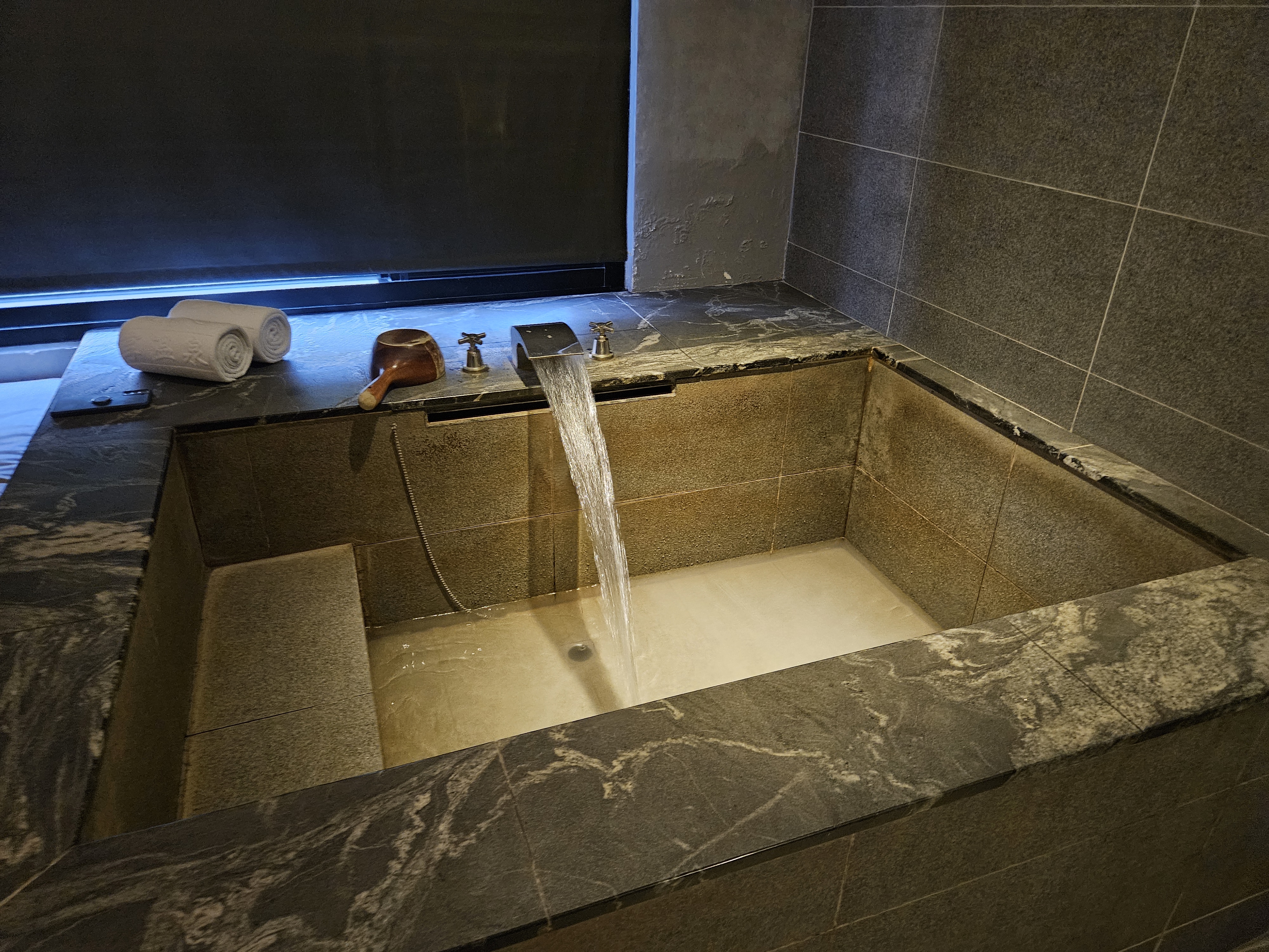 특유의 유황온천 같은 유황냄새나 물에서 미끄덩 거리는 느낌은 없는데 뜨거운 물에 몸 푹 담그고 땀이 송골송골 맺히니 없던 피로도 풀리는 것 같았다.