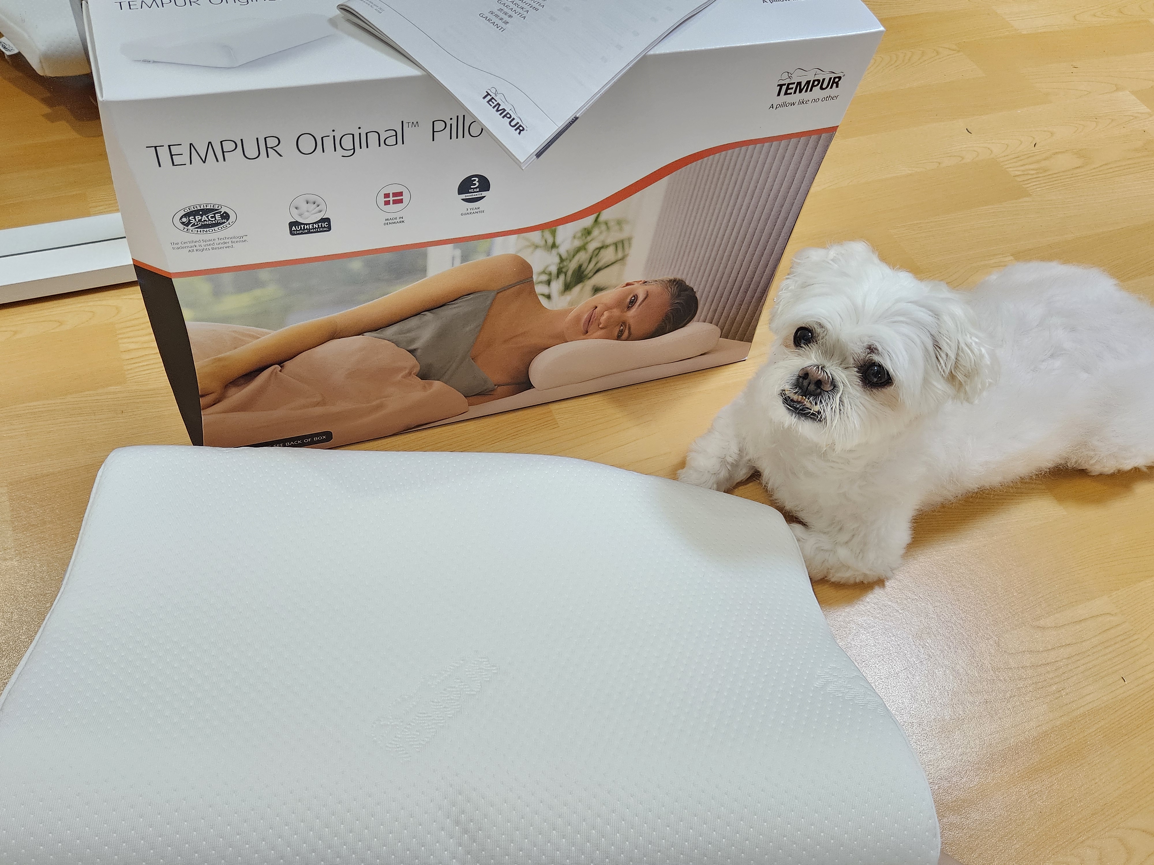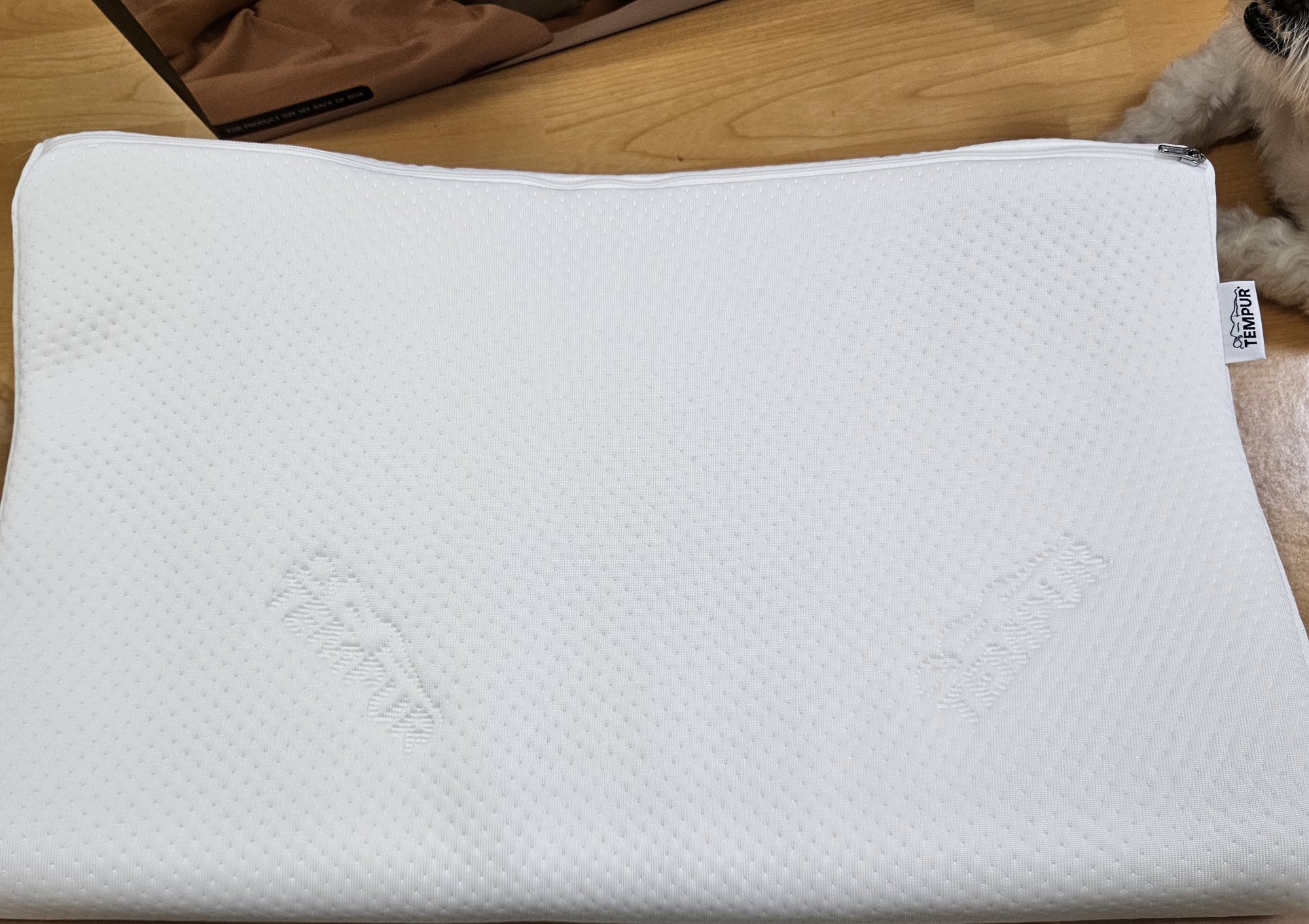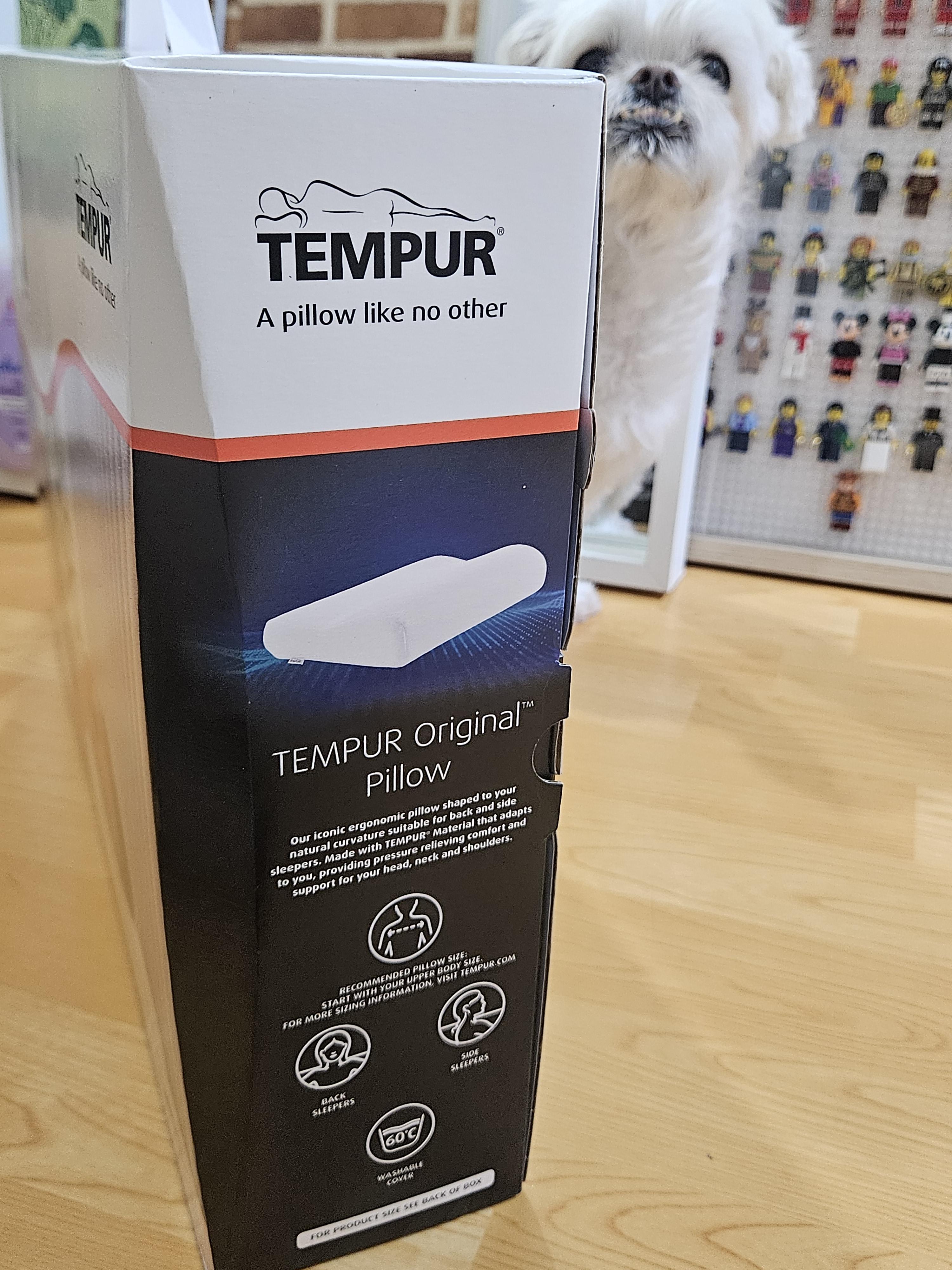 템퍼 전용 박스에 베개 전용 지함에 담겨온 오리지널 필로우. 베개 전용 박스는 손잡이가 있어서 선물용으로도 좋아 보임.