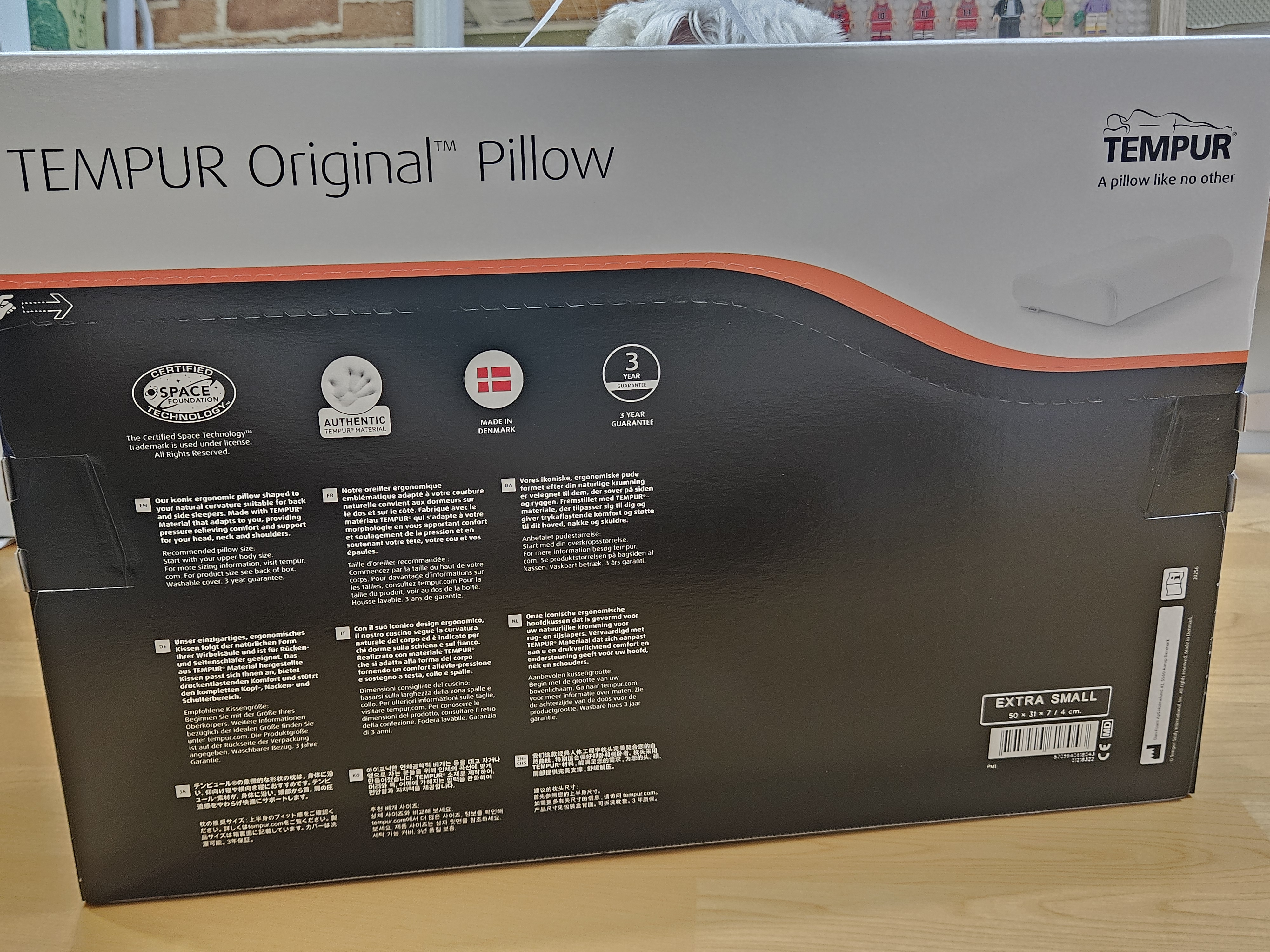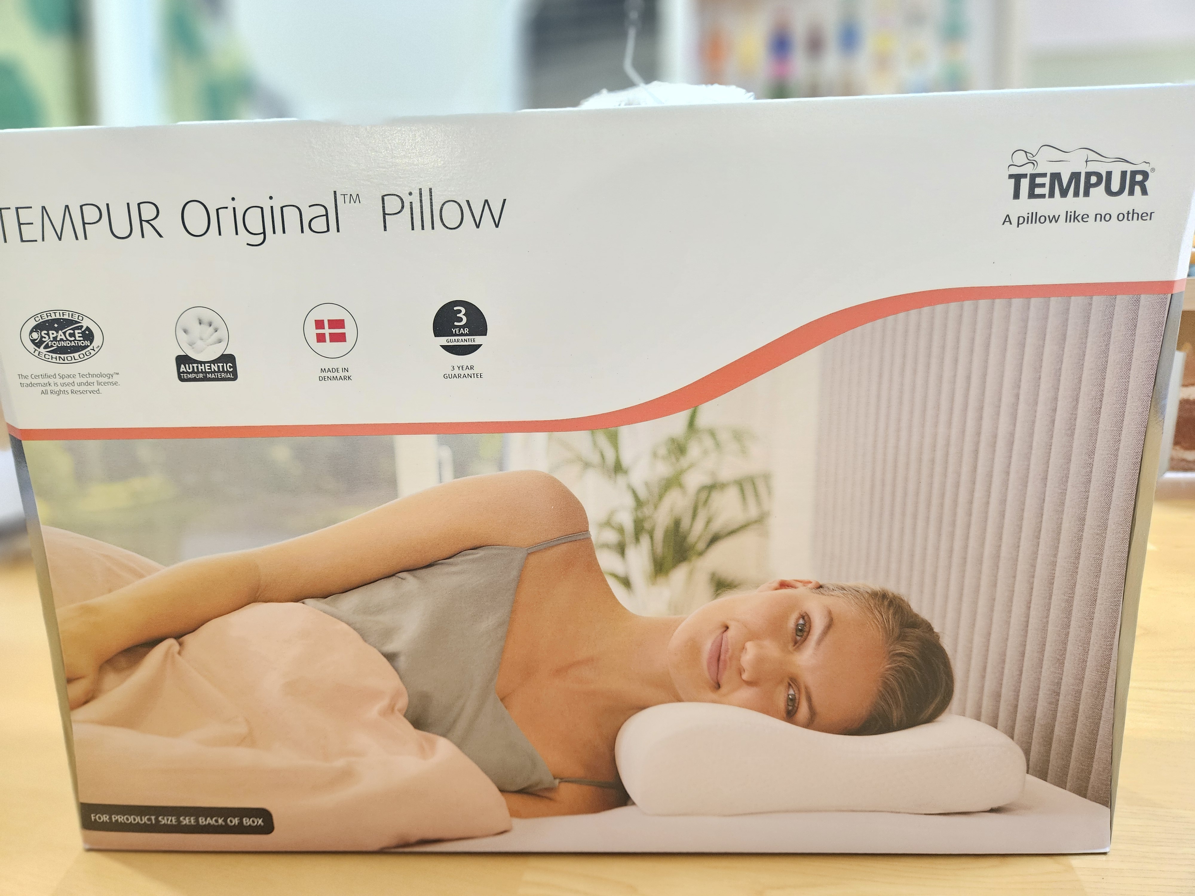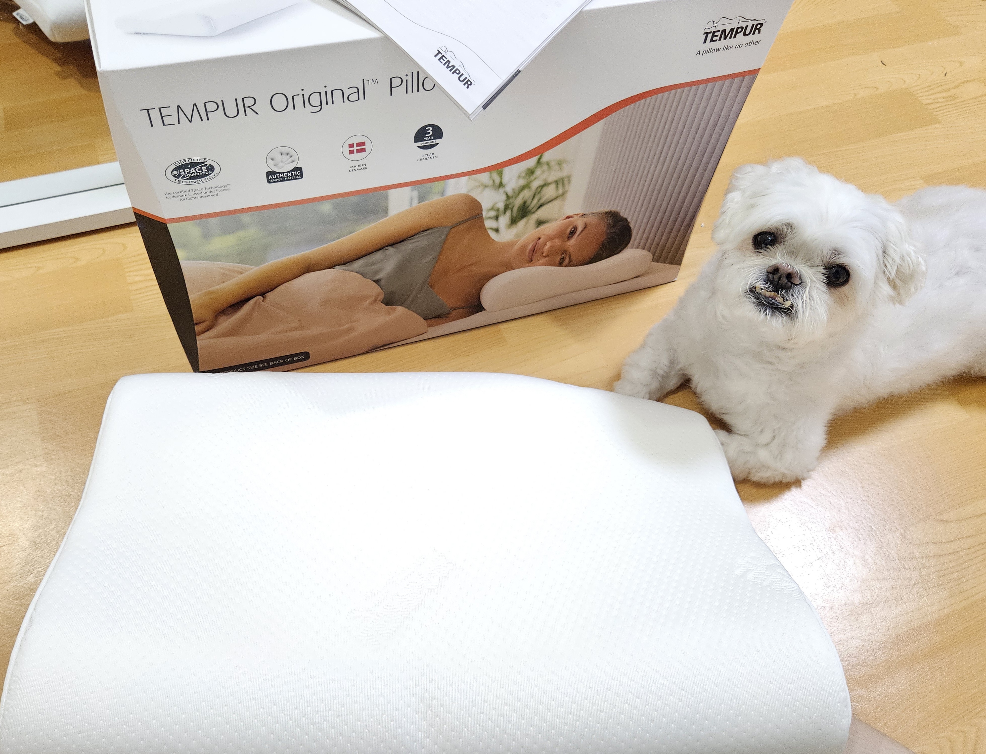 템퍼 전용 박스에 베개 전용 지함에 담겨온 오리지널 필로우. 베개 전용 박스는 손잡이가 있어서 선물용으로도 좋아 보임.