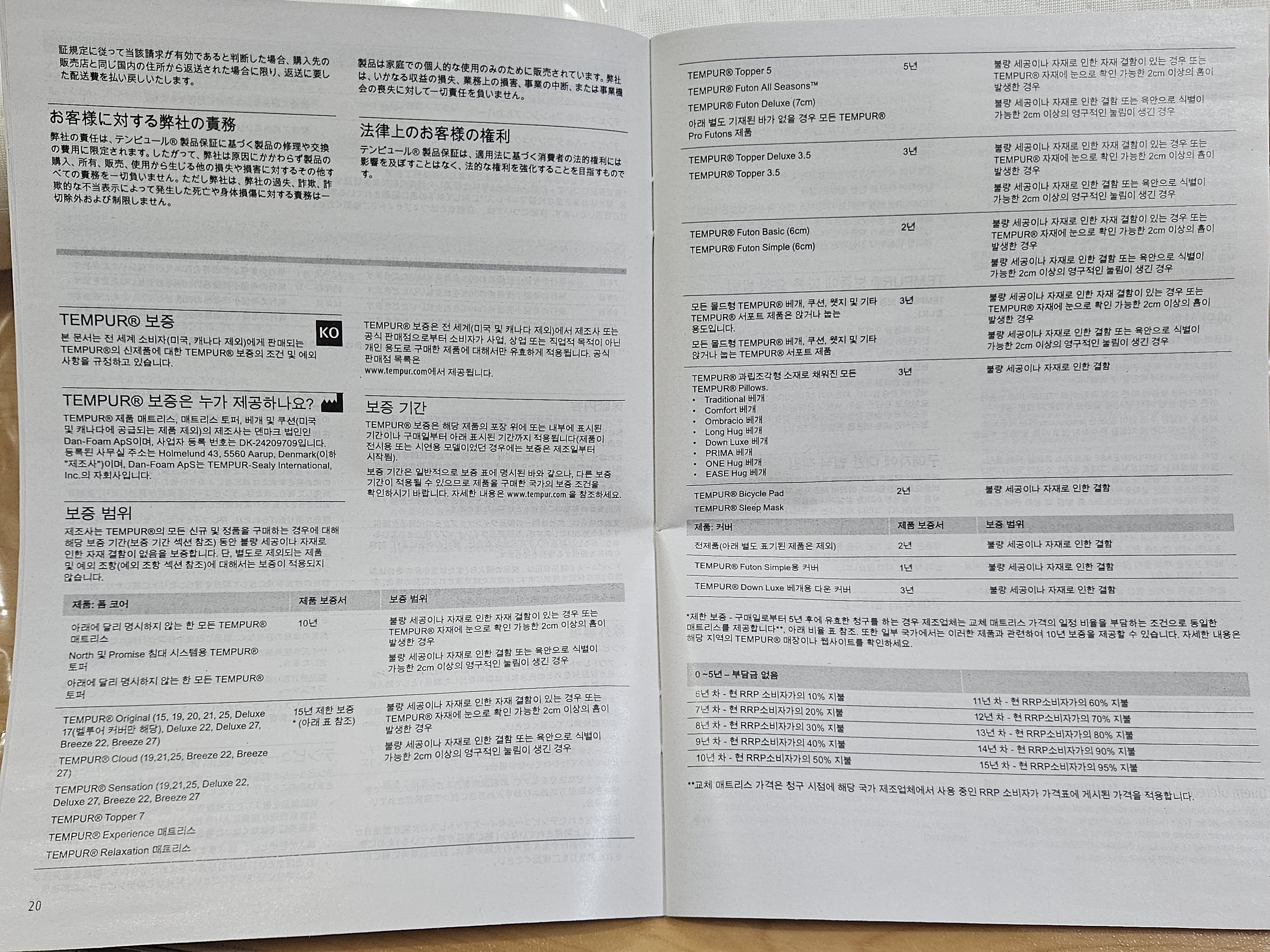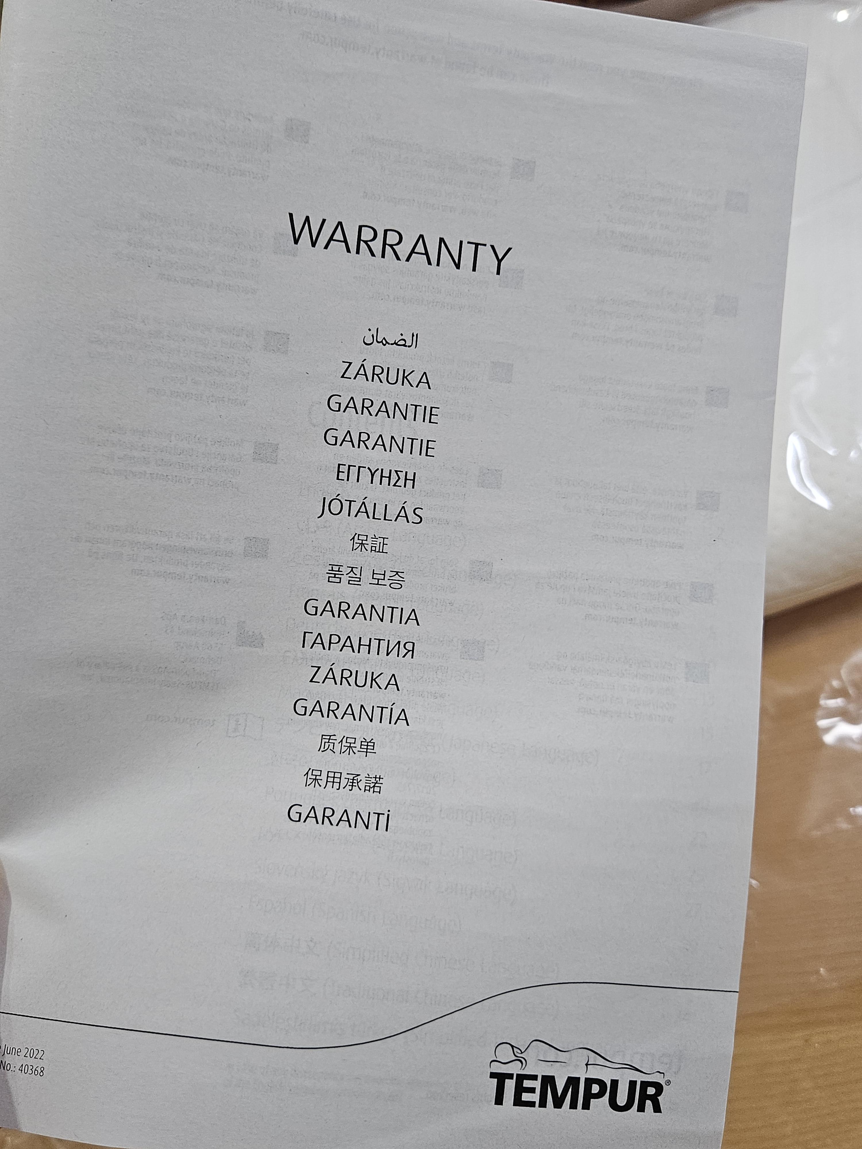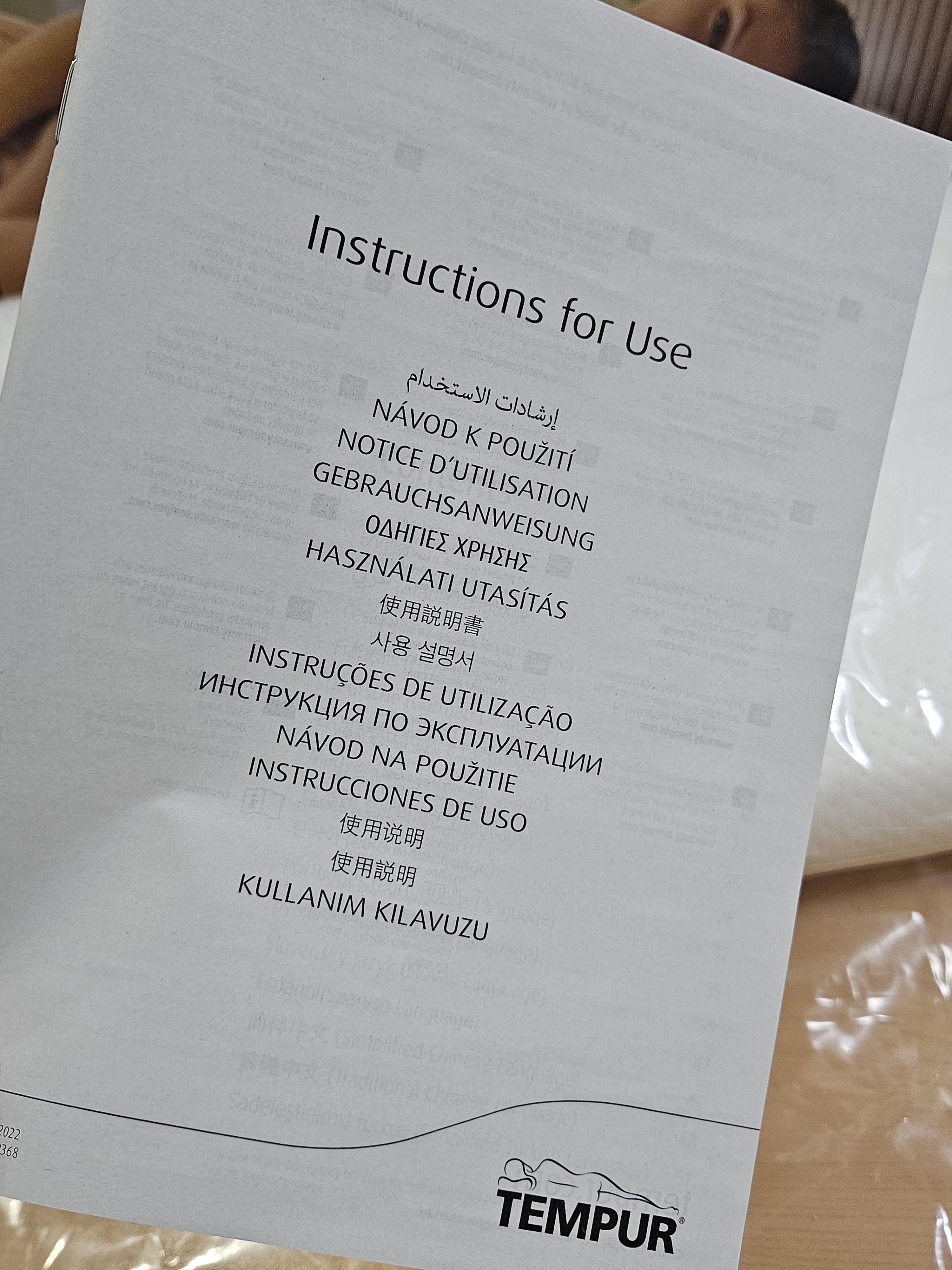 언박싱은 베개 전용 박스 절취선을 찢어 개봉했는데 비닐 커버로 쌓여있고 보증서 및 설명서가 담겨있었다.