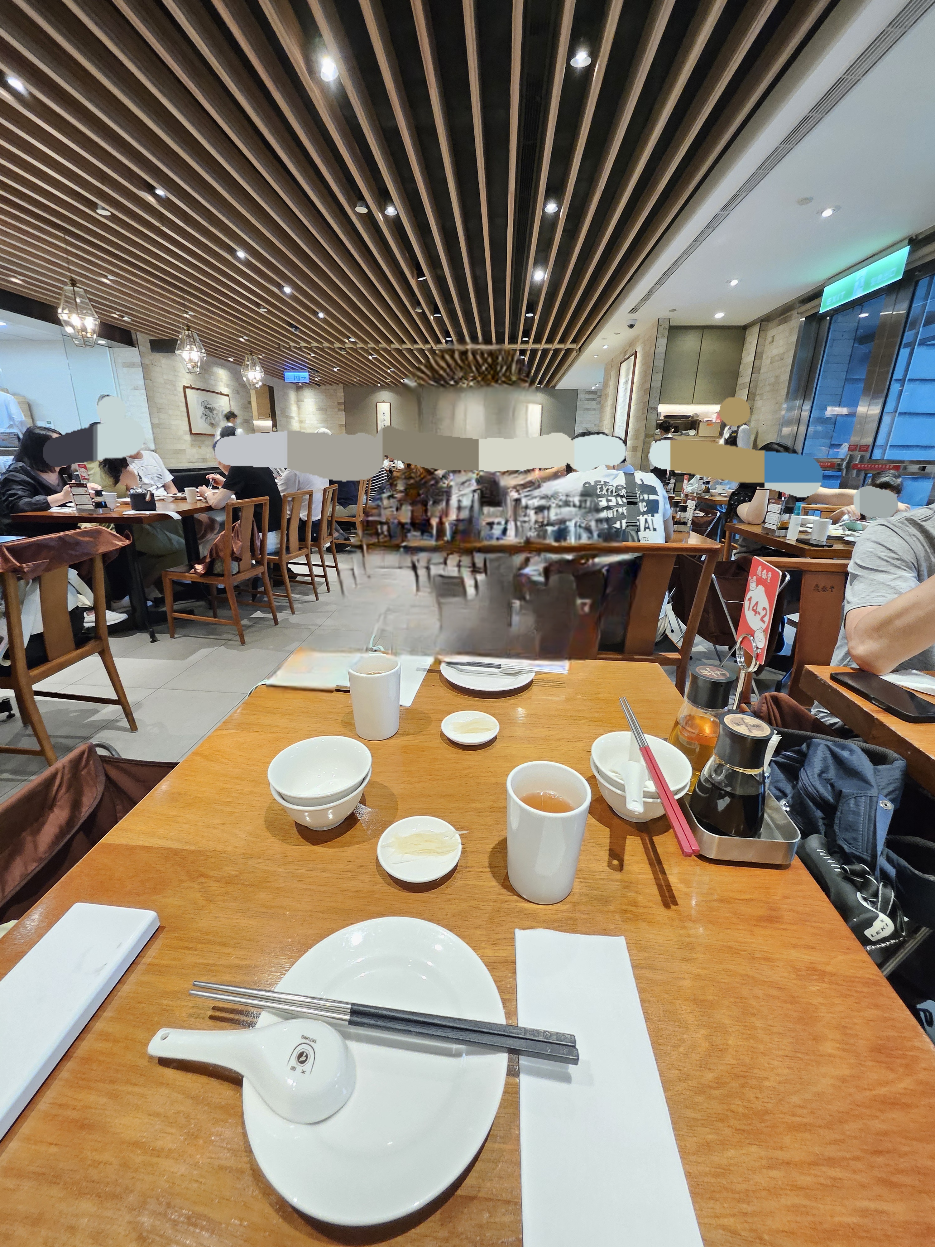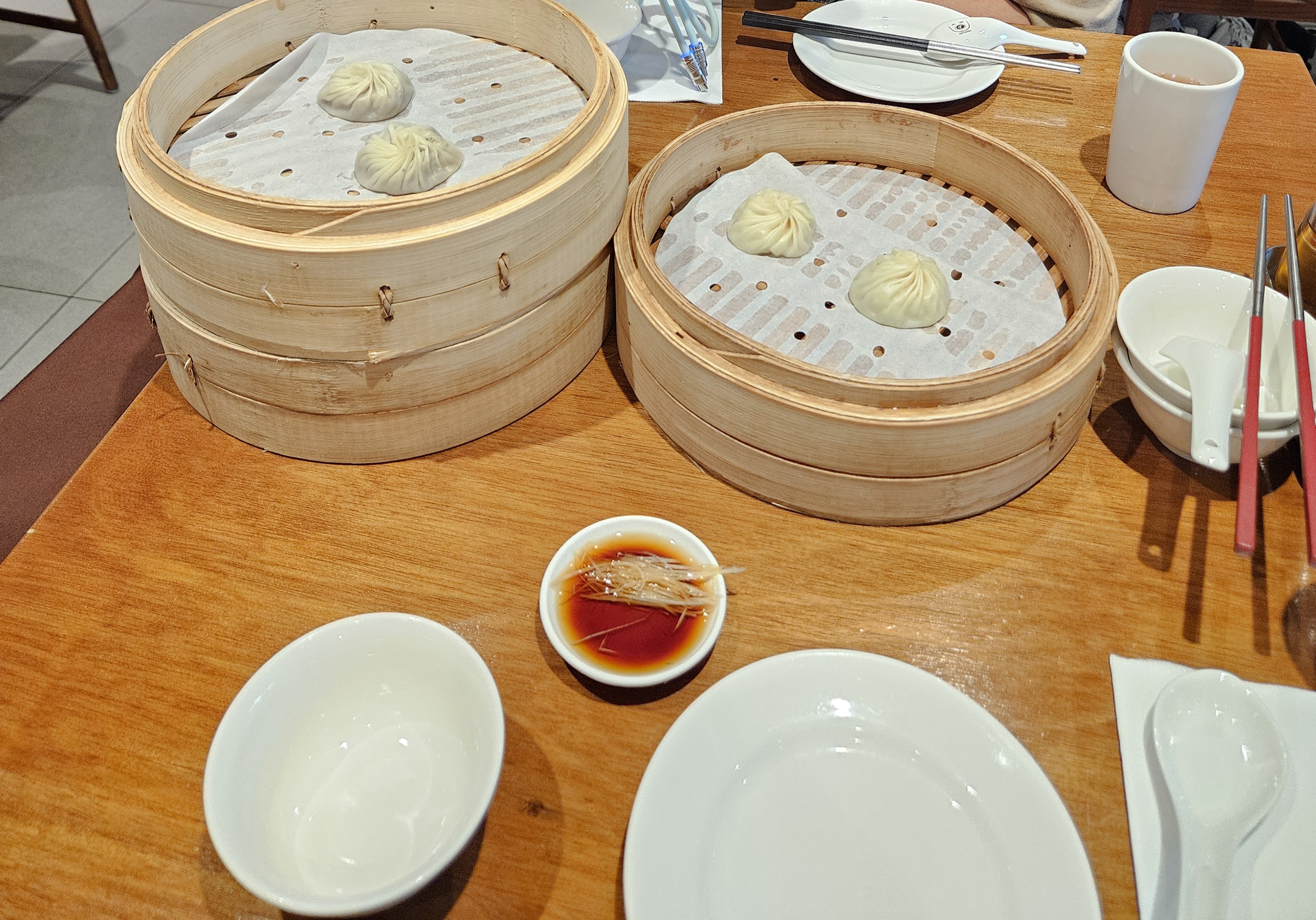테이블에는 테이블 번호, 간장과 식초가 비치되어 있어 샤오롱바오 먹을 때 제공하는 생강채와 함께 식간장을 만들어 더욱 맛있게 즐길 수 있다.