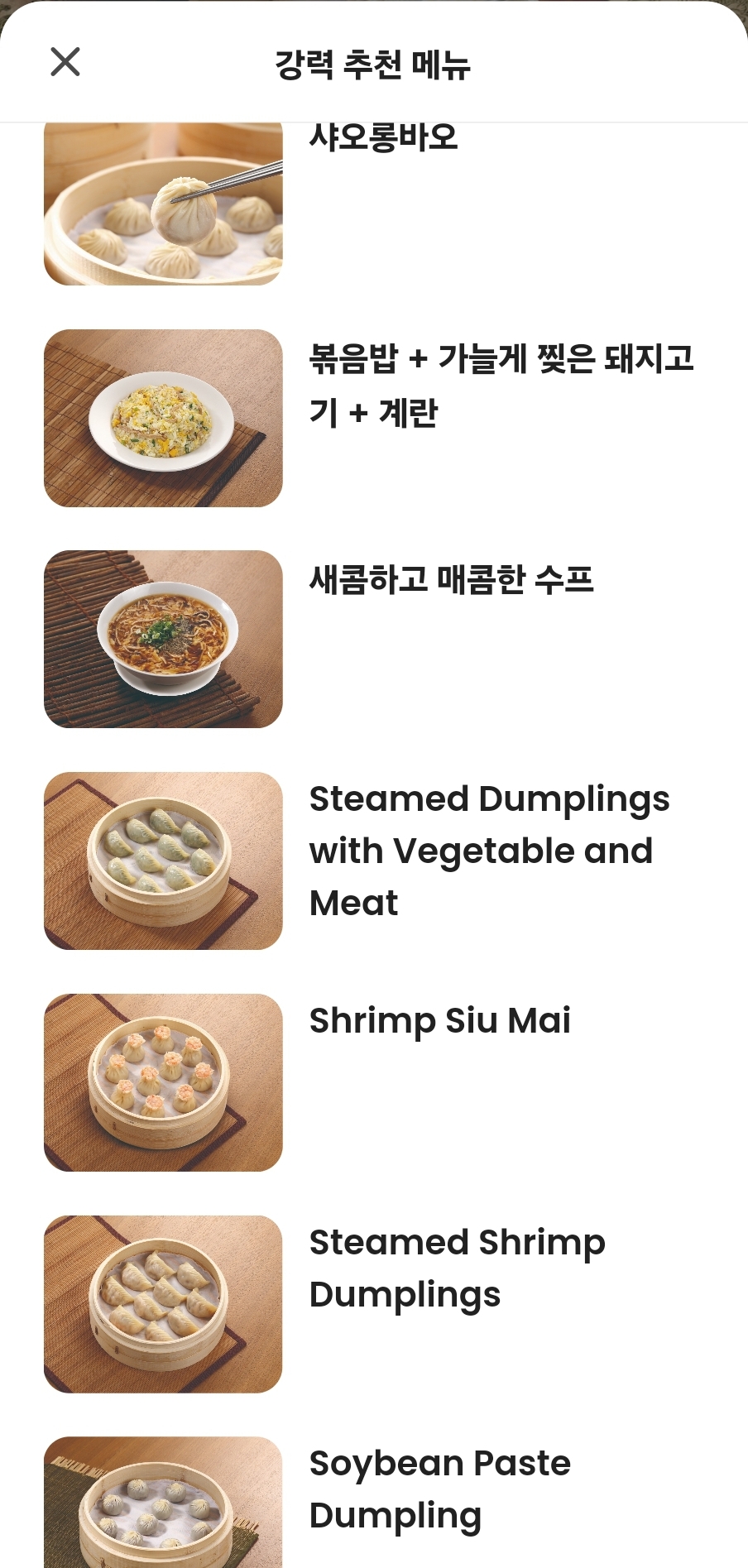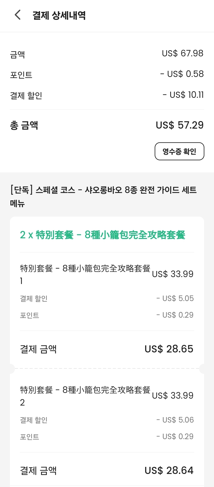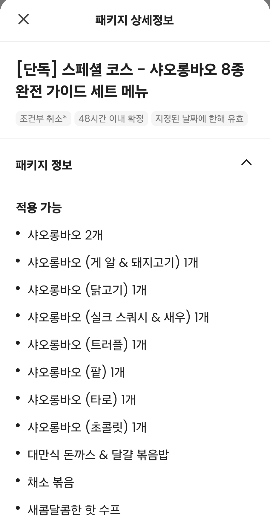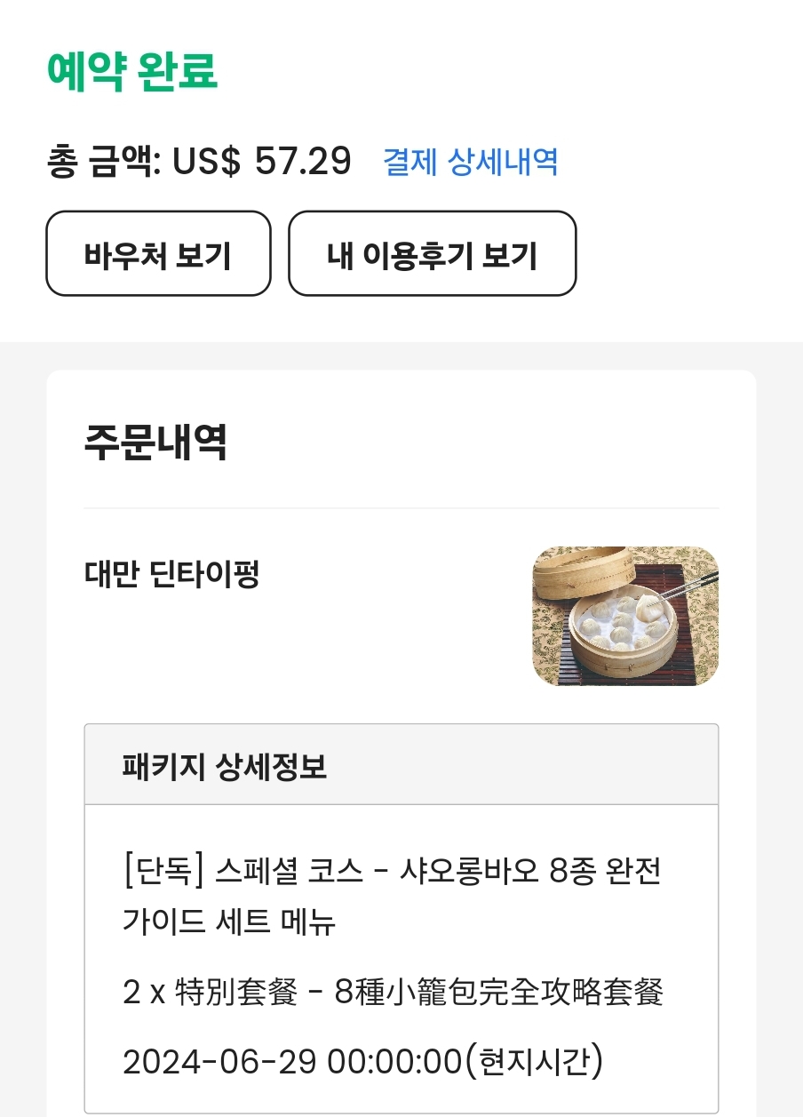나는 클룩 단독이라는 스페셜 코스인 샤오롱바오 8종에 돼지갈비 + 계란 볶음밥, 공심채볶음, 산라탕까지 맛볼 수 있는 구성을 선택했다.
