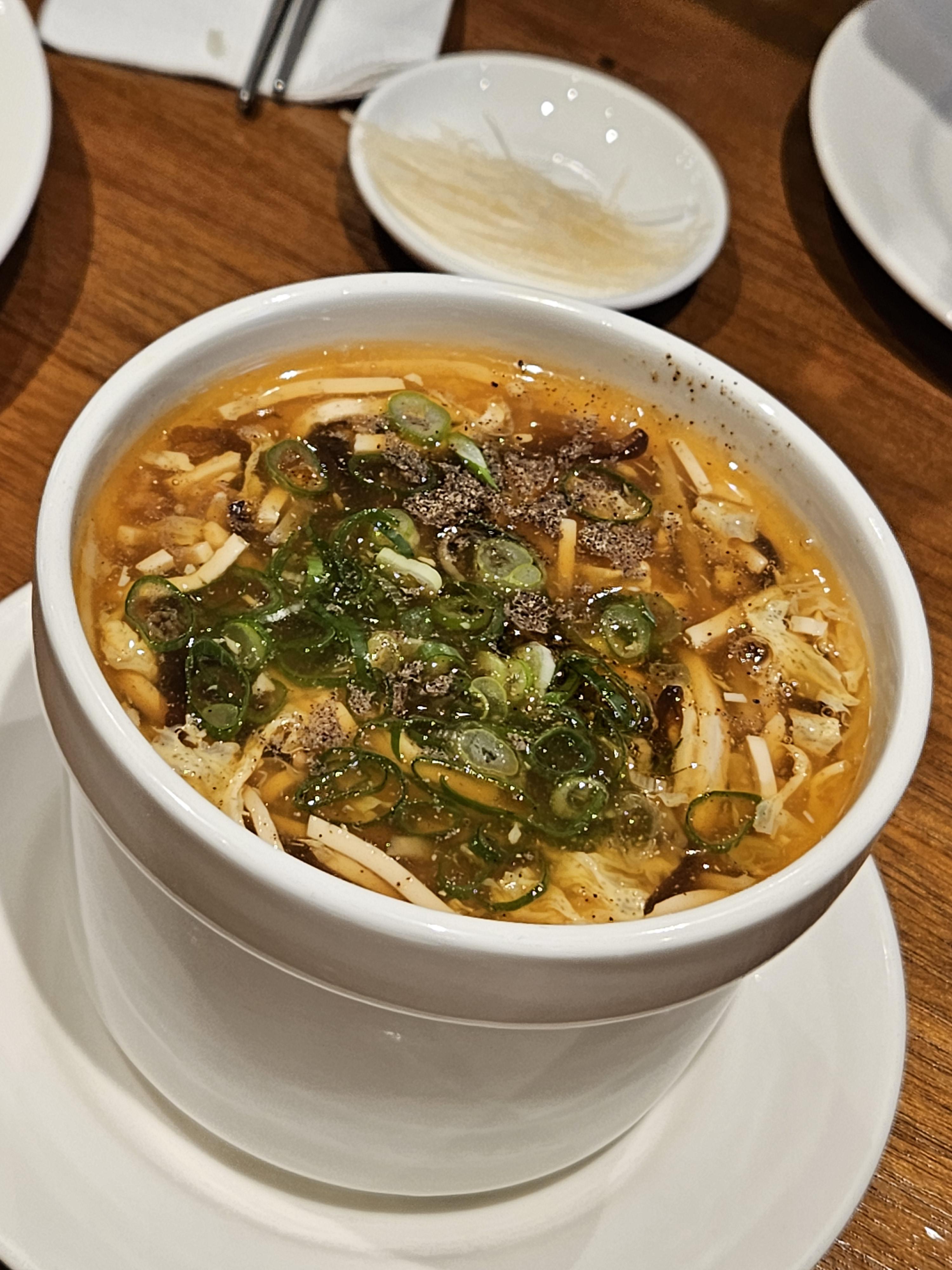 산라탕은 맵고 시큼한 면인데 전분을 넣어 걸쭉한 국물에 두부면? 계란, 표고버섯, 대파 등을 넣어 만들어서 술술 넘어가는 맛.