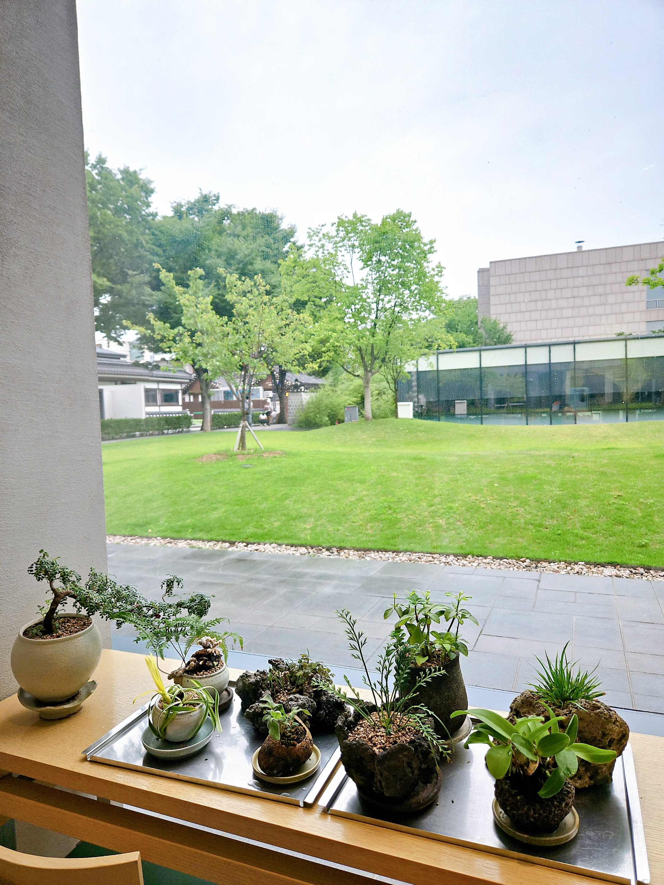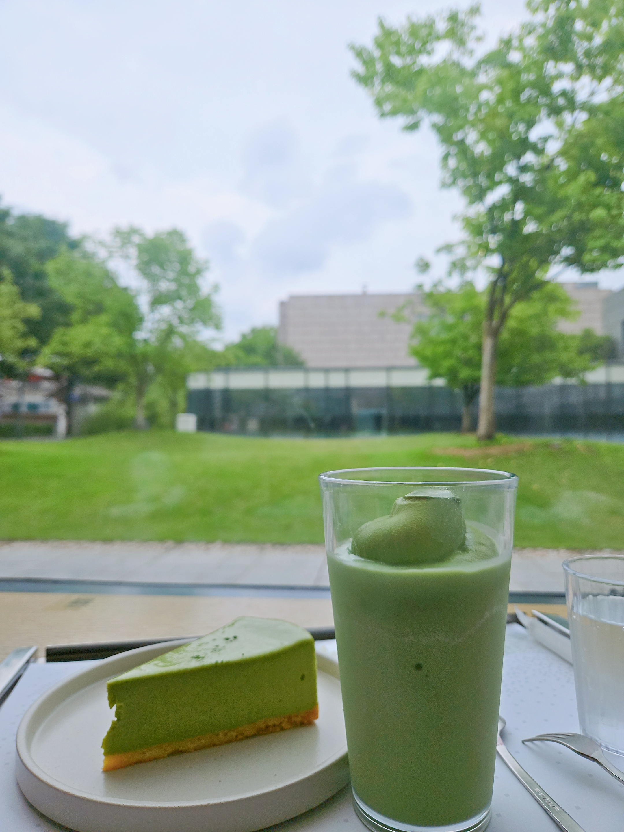 미술관 건물이라 모던하고 통창으로 보이는 초록 잔디뷰가 좋다. 비 내렸다 개고 반복하는 거 보는 것도 힐링.