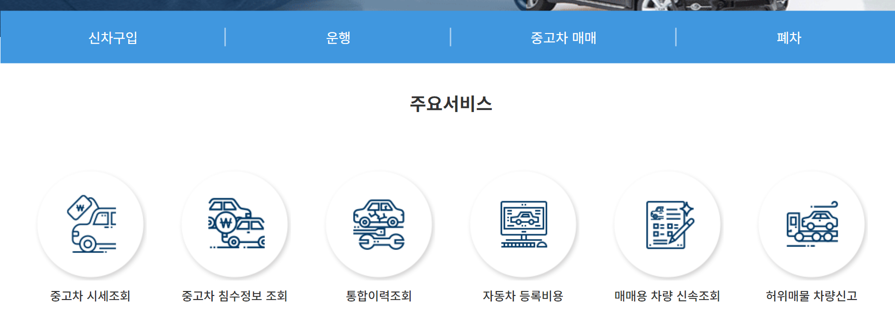 자동차민원 대국민포털 사이트에서는 하기처럼 자동차 관련 다양한 업무가 가능한데