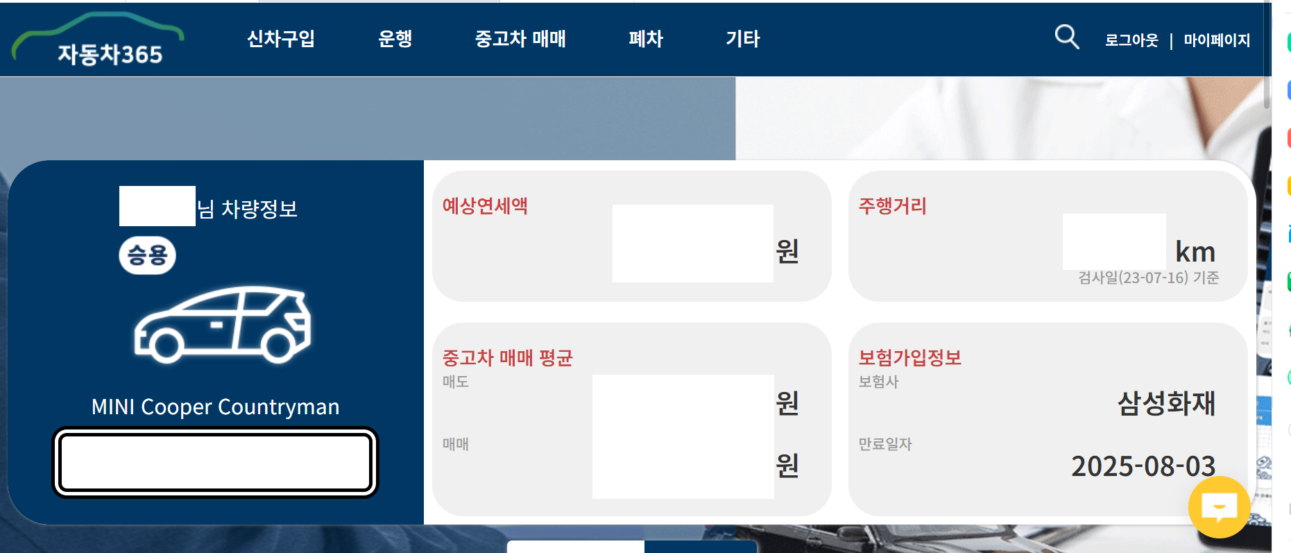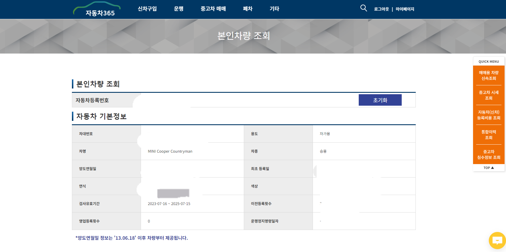 금일 차량 잔금 치르고 탁송받았는데 사업자등록증 날짜가 이상하게 인쇄되어 아빠가 딜러한테 문의해보라고 하셔서 문의했는데 전산상 등록은 오늘날짜로 잘 되었기 때문에 문제없다고 했지만 괜히 문제 생기는게 아닌가 싶어서 확인차 자동차 365 사이트를 방문했다.