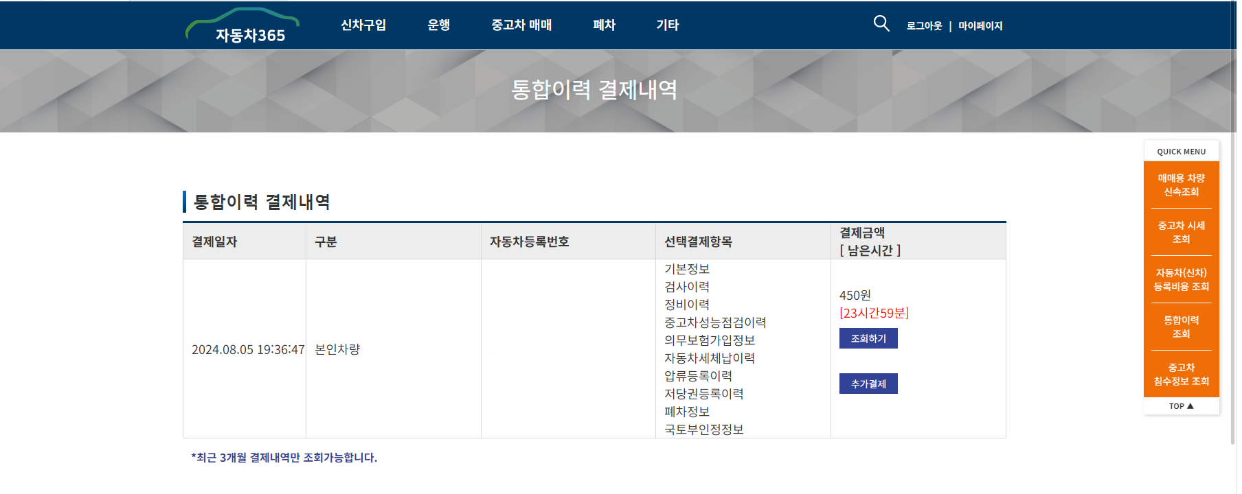 본인차량 정보의 통합이력 조회부터 타인차량의 이력 조회가 가능한데 공동인증서(구 공인인증서)가 필요했고 무료 발급이 아닌 수수료가 발생하더라.