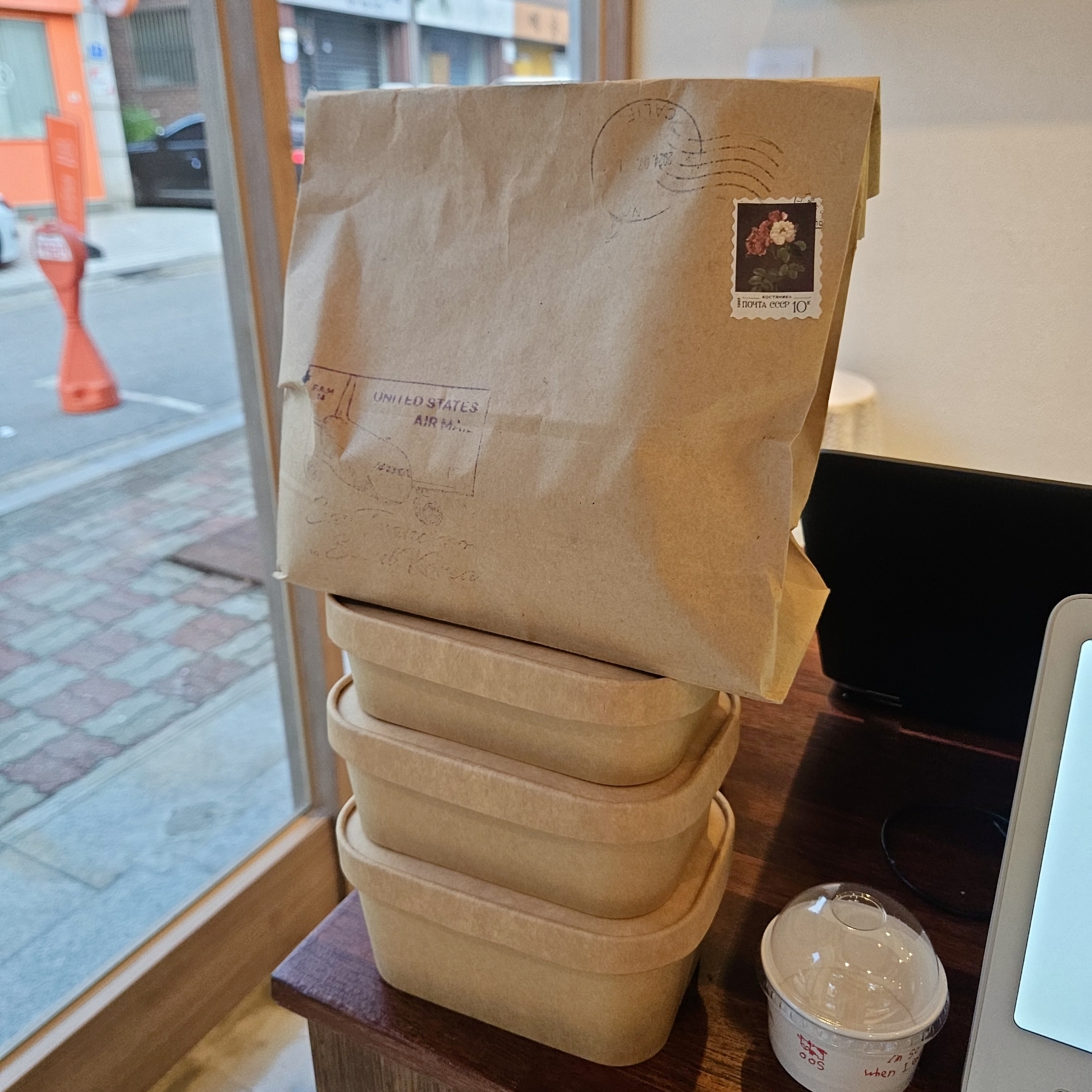 큰 기대 없이 갔는데 심플한 매장 분위기가 마음에 들었고 2인석 테이블 2개에 냉장고 앞 벤치를 두어 좌석이 많지 않지만 테이크 아웃 only 아니고 매장에서 먹을 수 있어 좋더라.
