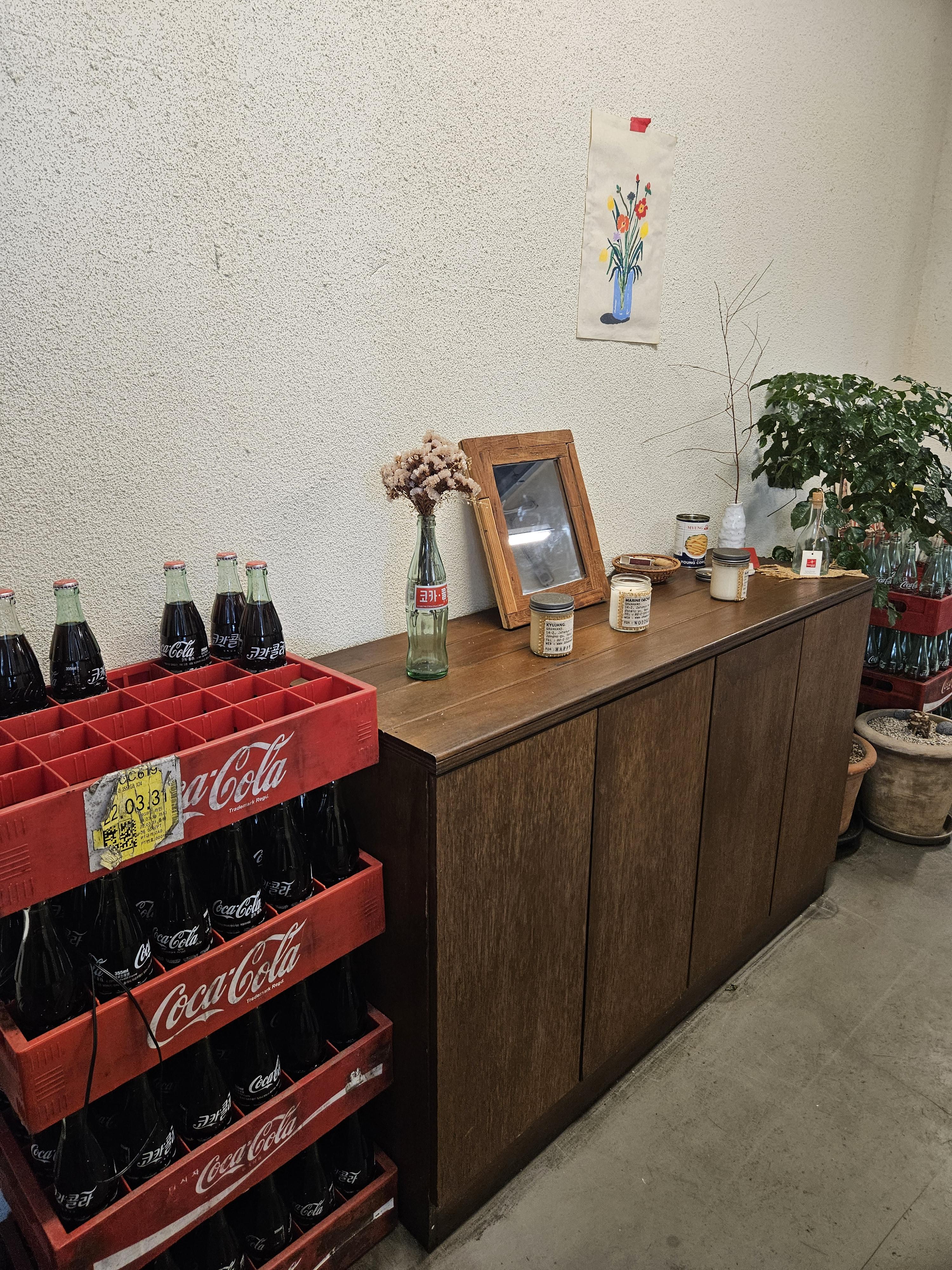 2인석, 4인석 구분 없이 편한 곳으로 자리하라고 해서 구석에 1인 테이블 있는 쪽을 눈여겨봤는데 이건 인테리어 소품임 ㅋㅋ 그 앞에 4인석 앉아도 된다고 하시길래 앉아서 메뉴 살폈다.