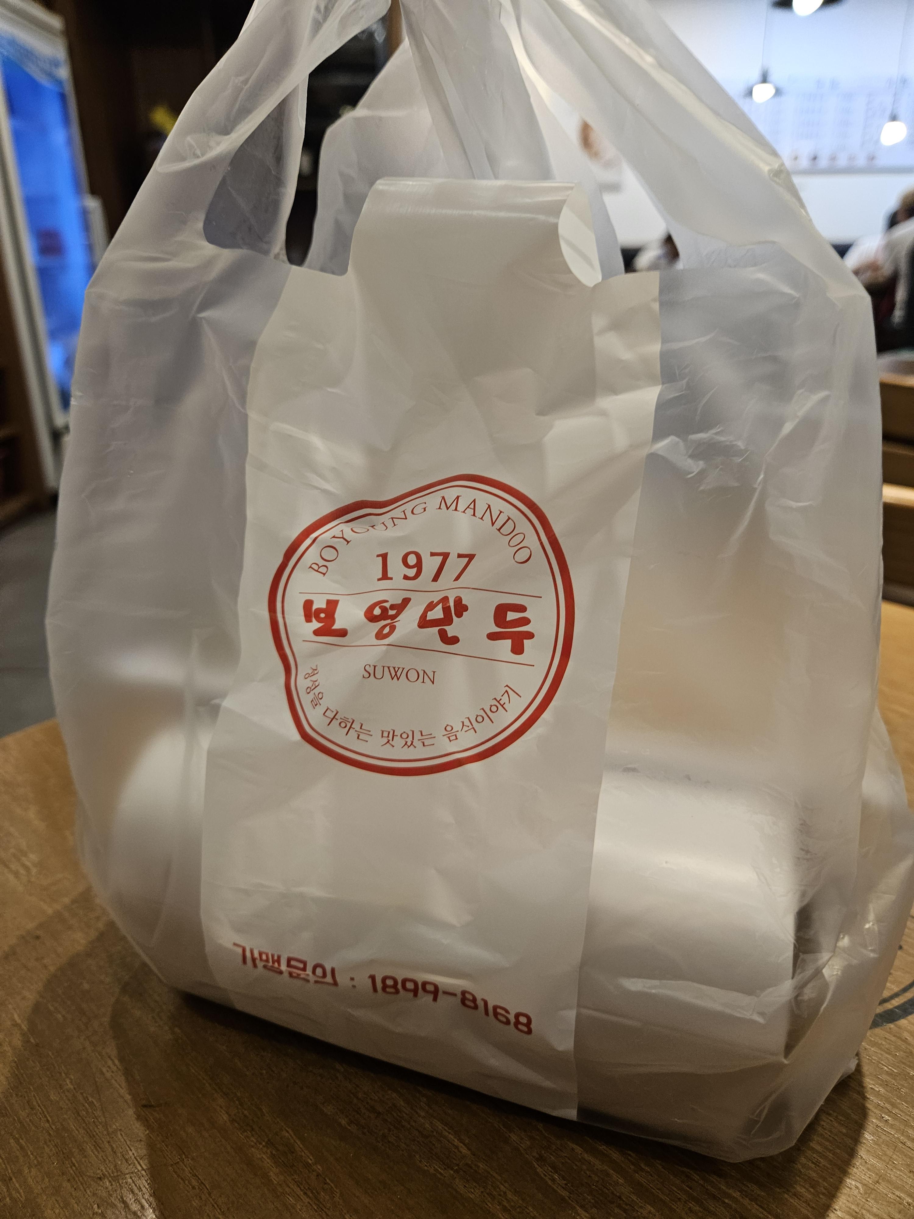 아빠가 동백에 있다고 하셔서 태우러 오신다고 하니 아빠 좋아하는 만두를 또우화 근처 강남대 사거리에 있는 보영만두 1977에서 포장 주문했다.