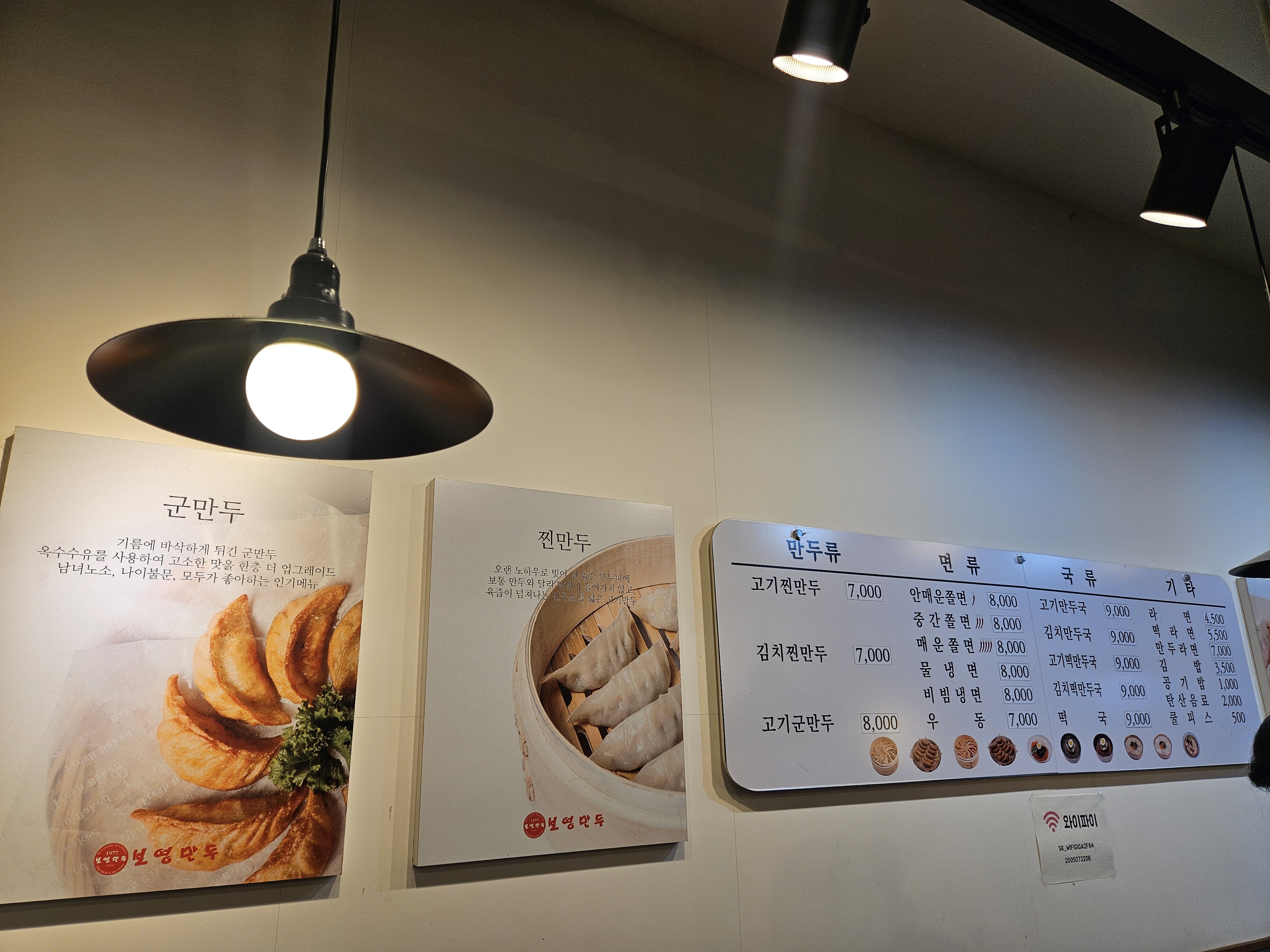 쫄면은 패스하고 만두 종류 보니 고기랑 김치 찐만두는 각 7천 원씩, 군만두는 고기 한 종류밖에 없고 8천 원이었음.