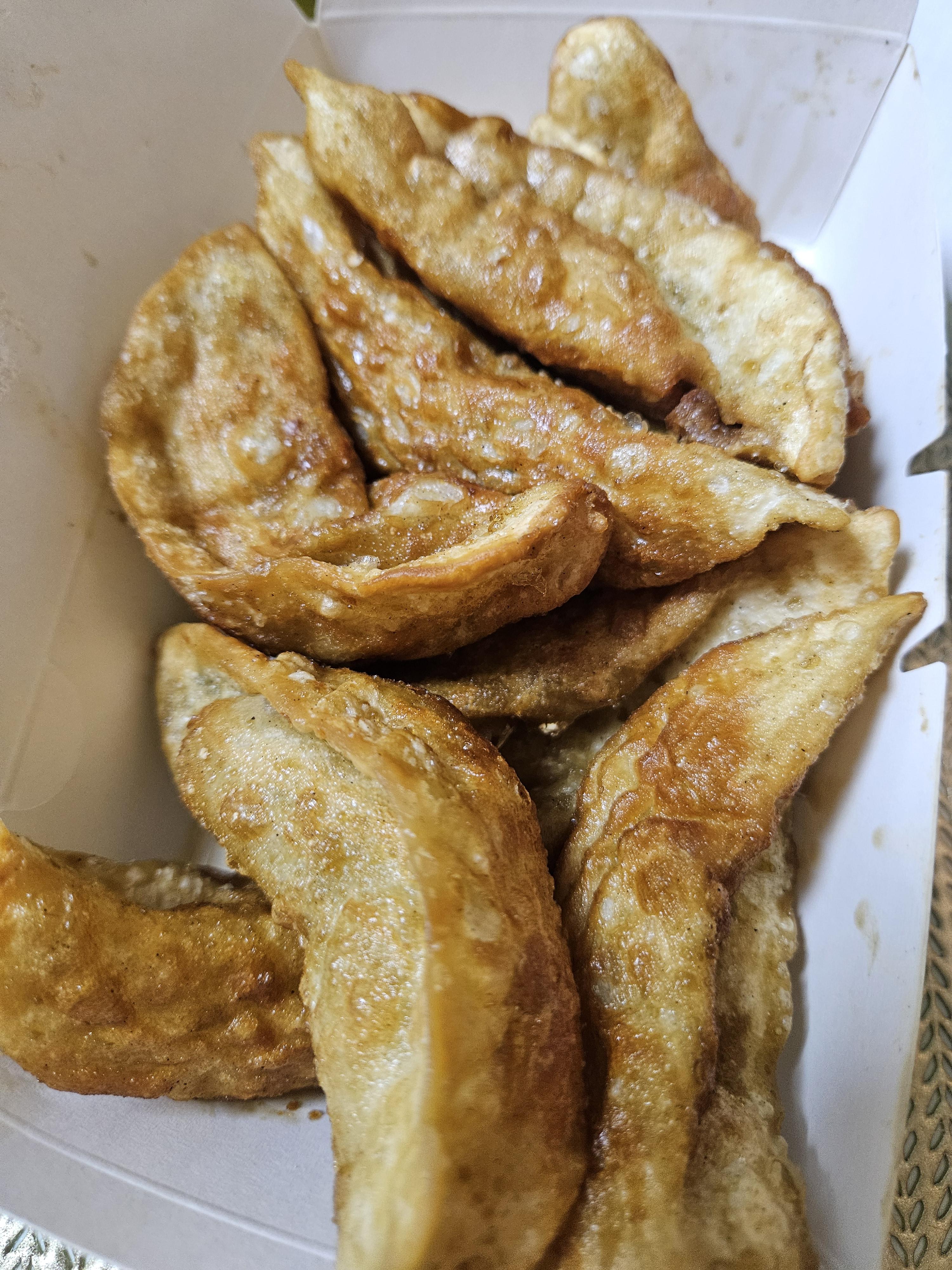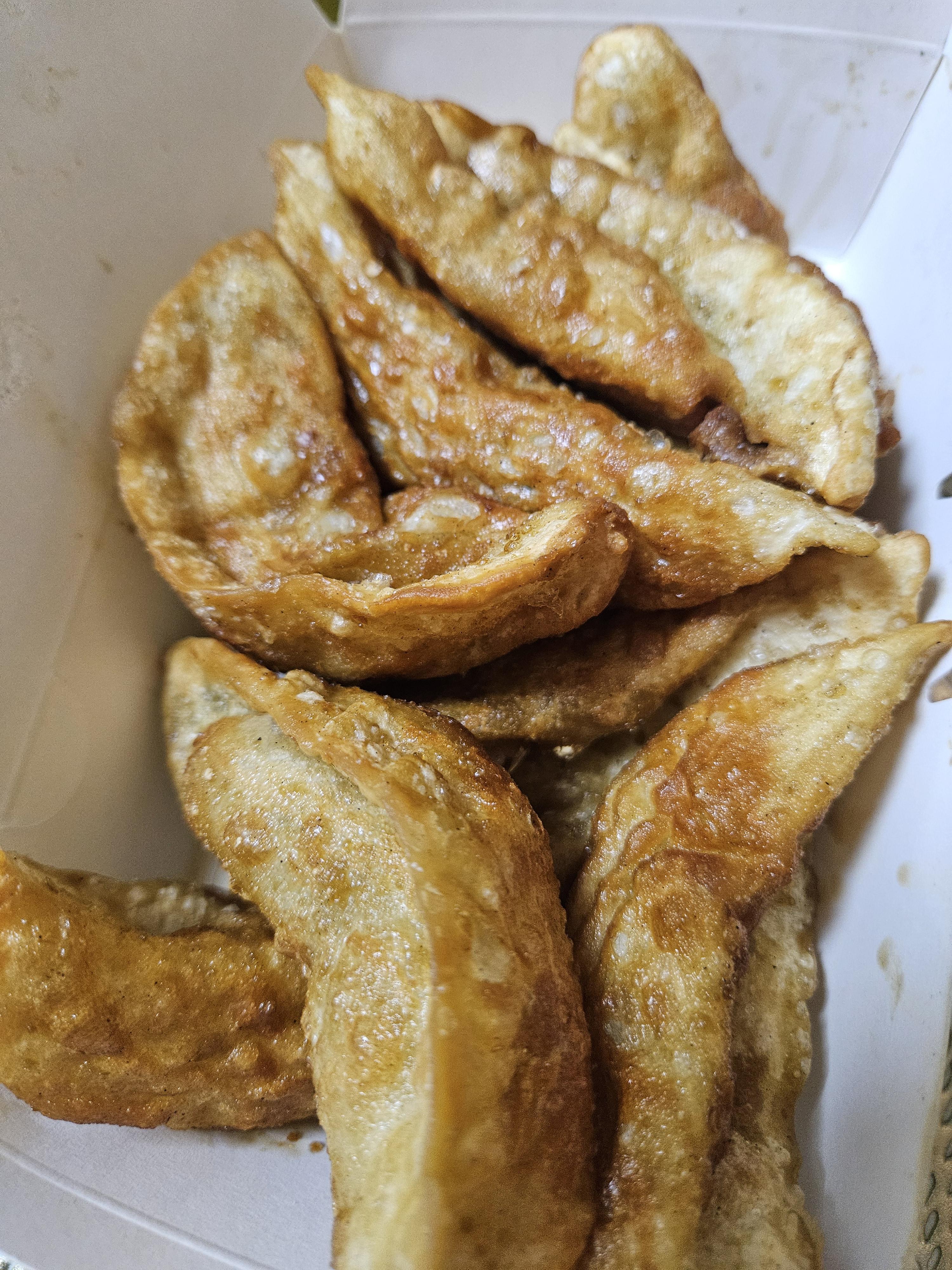 집에 와서 엄마가 하나 드실 때 단면 보여달라고 했는데 피가 얇고 속이 꽉 차있음~ 역시 튀긴 지 얼마 안 돼서 맛이 없을 리가 ㅋㅋ 만두가 열개 정도 들어있었던 거 같은데 씻고 나오니 아빠가 다 드신모양이다.