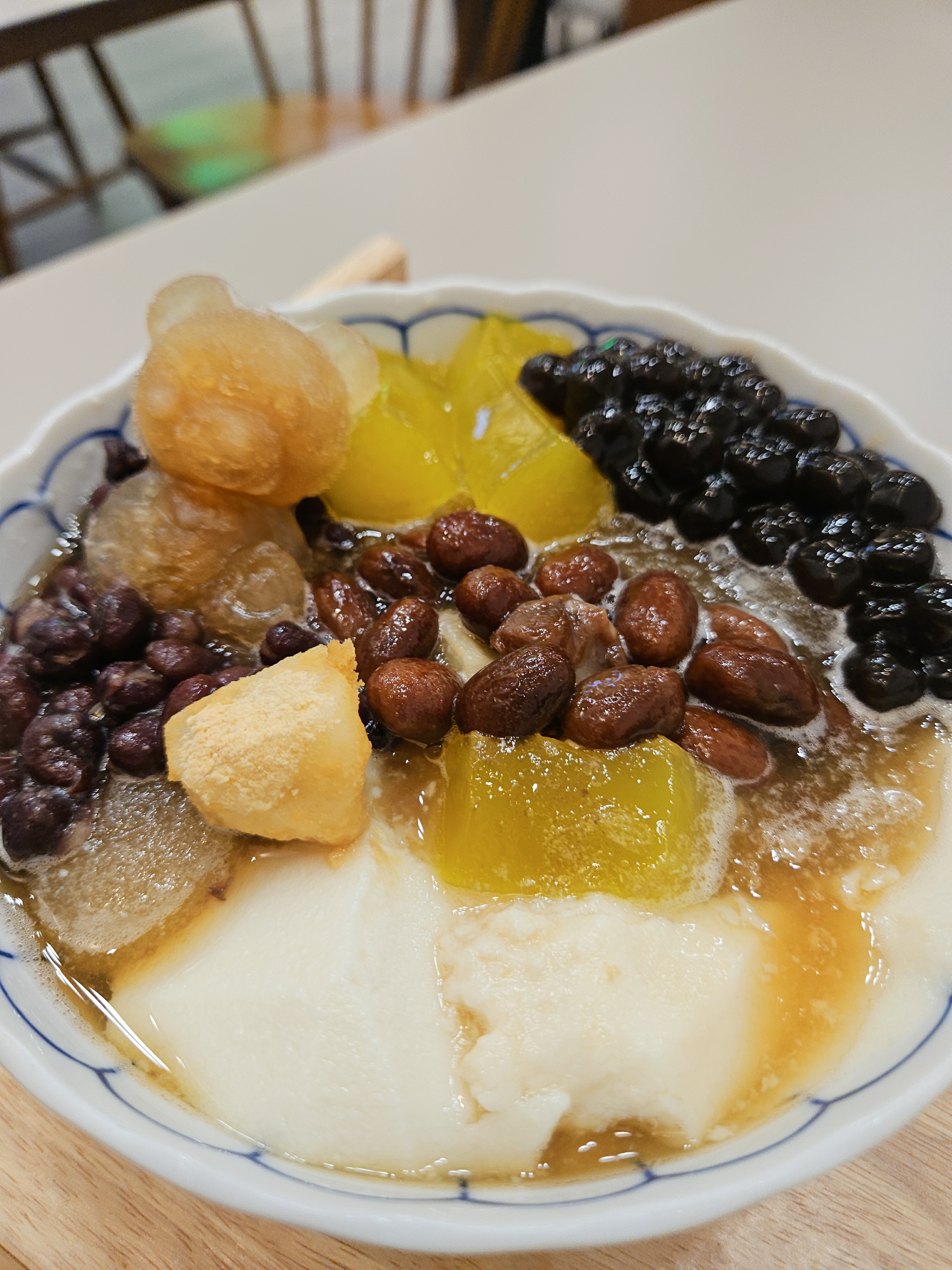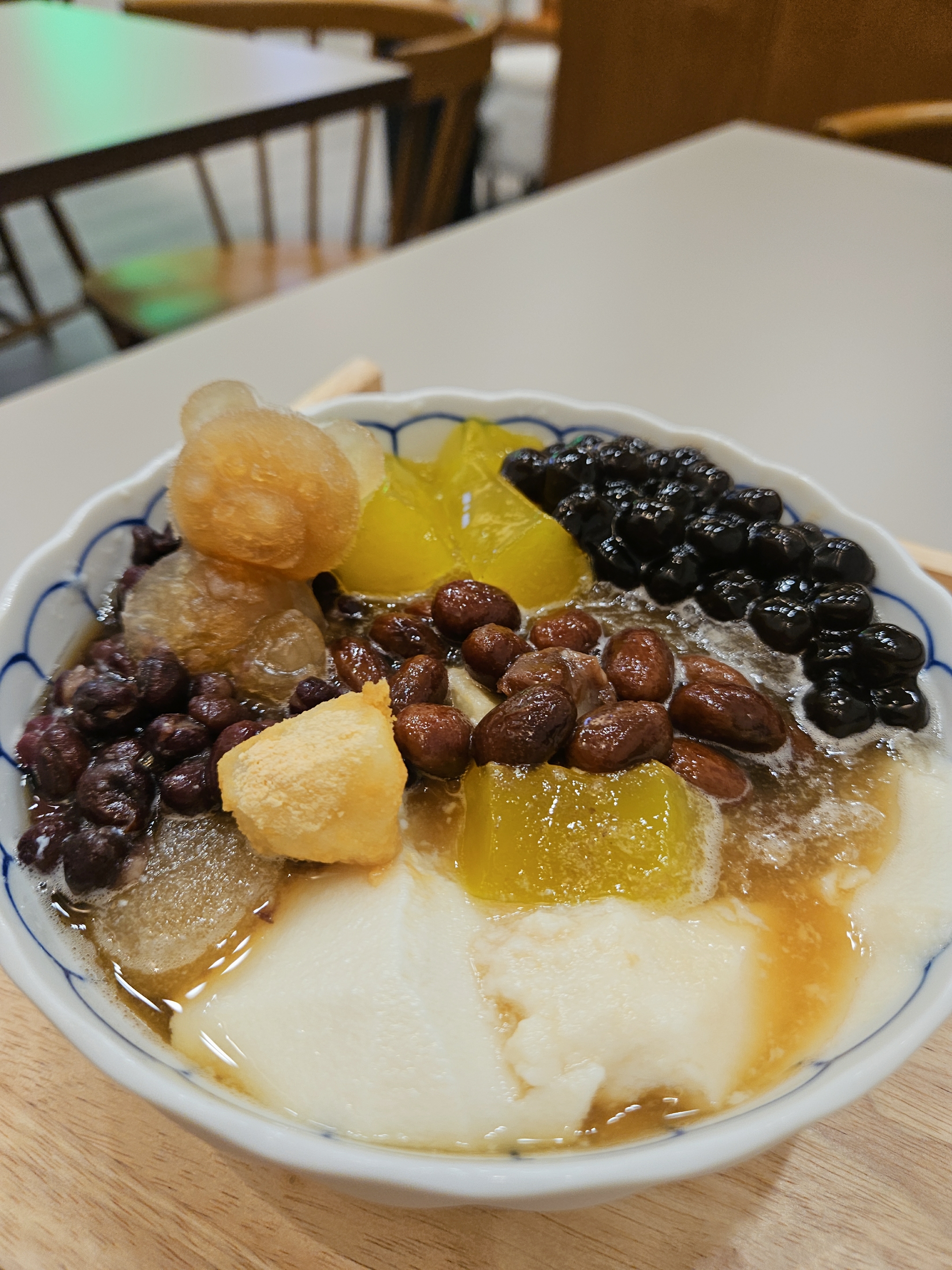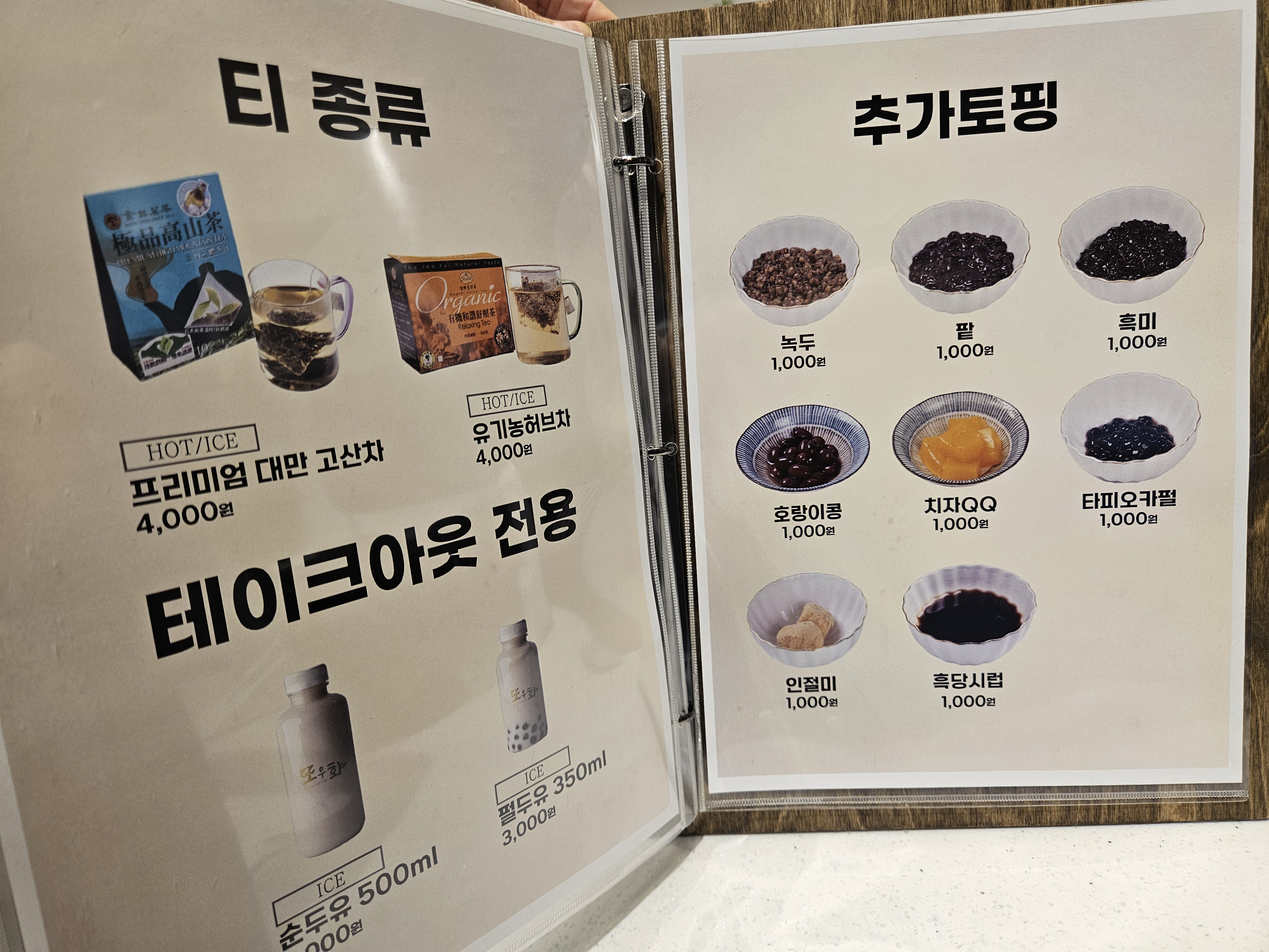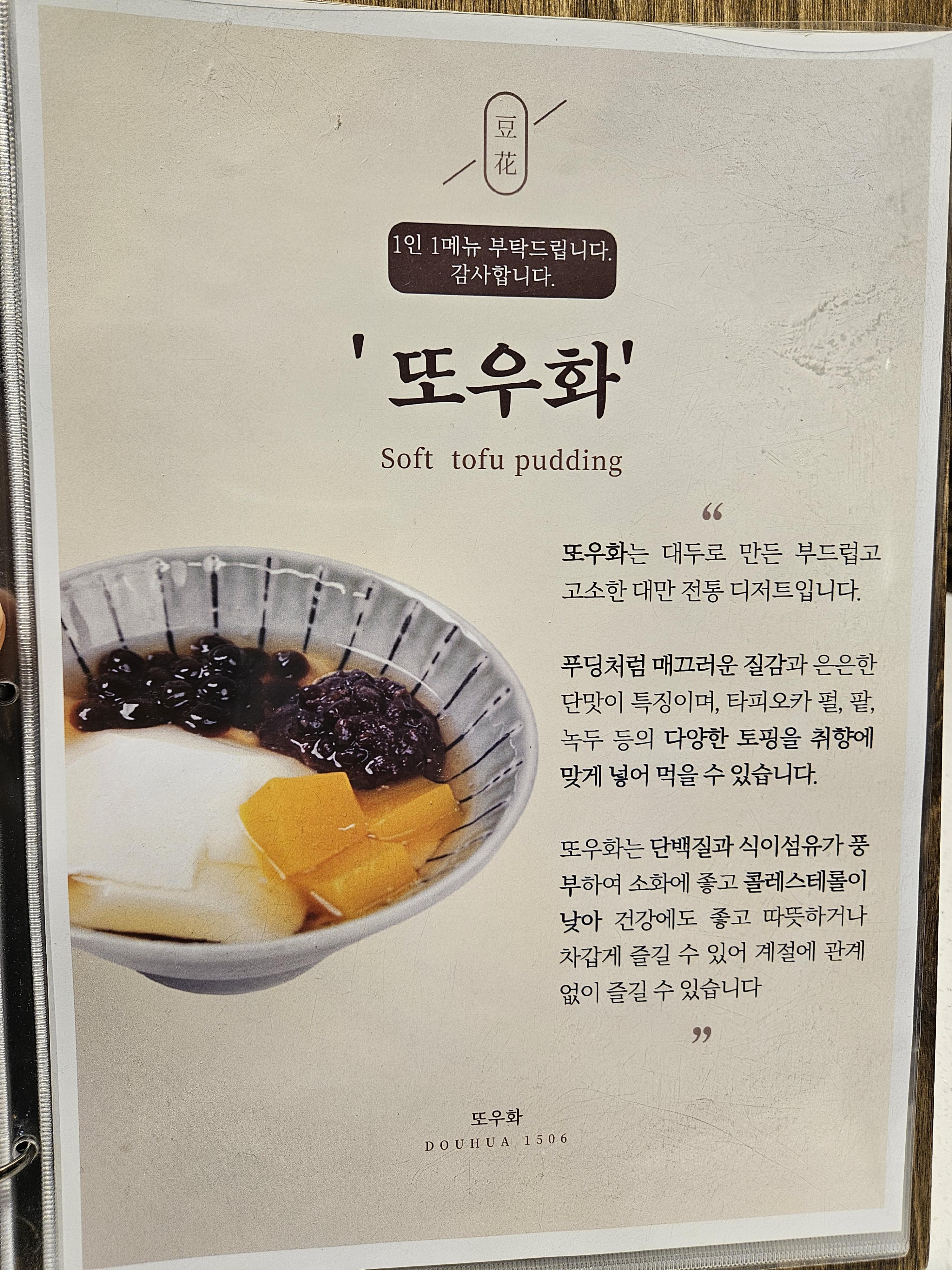 또우화 베이스를 차갑거나 따뜻하게 선택할 수 있고 토핑도 추가 가능하니 기호에 맞게 즐길 수 있는 이색 디저트~