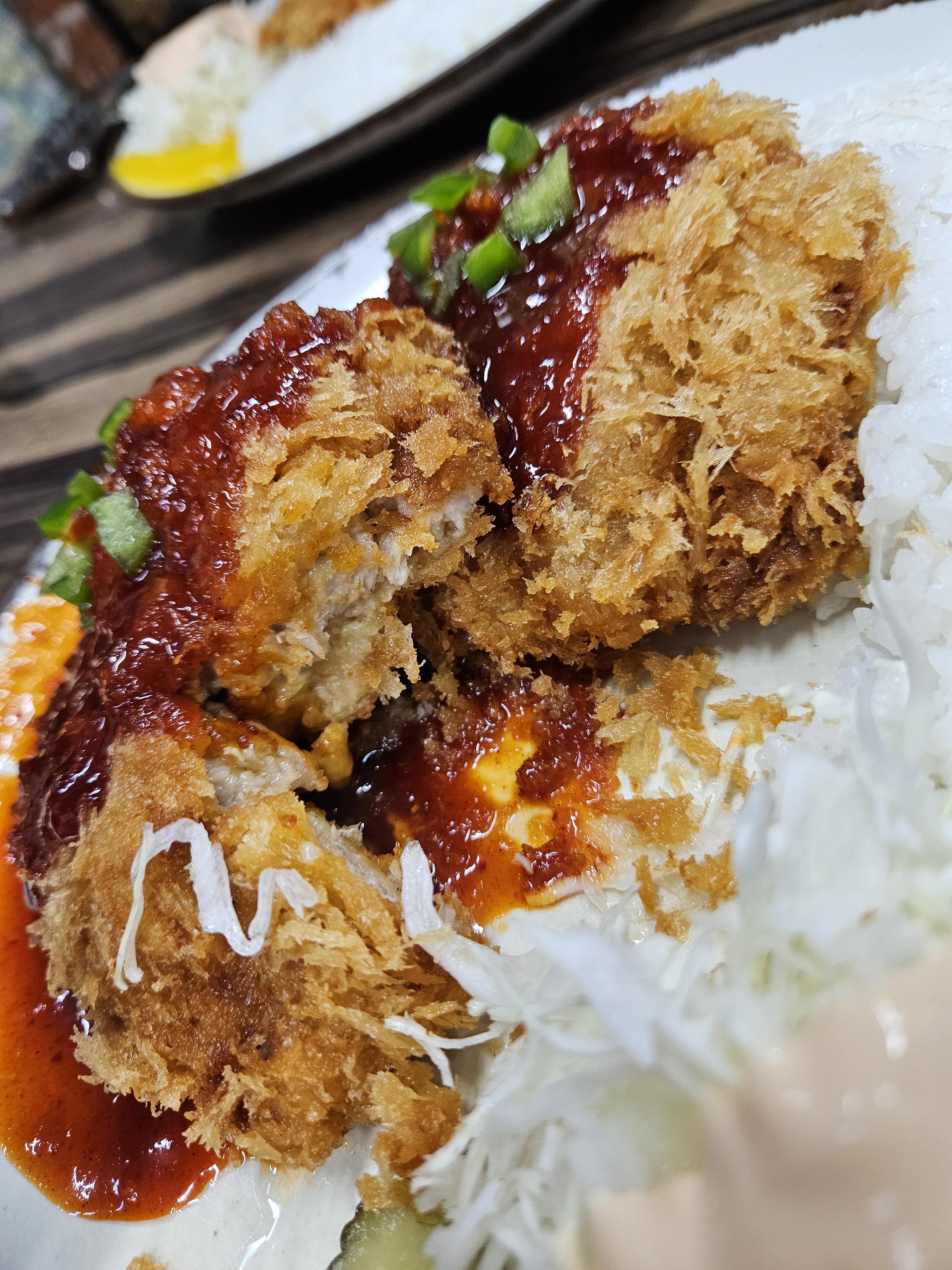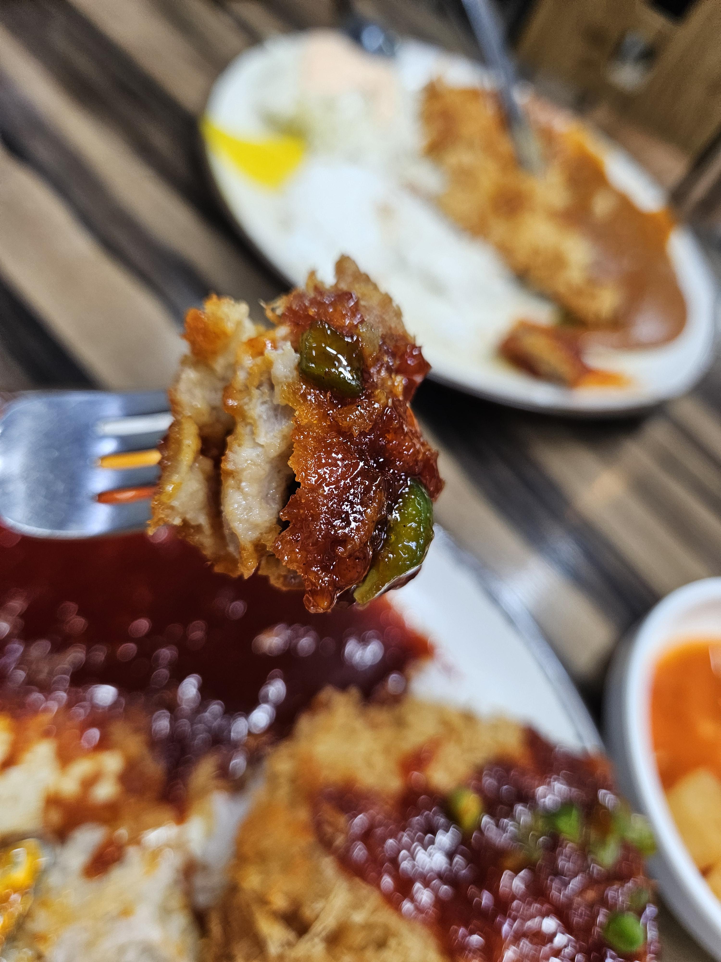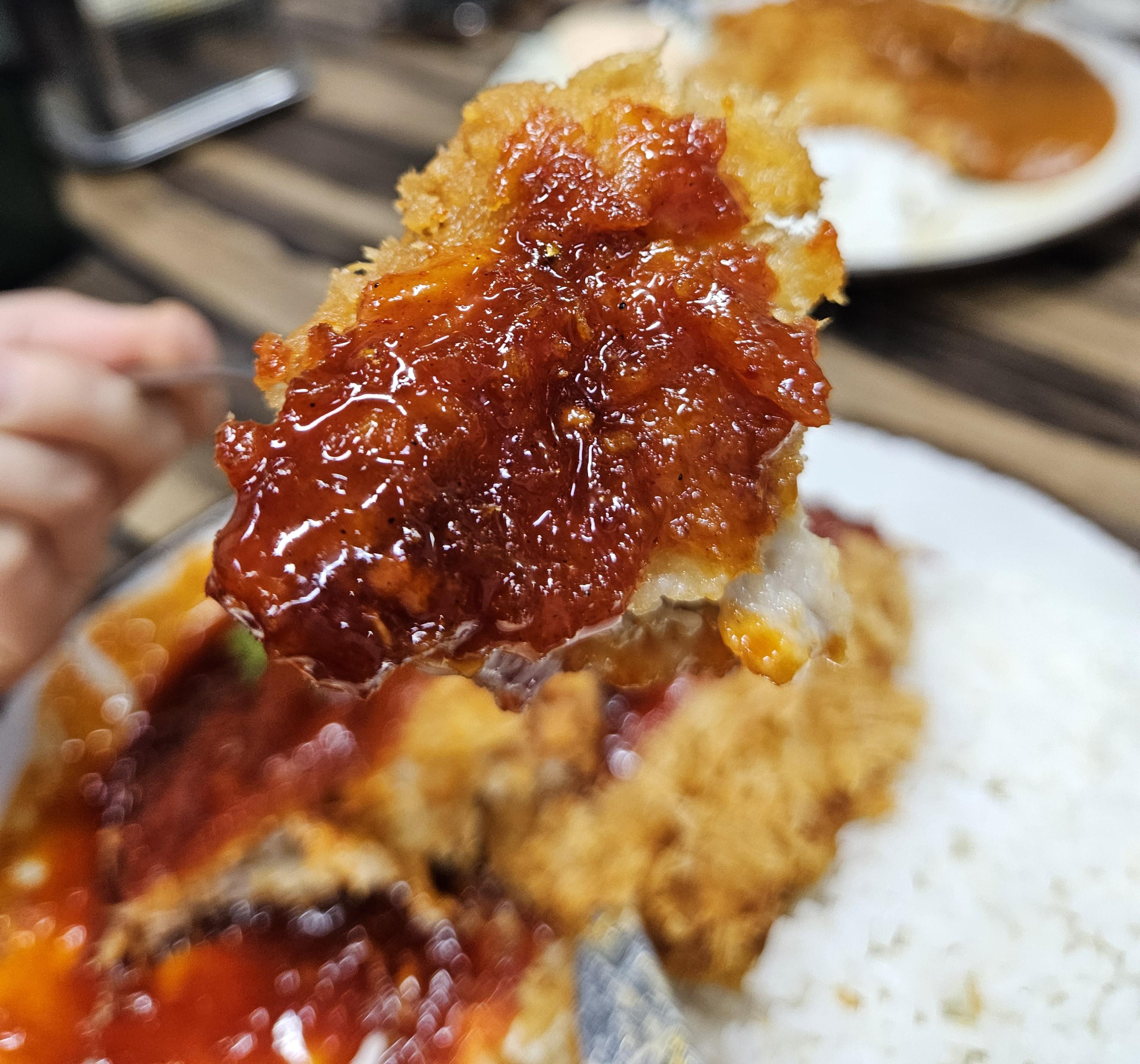 그리고 고기랑 튀김옷이 너무 쉽게 분리돼서 썰었을 때 다 떨어져서 먹기 불편할 수 있지만 튀김옷 많이 안 먹는 나 같은 사람한텐 편하게 다가왔던.