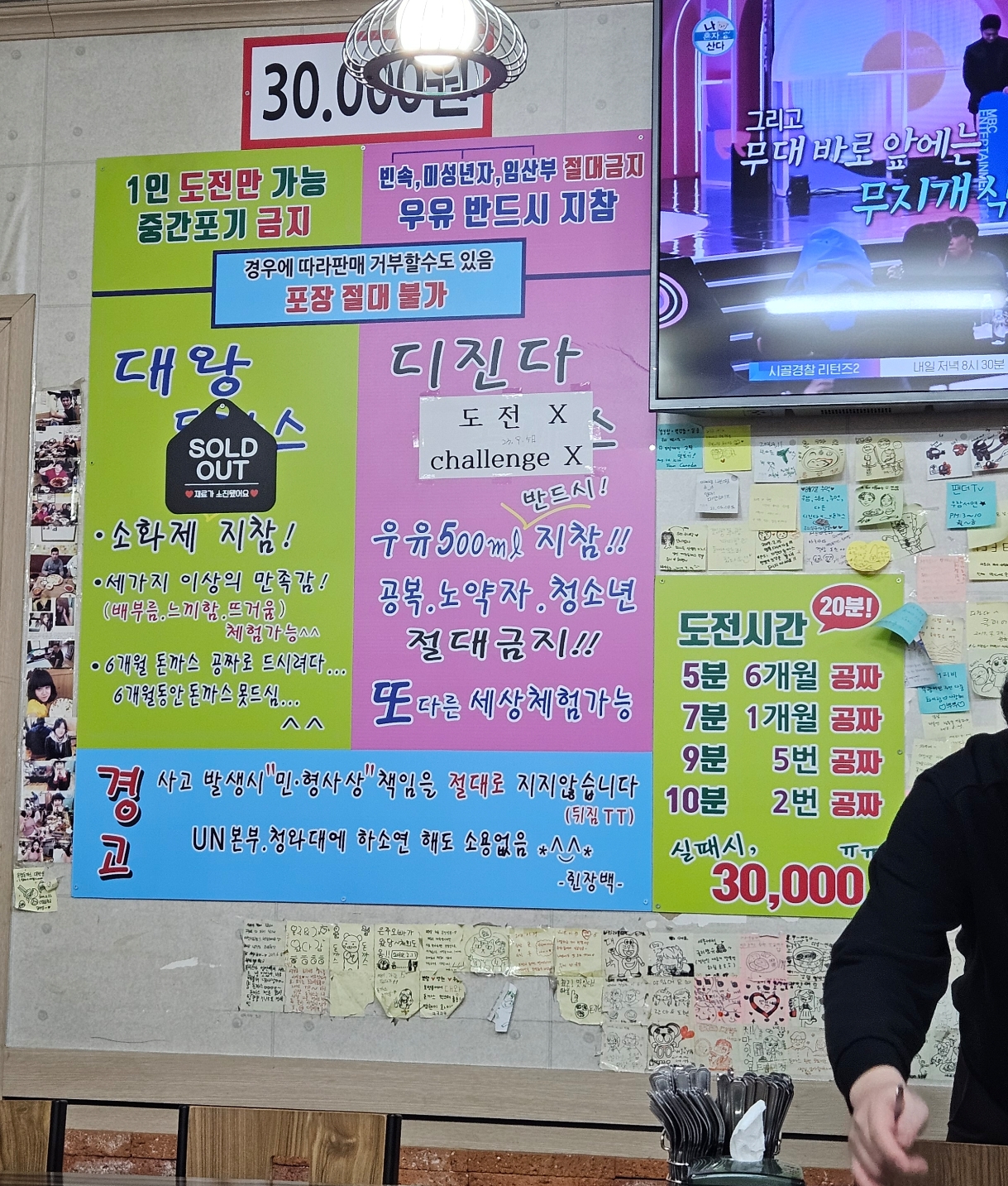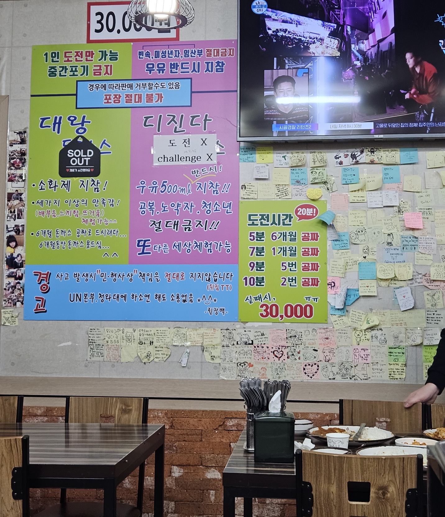 공깃밥도 3그릇 정도 되는 양이 아닐까 싶은데 밥공기에 산처럼 쌓아놔서 밥까지 다 먹어야 도전 성공이라 매장에 성공한 분들 사진이 걸려있는데 모두 대단해 보인다 ㅎㅎㅎ